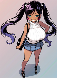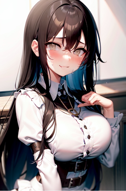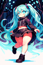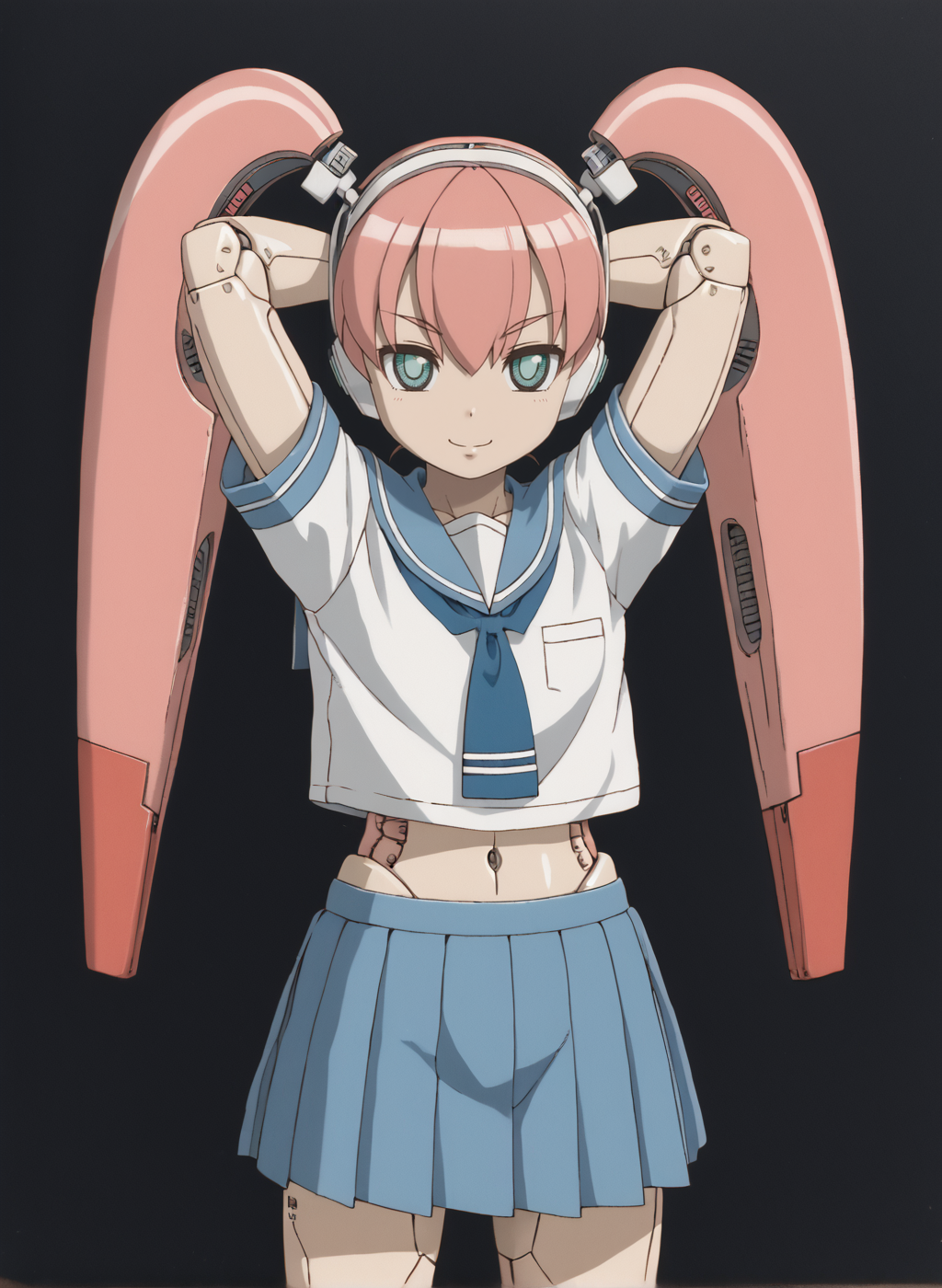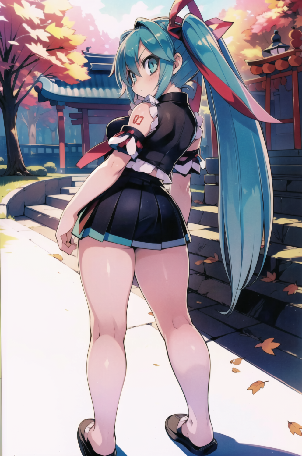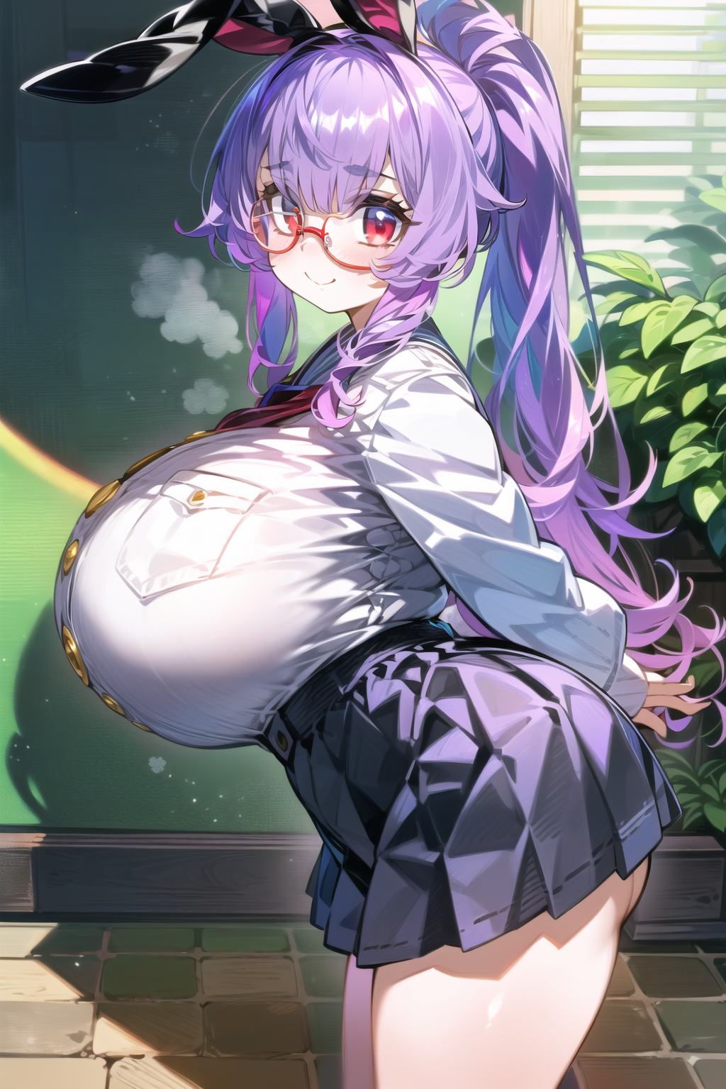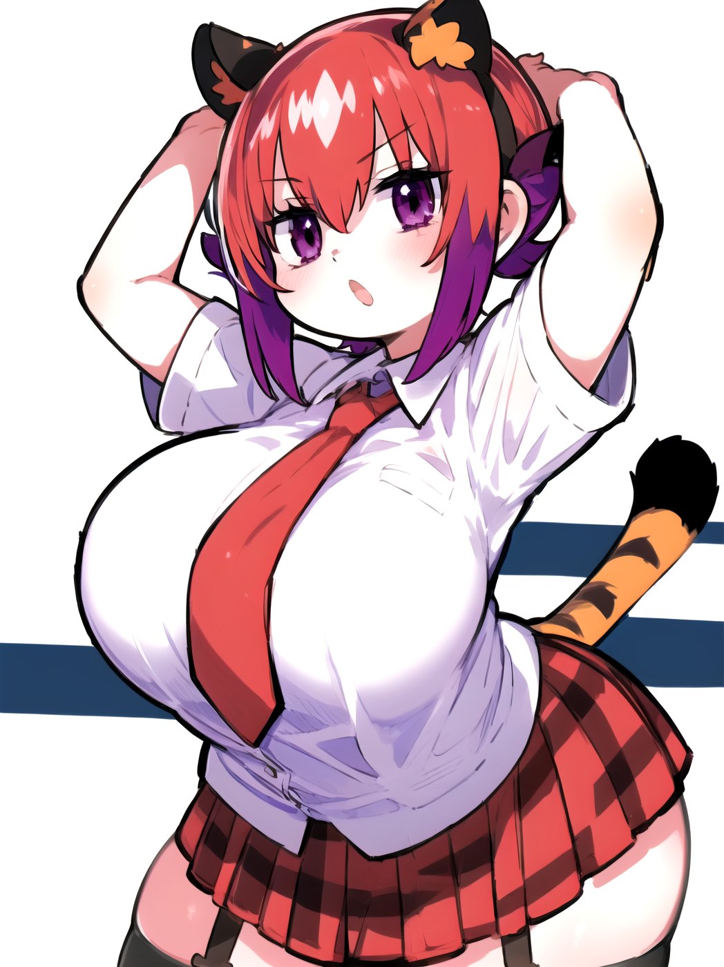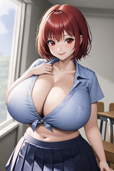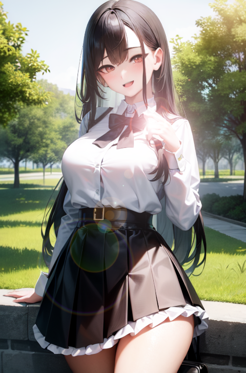 Negative prompt: verybadimagenegative_v1.3, (badhandv4), EasyNegativeV2, extra fingers, missing fingers, naval, exposed nipples, (nsfw), fat belly, midriff, ((purple eyes, blue eyes, red skirt, brown skirt)), headphones, muffin top, nails, hair ribbon, (shirt tucked in:1.3), bridal gauntlets, black wristband, black legwear, black thighhighs, large breasts, gloves, leotard,