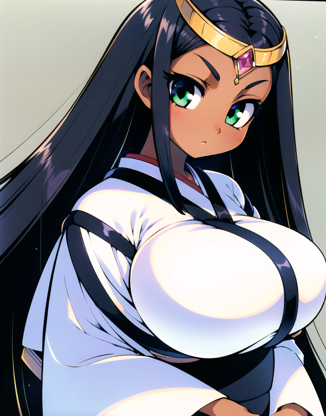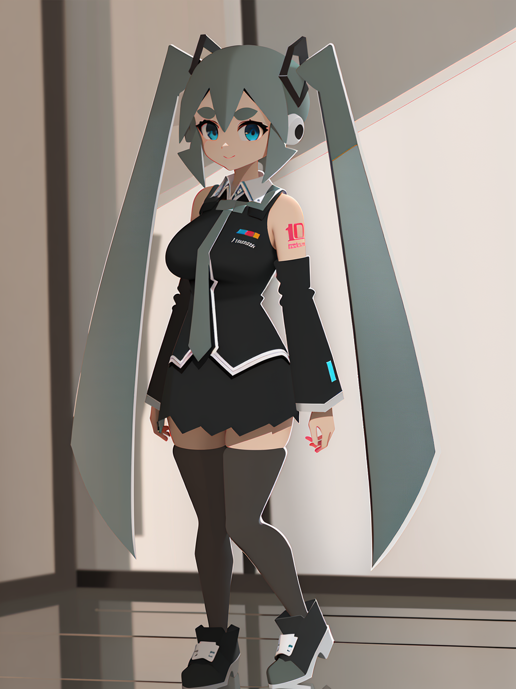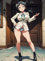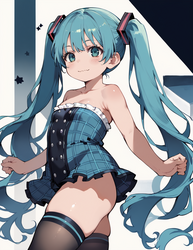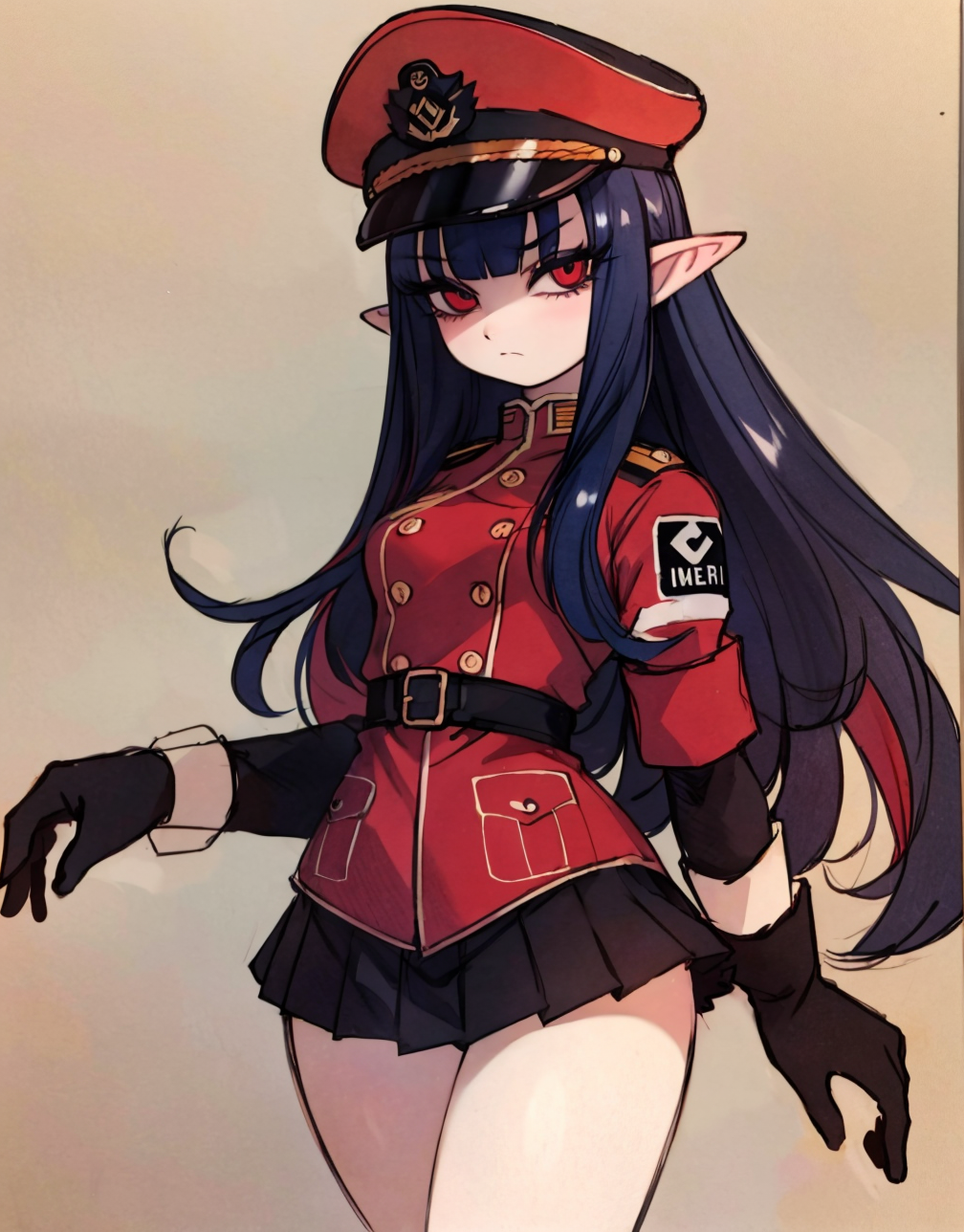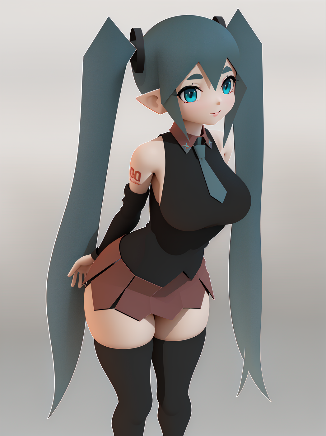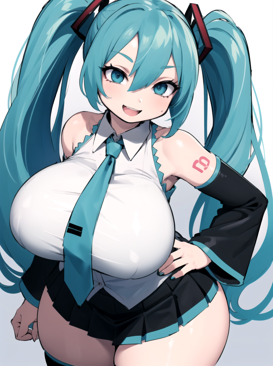 Negative prompt: verybadimagenegative_v1.3, (badhandv4), EasyNegativeV2, extra fingers, missing fingers, naval, exposed nipples, (nsfw), fat belly, midriff, ((purple eyes, blue eyes, red skirt, brown skirt)), headphones, muffin top, nails, hair ribbon, (shirt tucked in:1.3), bridal gauntlets, black wristband, black legwear, black thighhighs, large breasts, gloves, leotard,