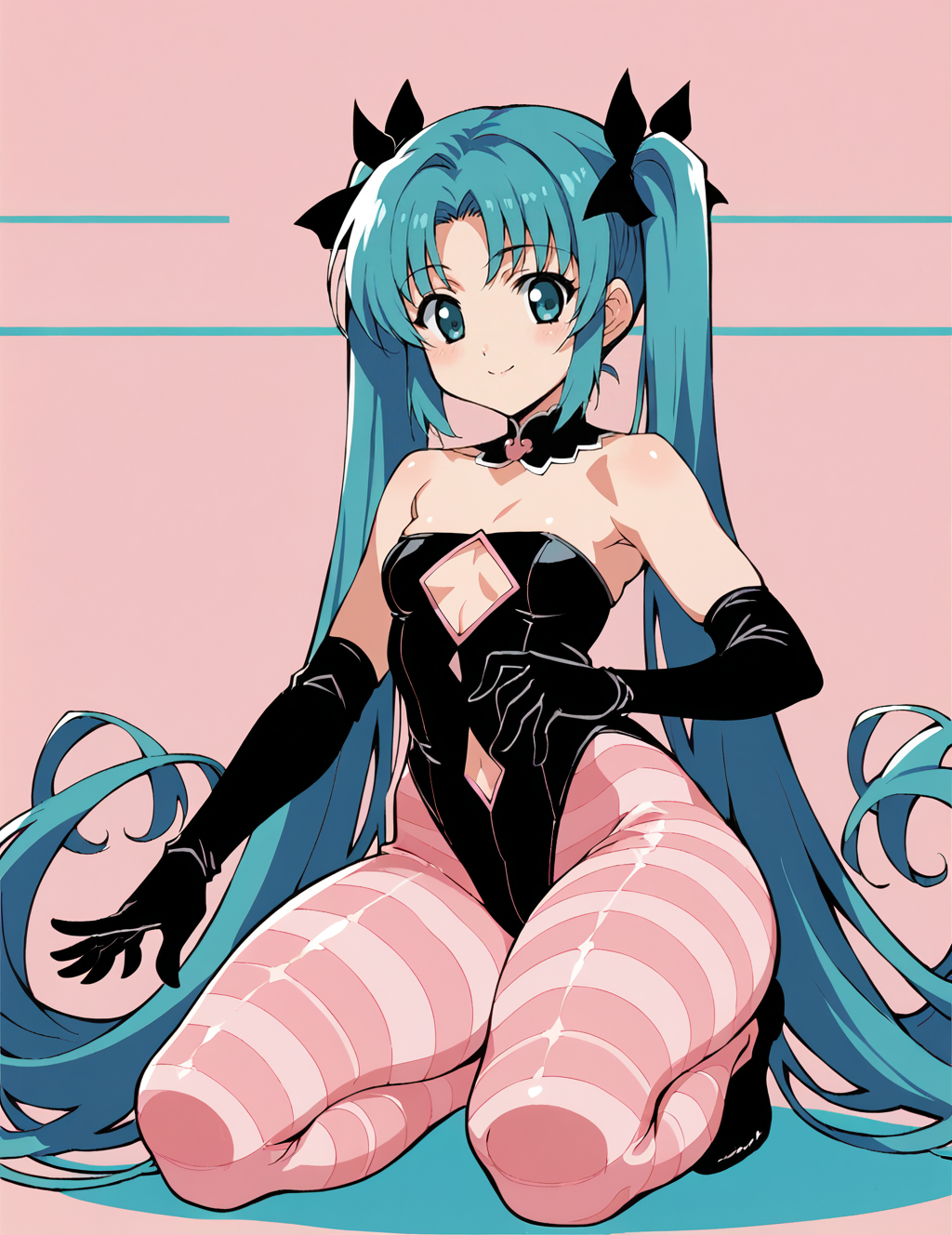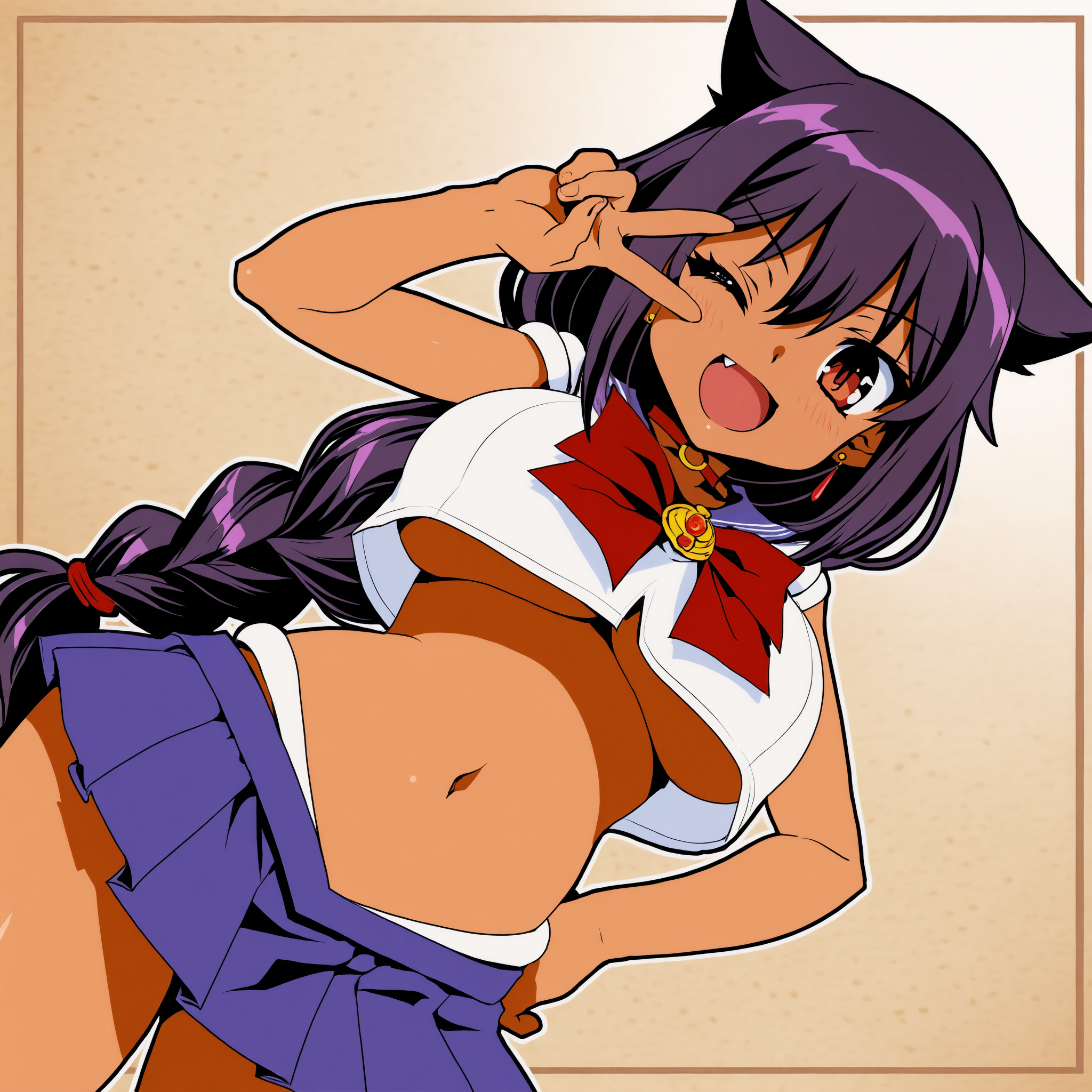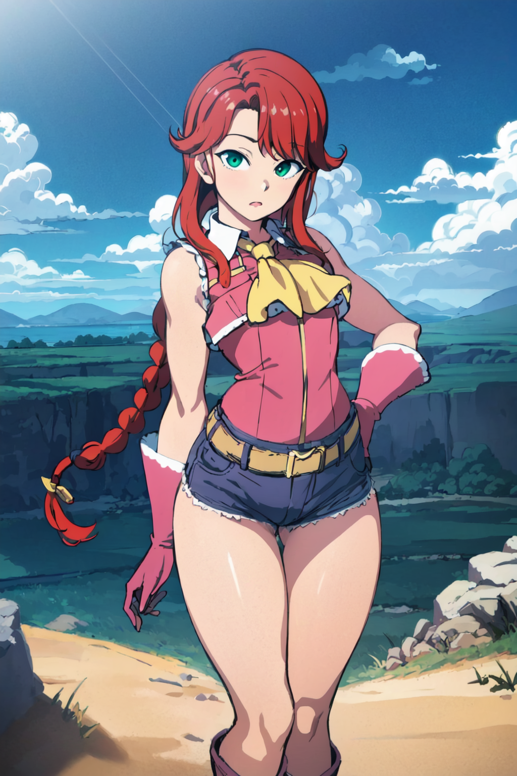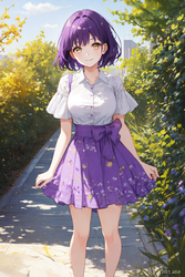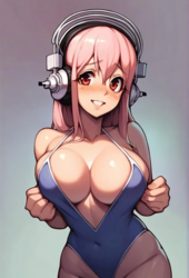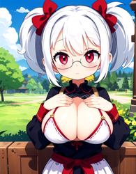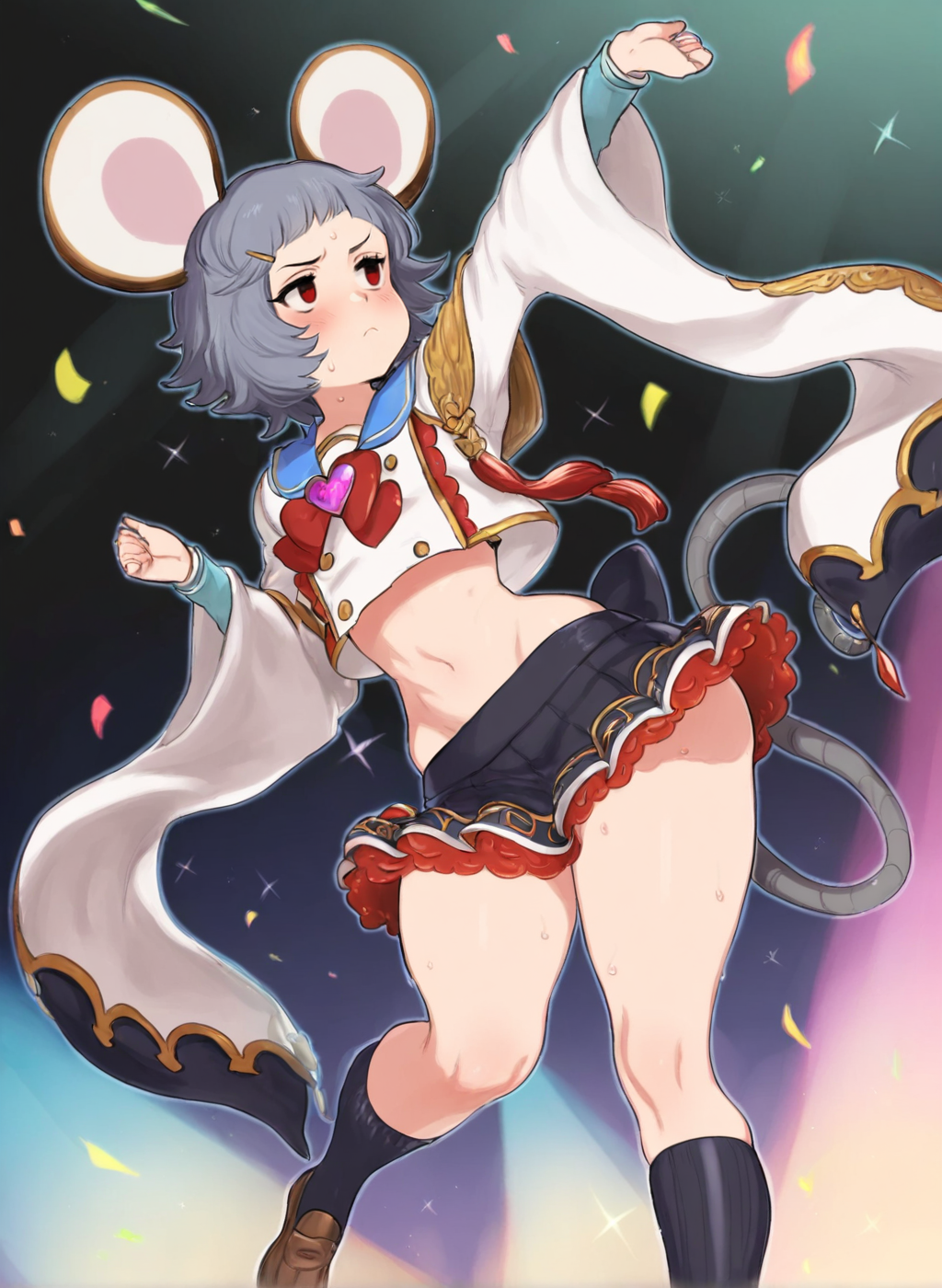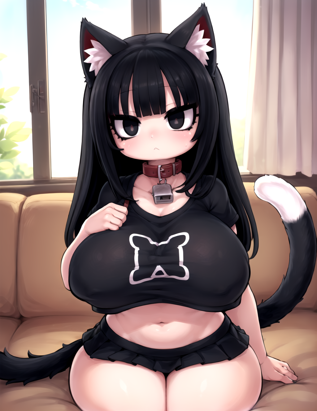 Negative prompt: verybadimagenegative_v1.3, (badhandv4), EasyNegativeV2, extra fingers, missing fingers, naval, exposed nipples, (nsfw), fat belly, midriff, ((purple eyes, blue eyes, red skirt, brown skirt)), headphones, muffin top, nails, hair ribbon, (shirt tucked in:1.3), bridal gauntlets, black wristband, black legwear, black thighhighs, large breasts, gloves, leotard,
