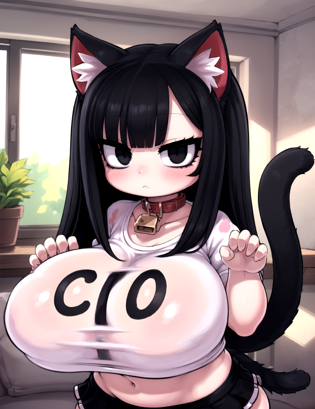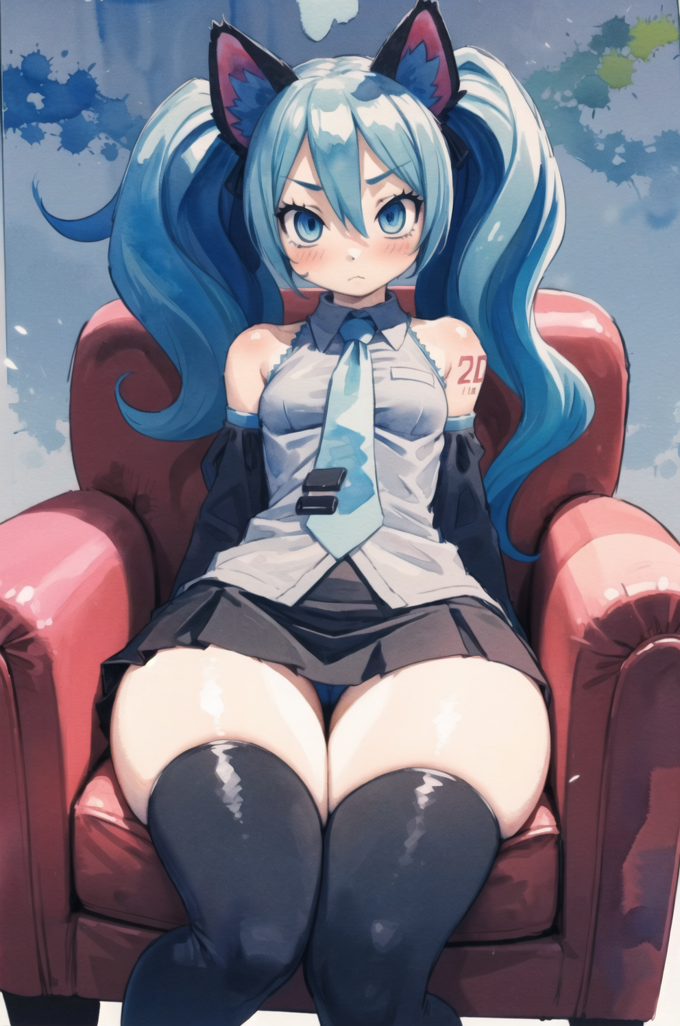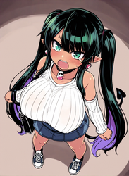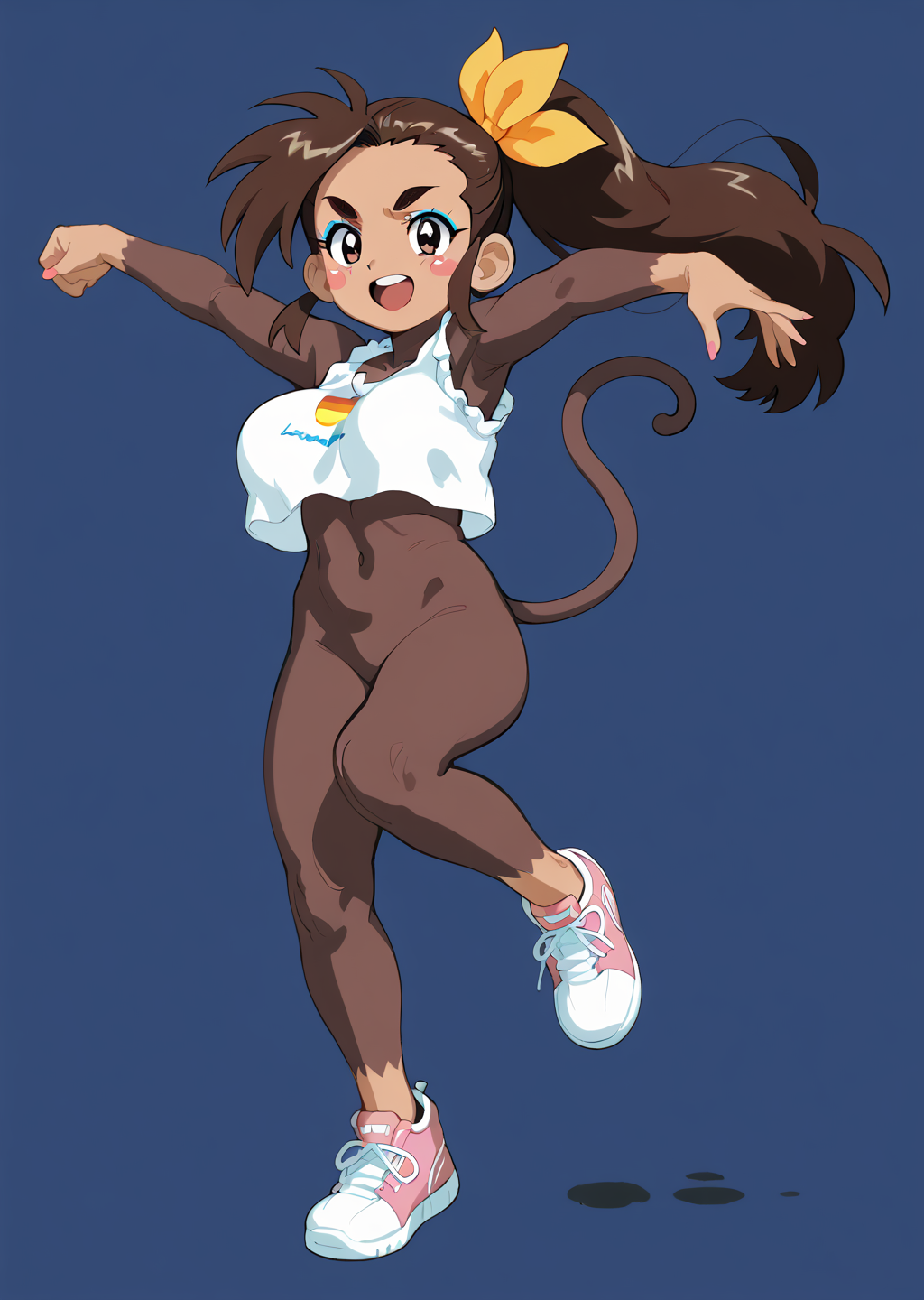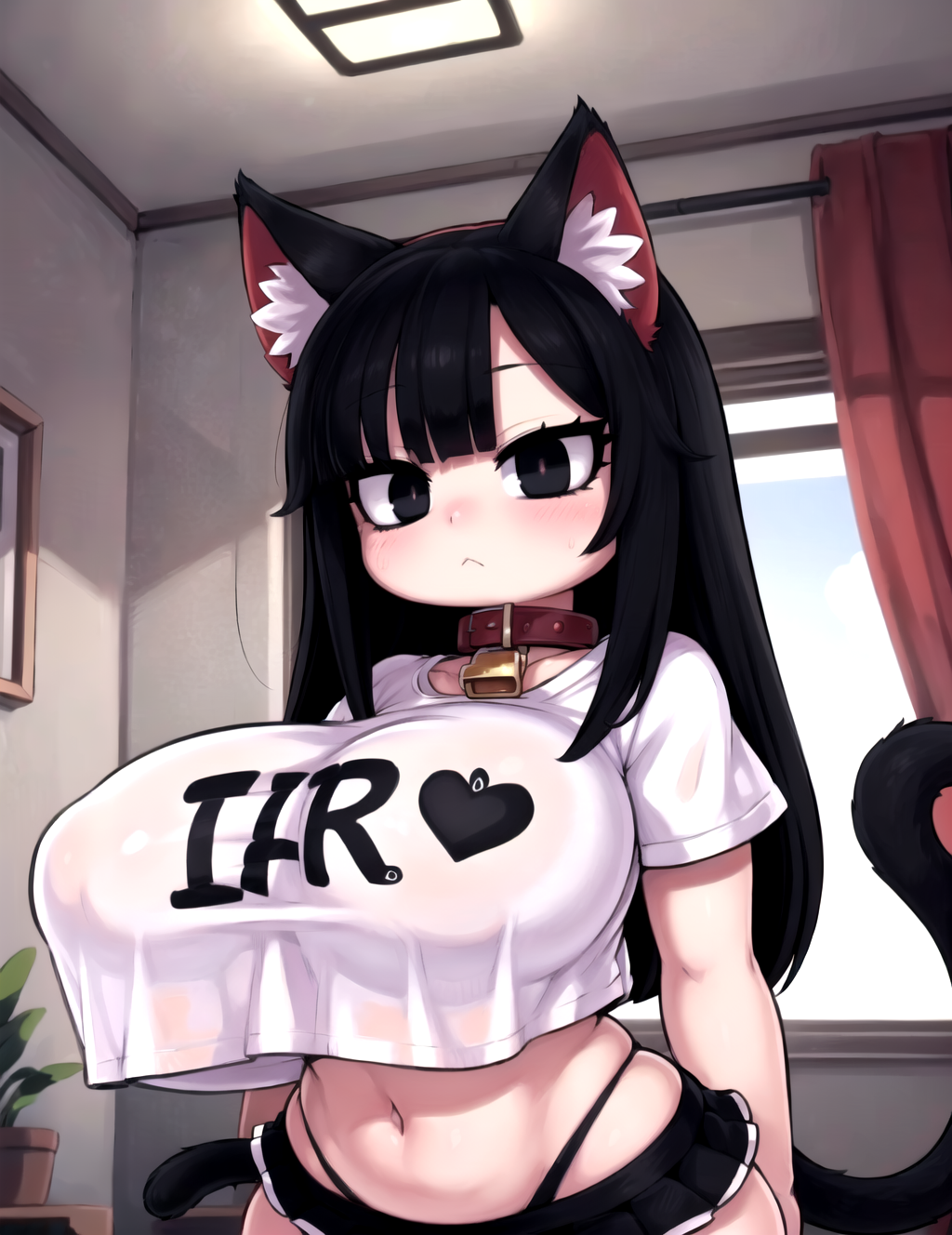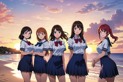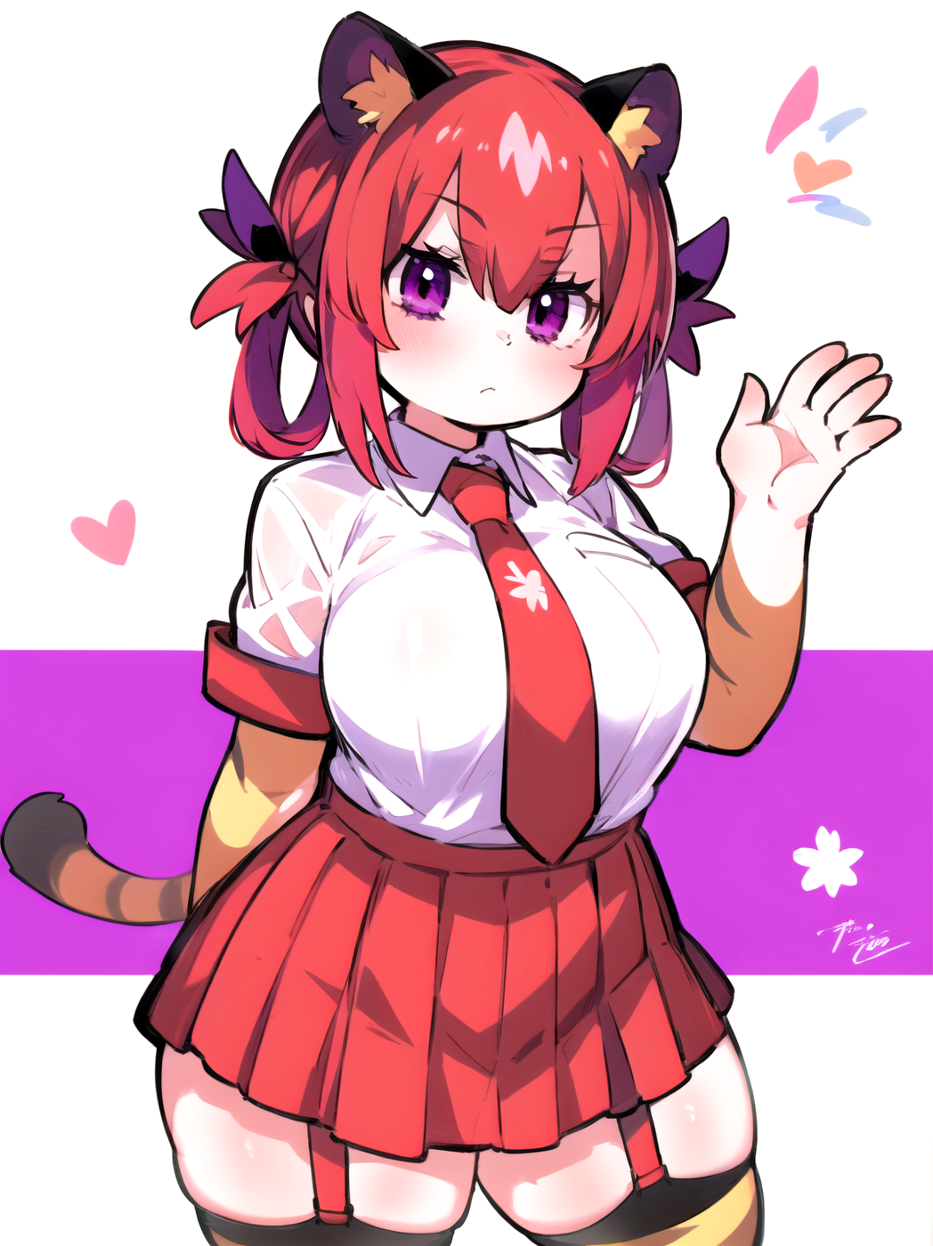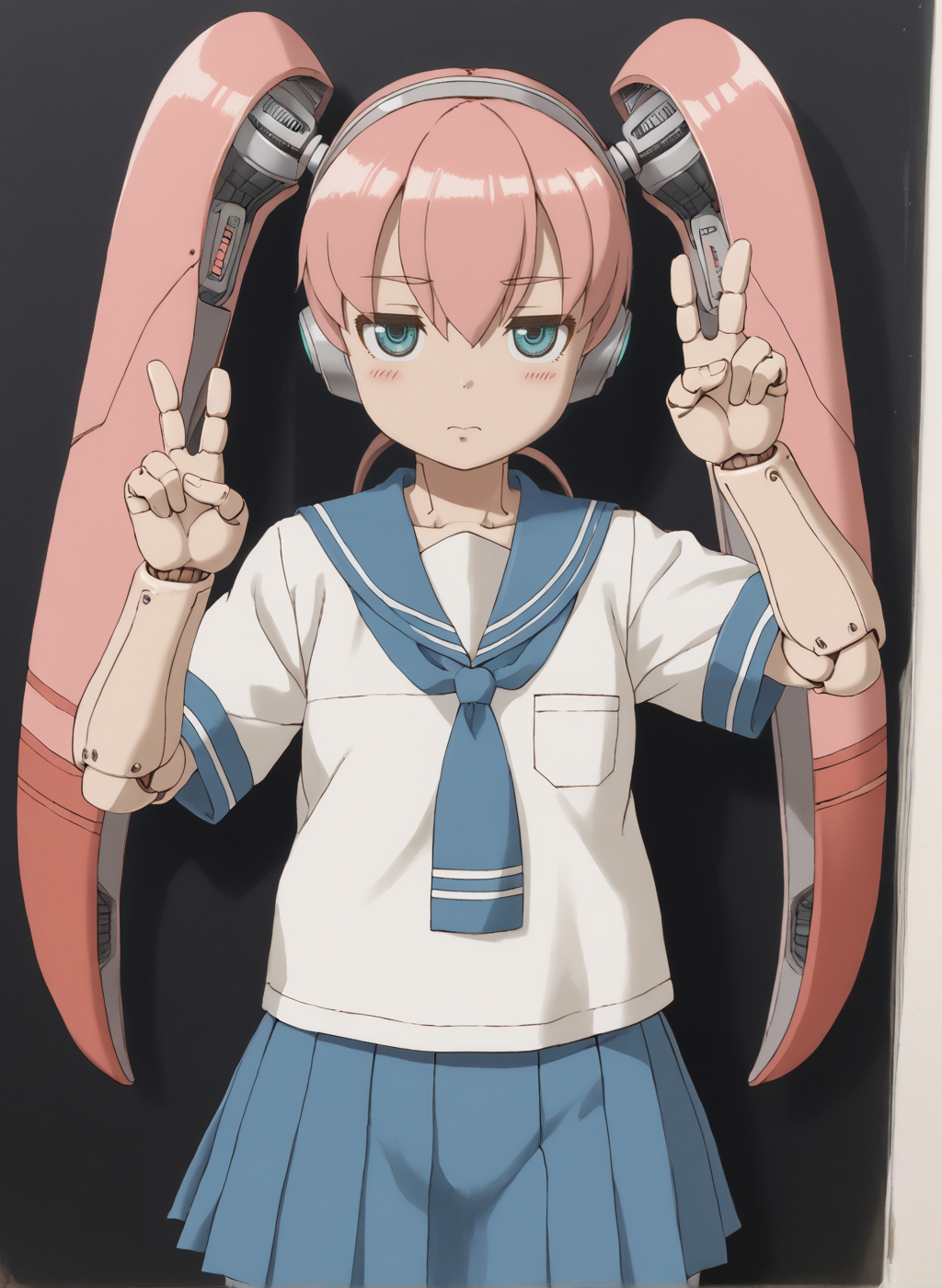 Negative prompt: verybadimagenegative_v1.3, (badhandv4), EasyNegativeV2, extra fingers, missing fingers, naval, exposed nipples, (nsfw), fat belly, midriff, ((purple eyes, blue eyes, red skirt, brown skirt)), headphones, muffin top, nails, hair ribbon, (shirt tucked in:1.3), bridal gauntlets, black wristband, black legwear, black thighhighs, large breasts, gloves, leotard,