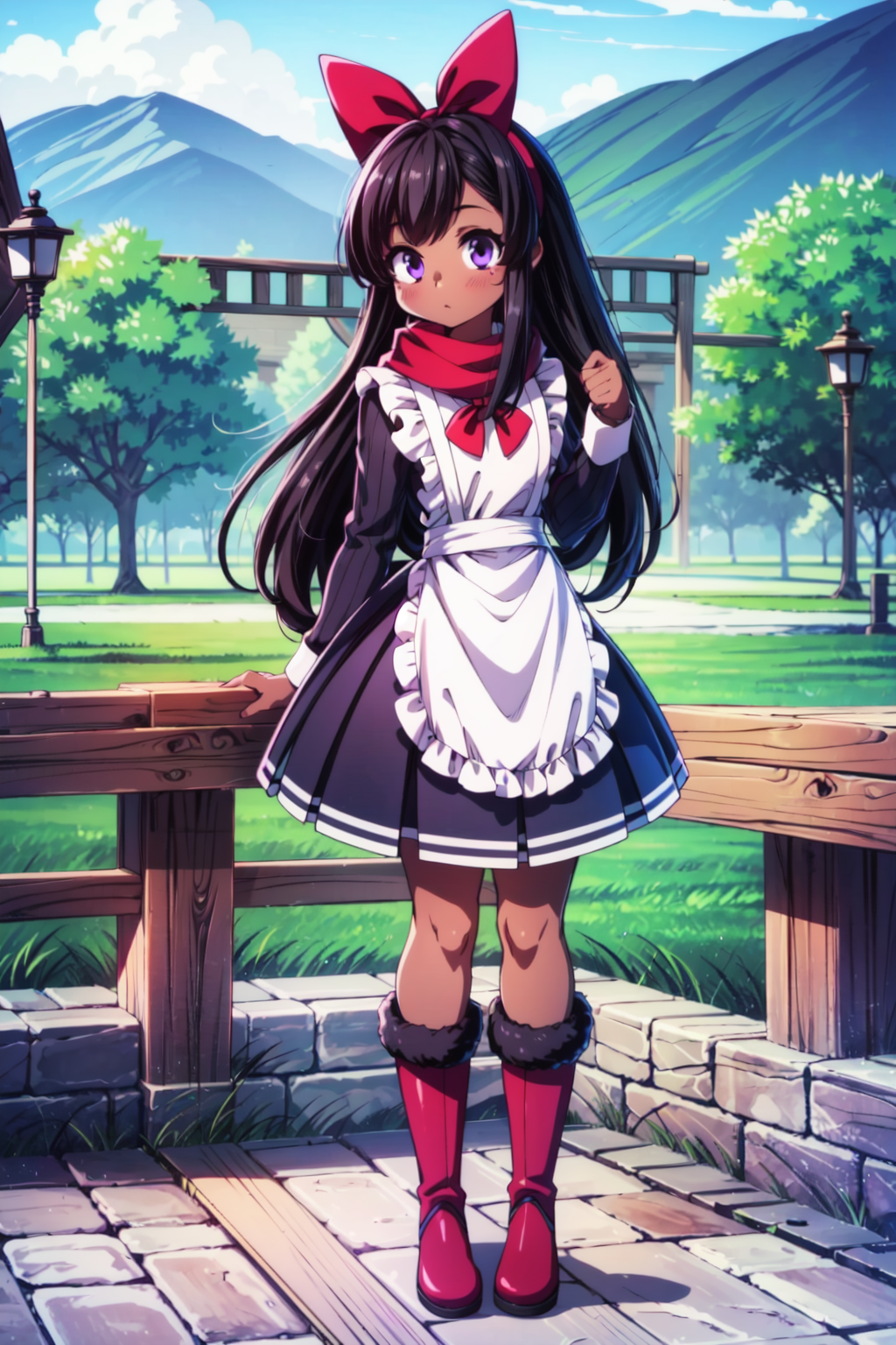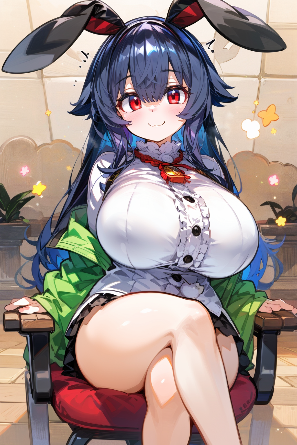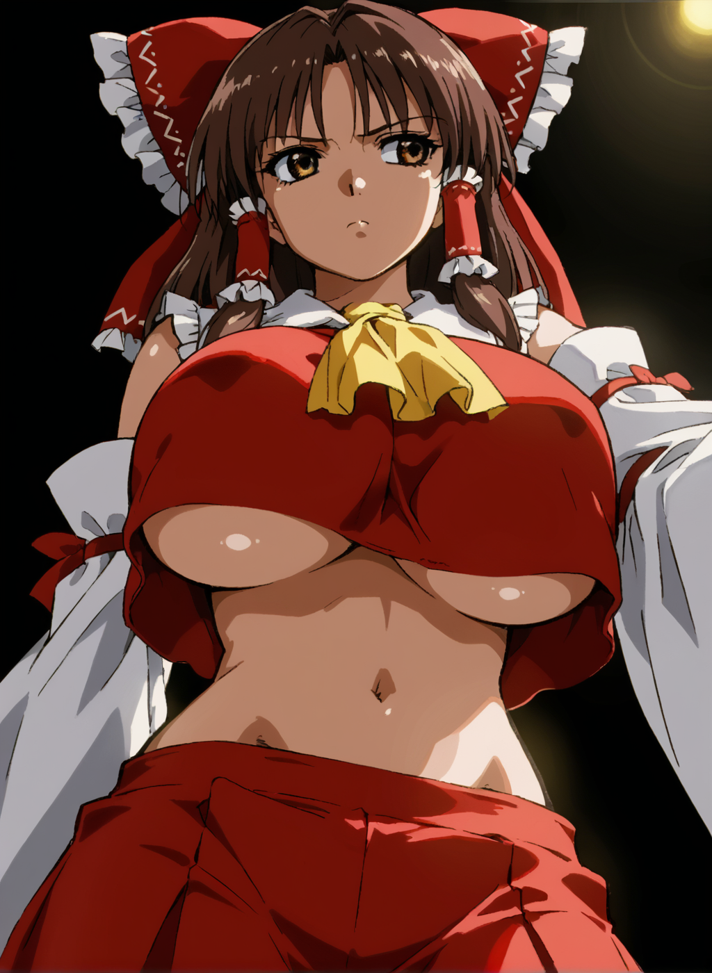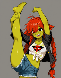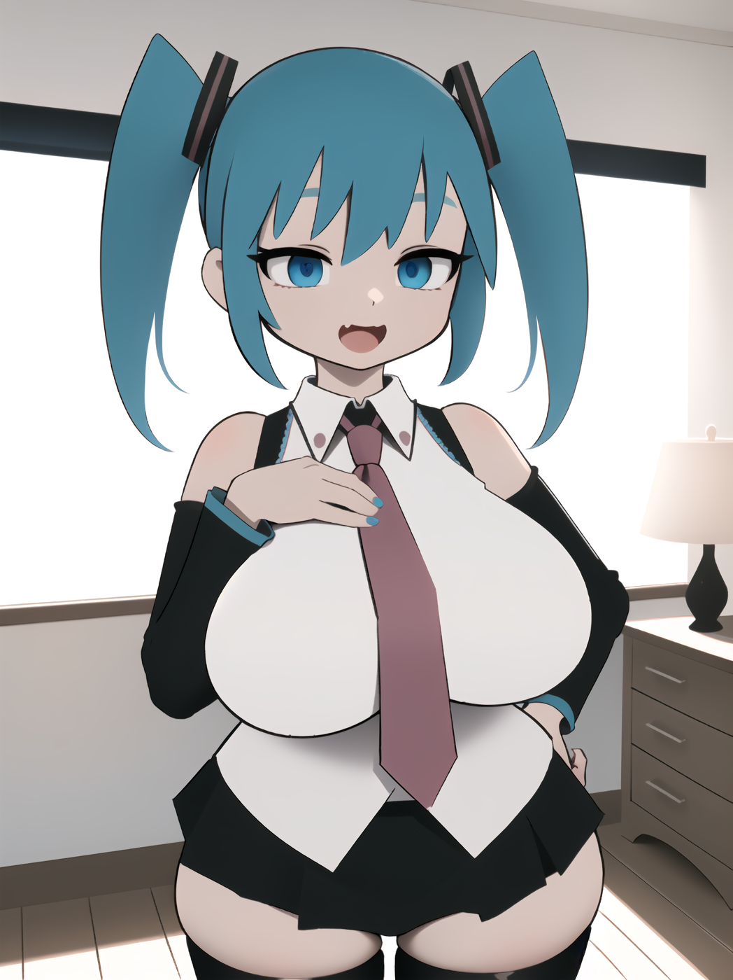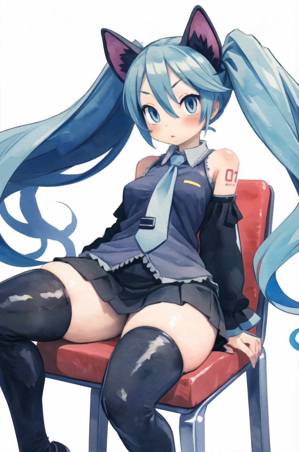 Negative prompt: verybadimagenegative_v1.3, (badhandv4), EasyNegativeV2, extra fingers, missing fingers, naval, exposed nipples, (nsfw), fat belly, midriff, ((purple eyes, blue eyes, red skirt, brown skirt)), headphones, muffin top, nails, hair ribbon, (shirt tucked in:1.3), bridal gauntlets, black wristband, black legwear, black thighhighs, large breasts, gloves, leotard,