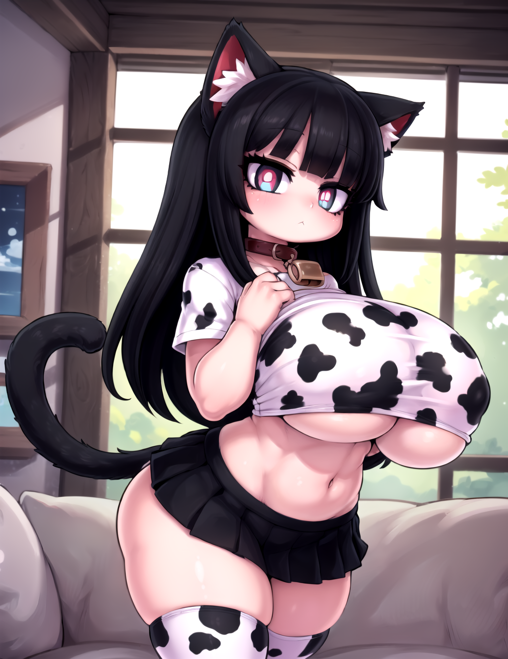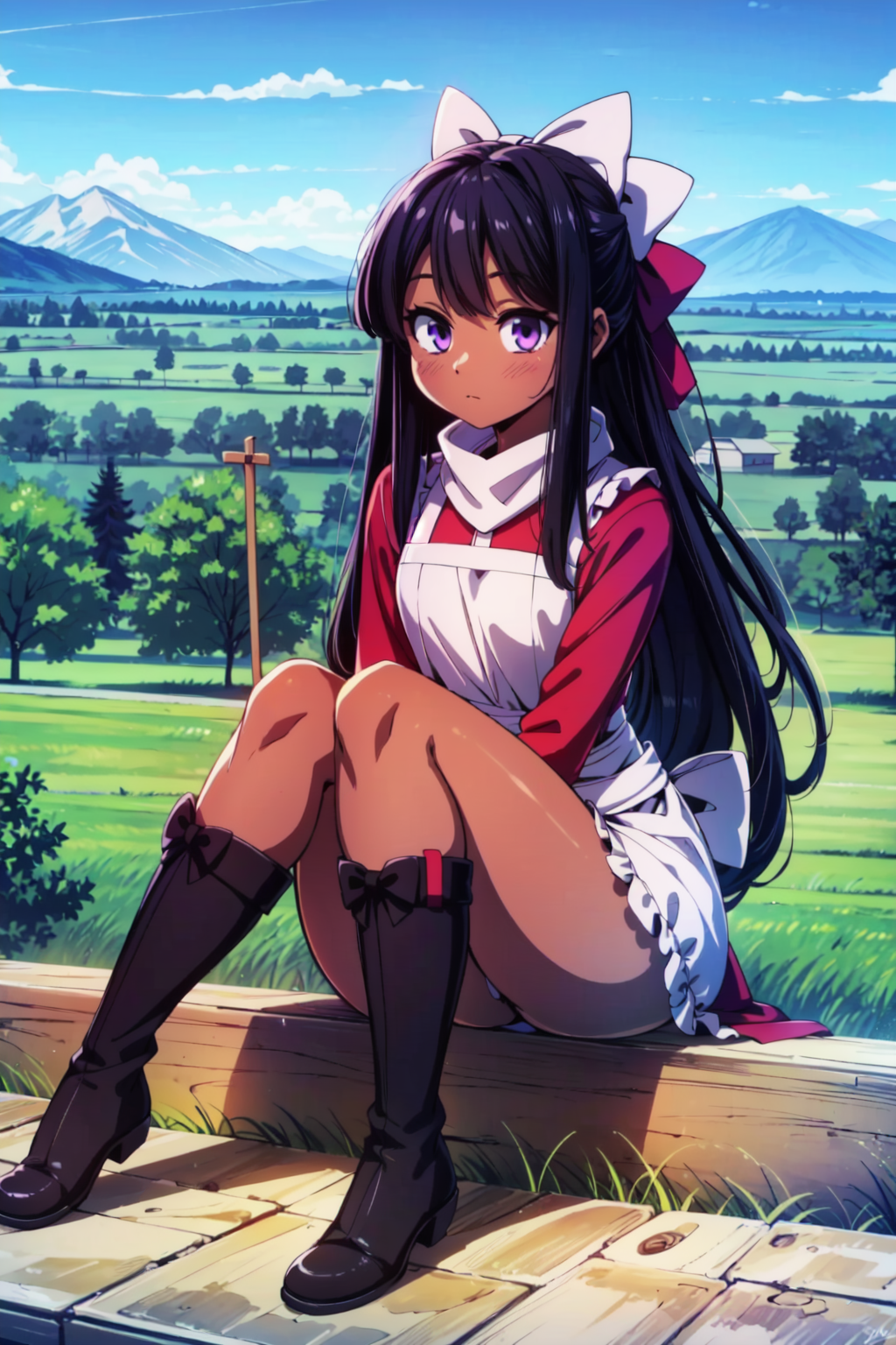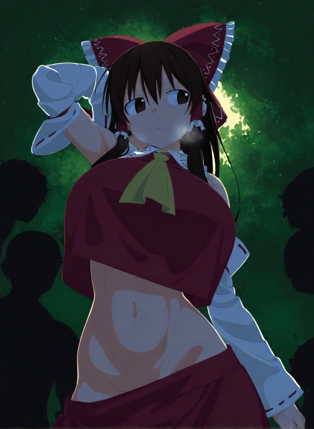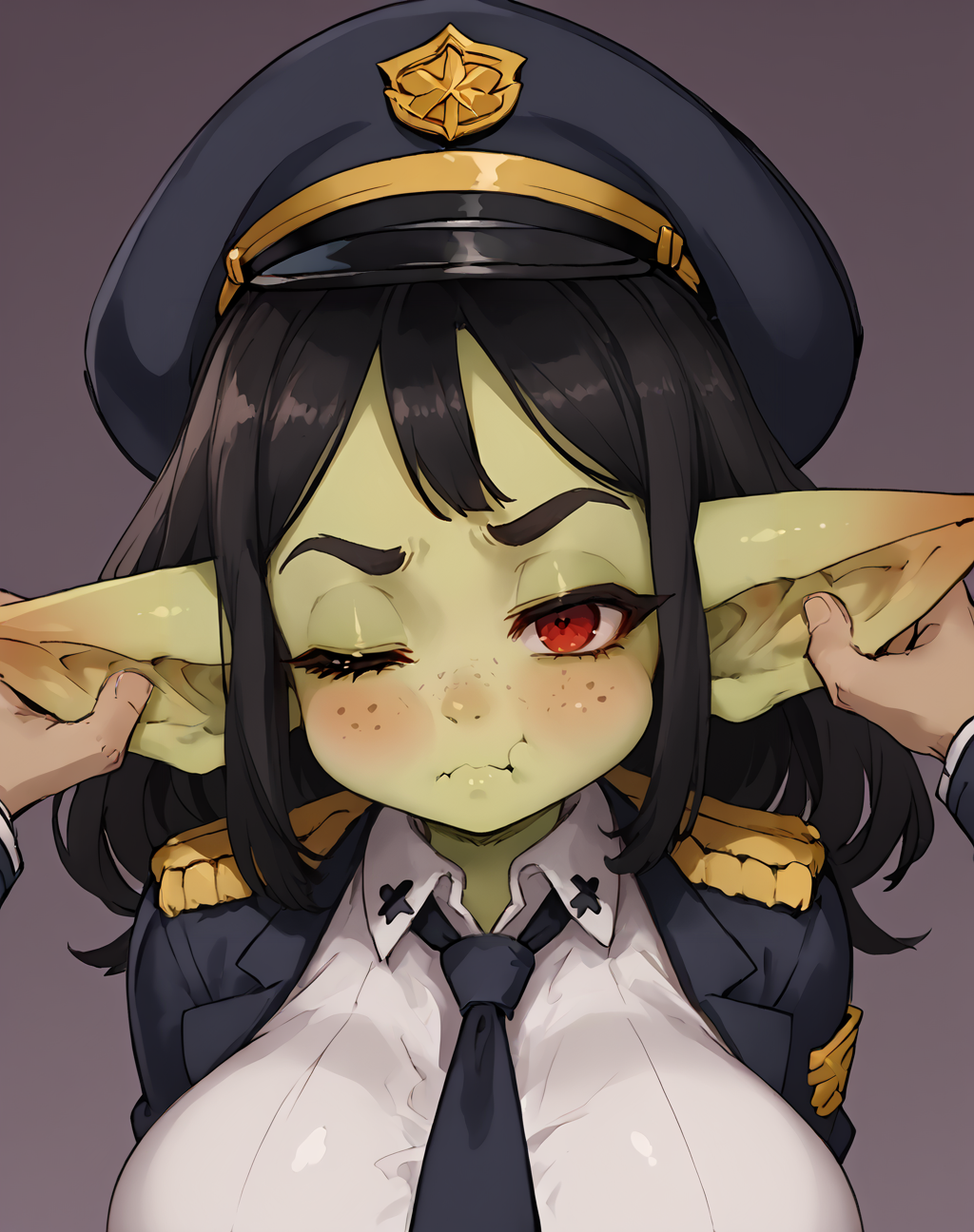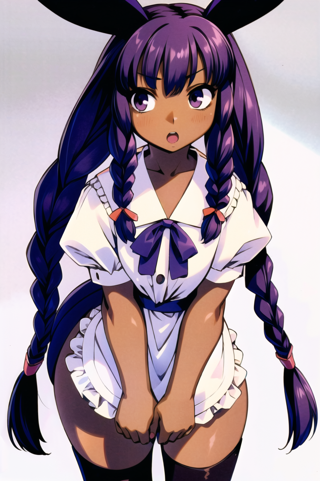 Negative prompt: verybadimagenegative_v1.3, (badhandv4), EasyNegativeV2, extra fingers, missing fingers, naval, exposed nipples, (nsfw), fat belly, midriff, ((purple eyes, blue eyes, red skirt, brown skirt)), headphones, muffin top, nails, hair ribbon, (shirt tucked in:1.3), bridal gauntlets, black wristband, black legwear, black thighhighs, large breasts, gloves, leotard,
