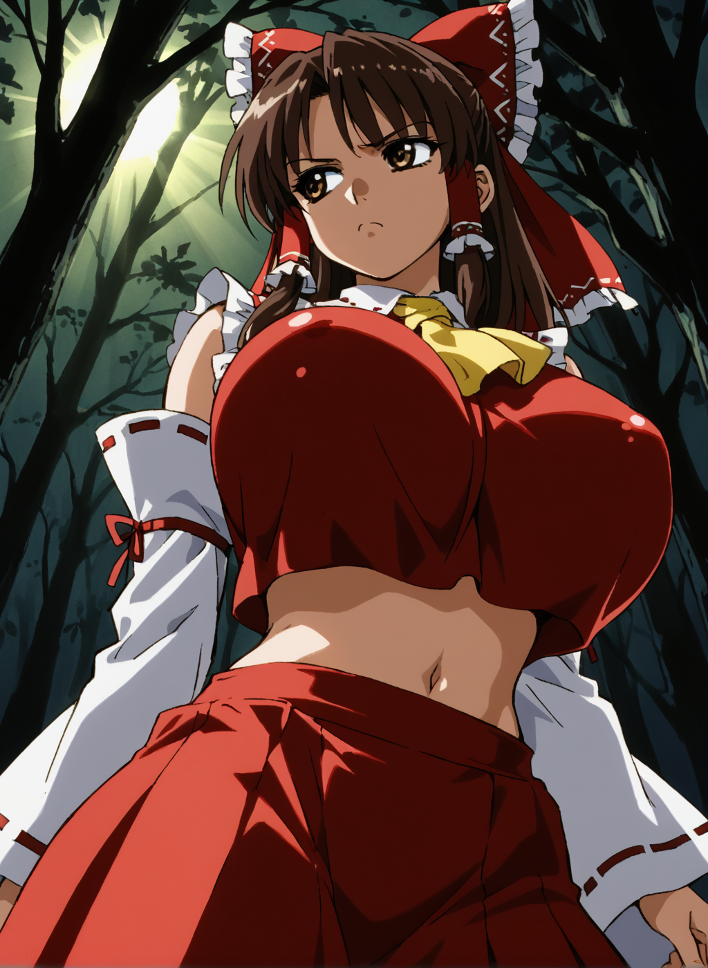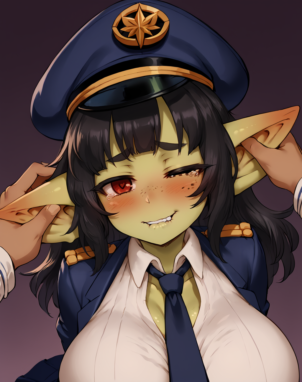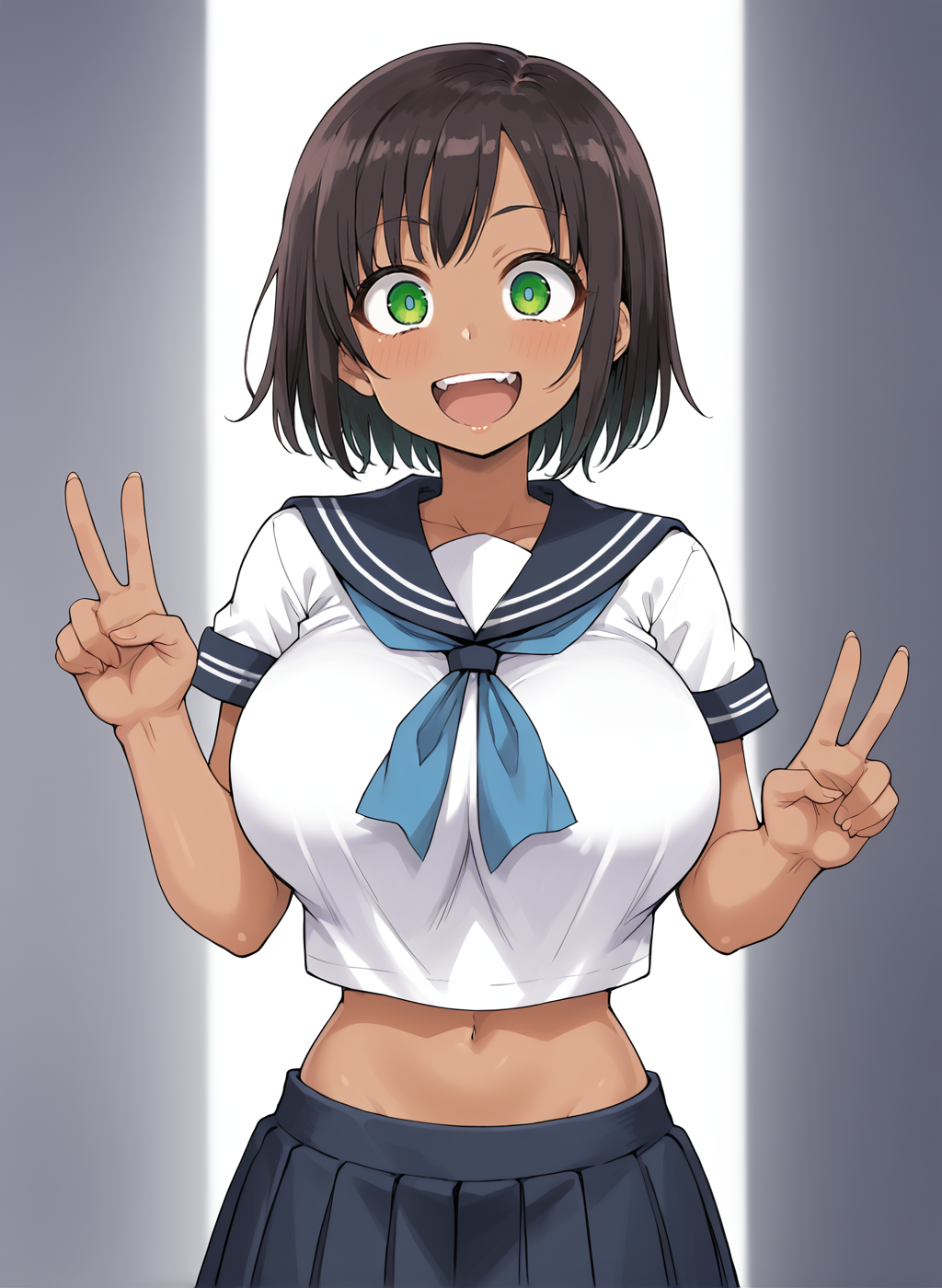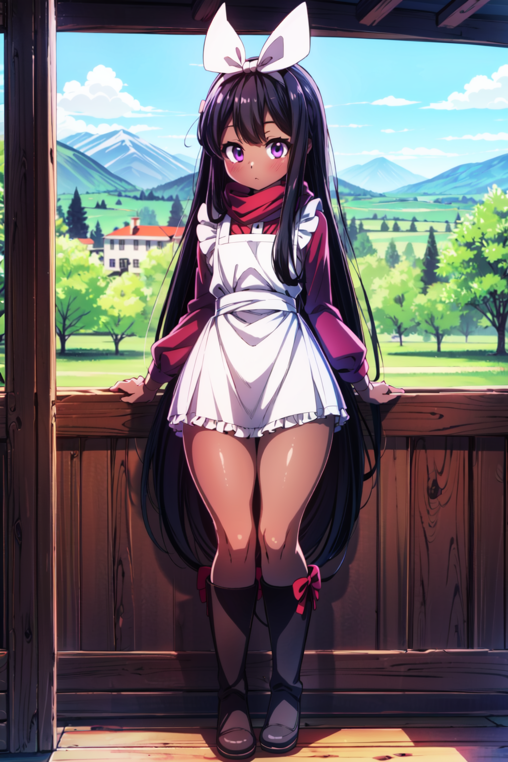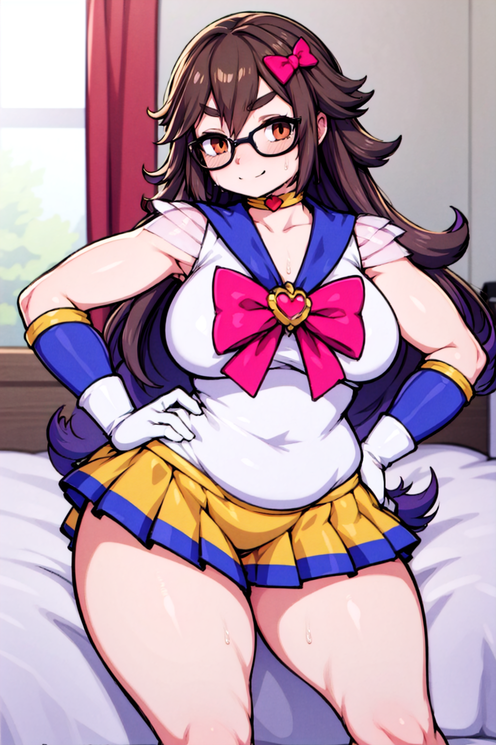 Negative prompt: verybadimagenegative_v1.3, (badhandv4), EasyNegativeV2, extra fingers, missing fingers, naval, exposed nipples, (nsfw), fat belly, midriff, ((purple eyes, blue eyes, red skirt, brown skirt)), headphones, muffin top, nails, hair ribbon, (shirt tucked in:1.3), bridal gauntlets, black wristband, black legwear, black thighhighs, large breasts, gloves, leotard,
