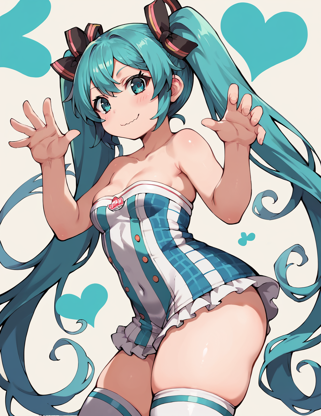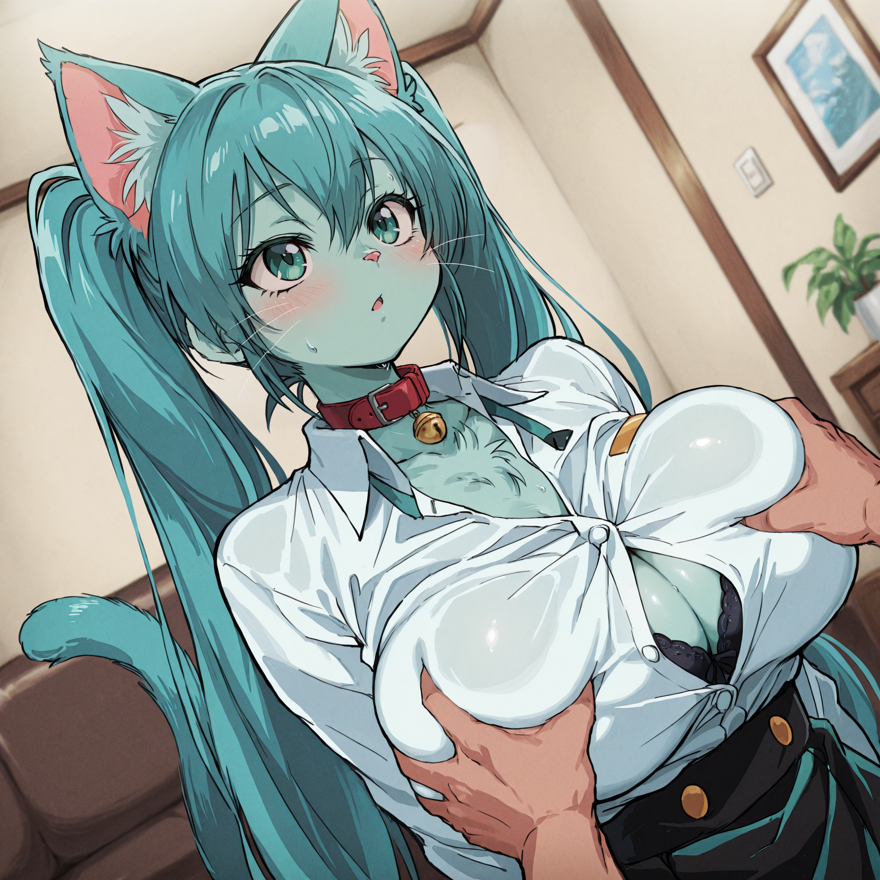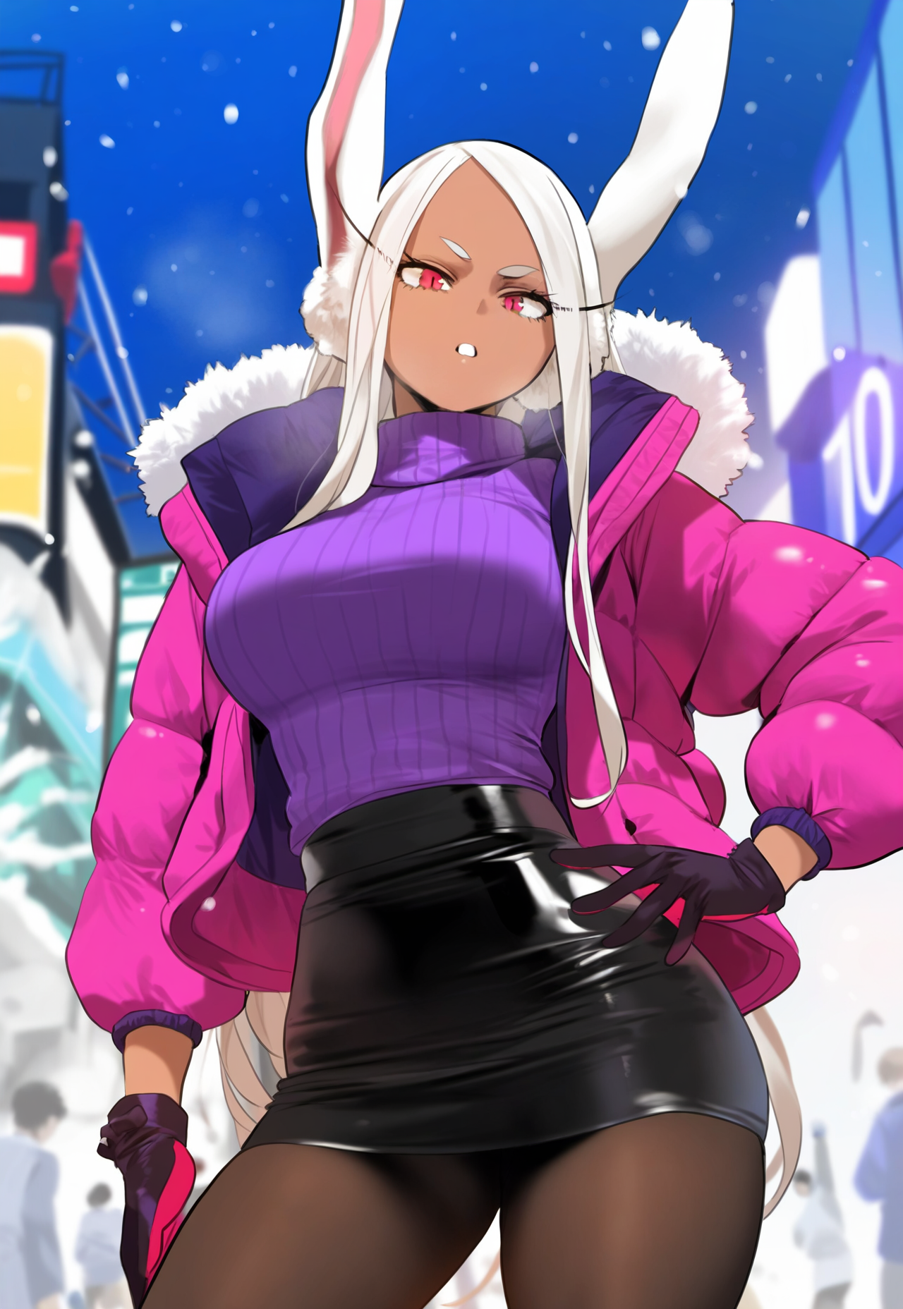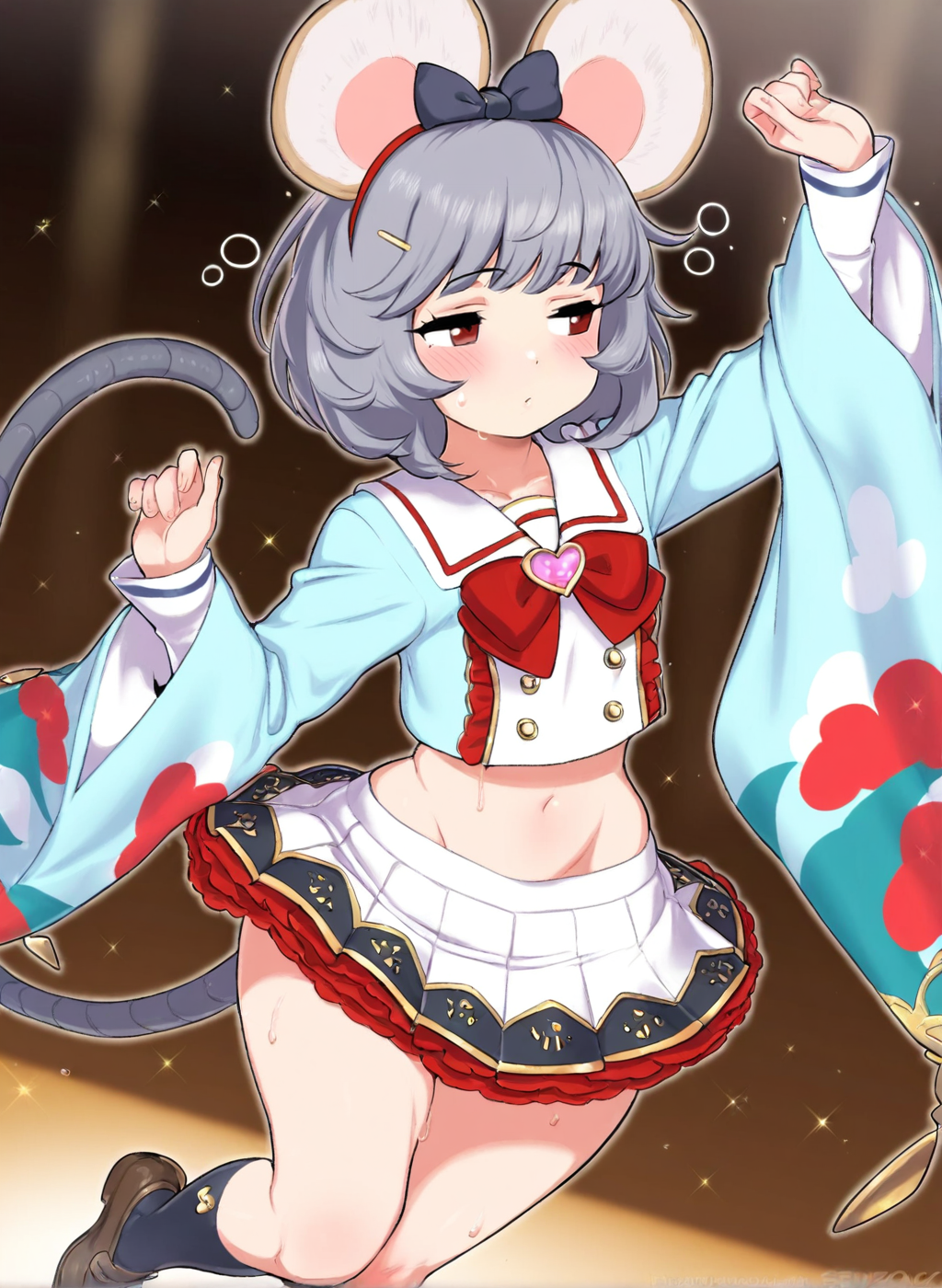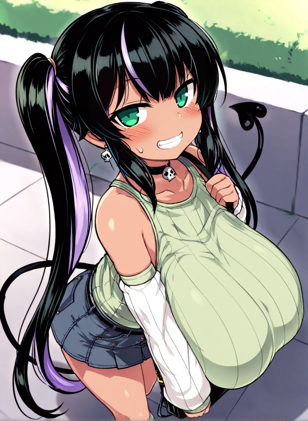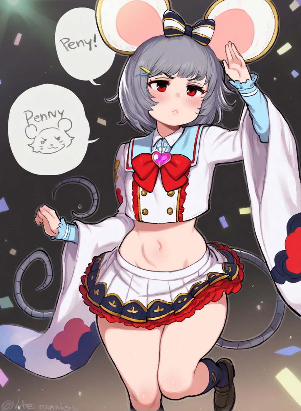 Negative prompt: verybadimagenegative_v1.3, (badhandv4), EasyNegativeV2, extra fingers, missing fingers, naval, exposed nipples, (nsfw), fat belly, midriff, ((purple eyes, blue eyes, red skirt, brown skirt)), headphones, muffin top, nails, hair ribbon, (shirt tucked in:1.3), bridal gauntlets, black wristband, black legwear, black thighhighs, large breasts, gloves, leotard,