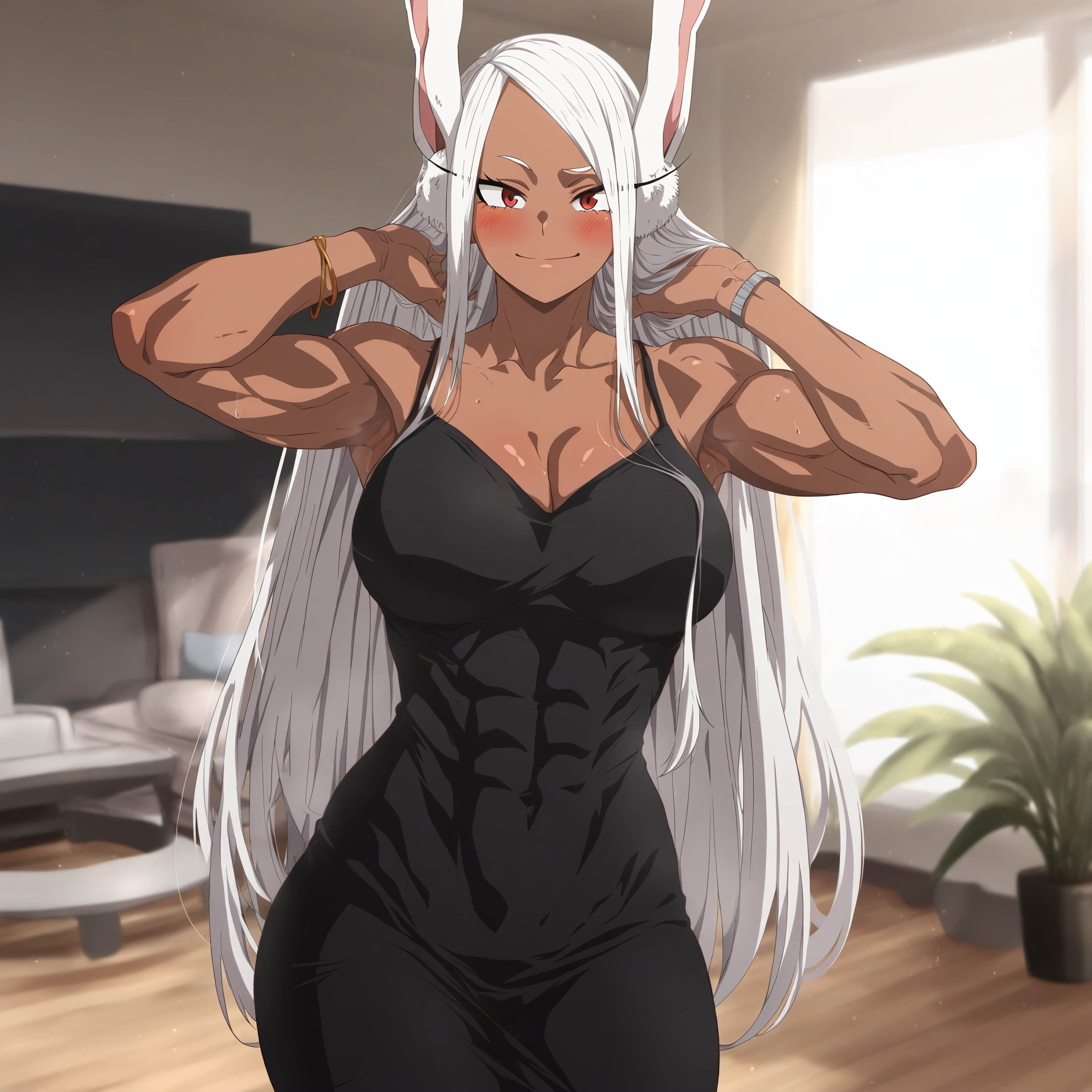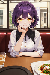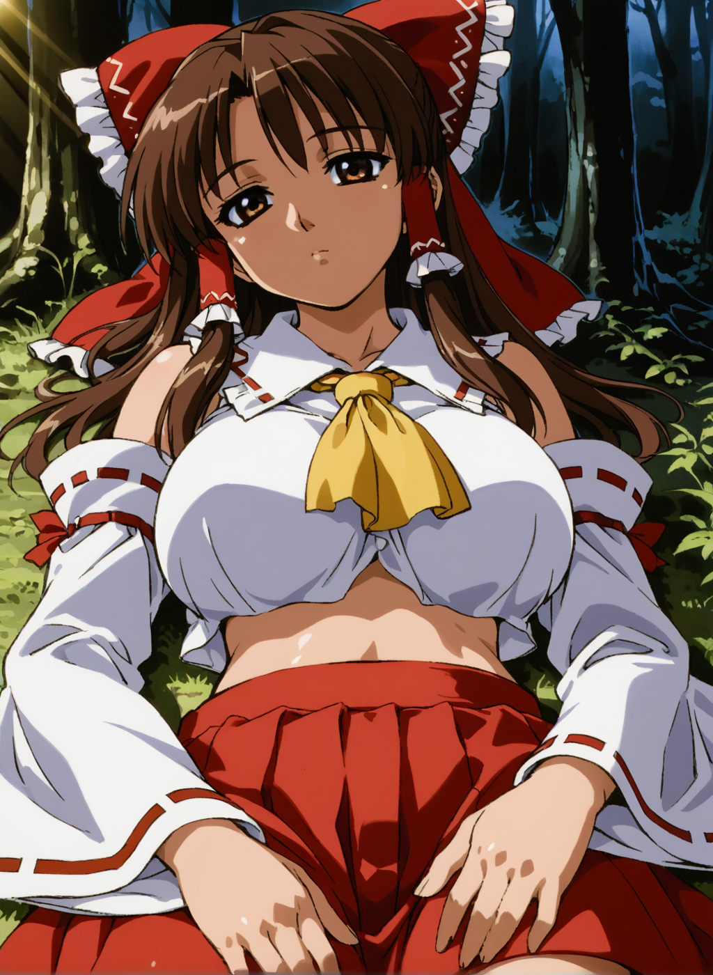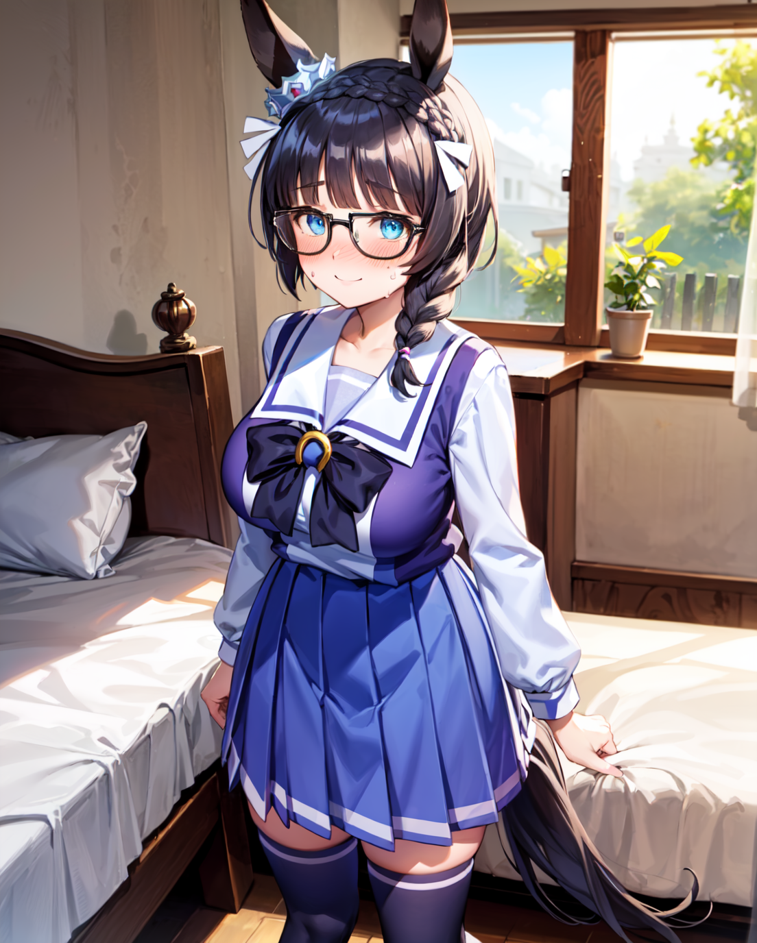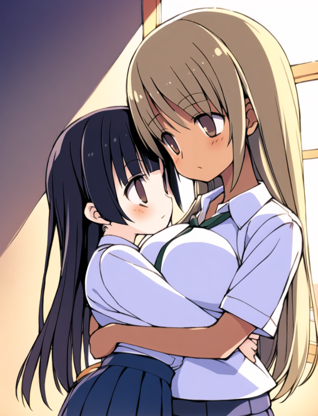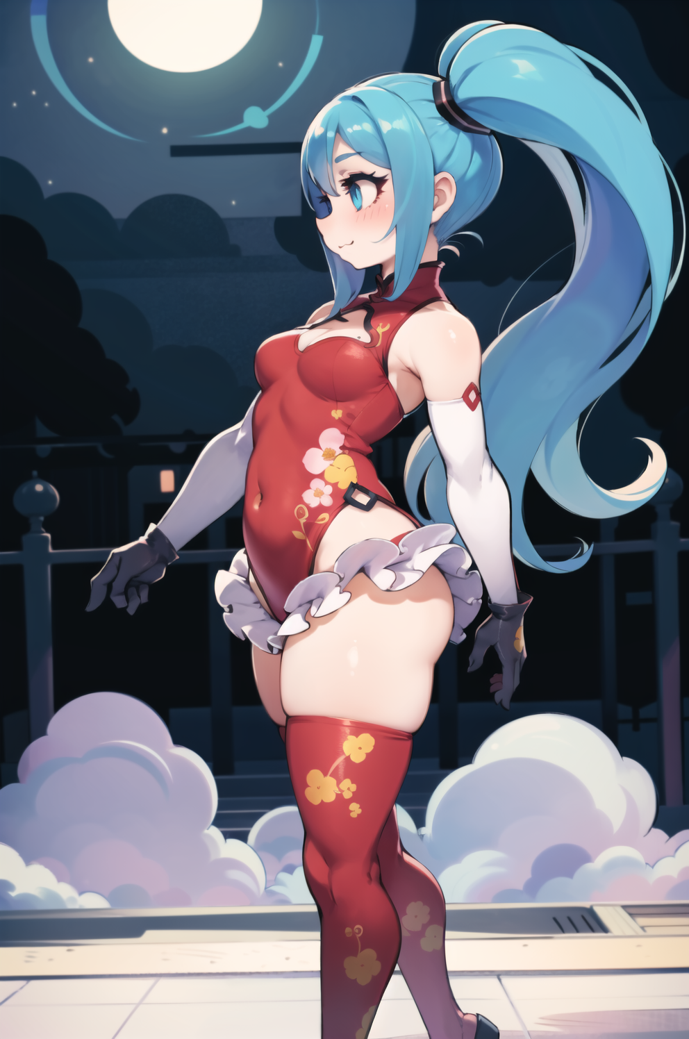 Negative prompt: verybadimagenegative_v1.3, (badhandv4), EasyNegativeV2, extra fingers, missing fingers, naval, exposed nipples, (nsfw), fat belly, midriff, ((purple eyes, blue eyes, red skirt, brown skirt)), headphones, muffin top, nails, hair ribbon, (shirt tucked in:1.3), bridal gauntlets, black wristband, black legwear, black thighhighs, large breasts, gloves, leotard,