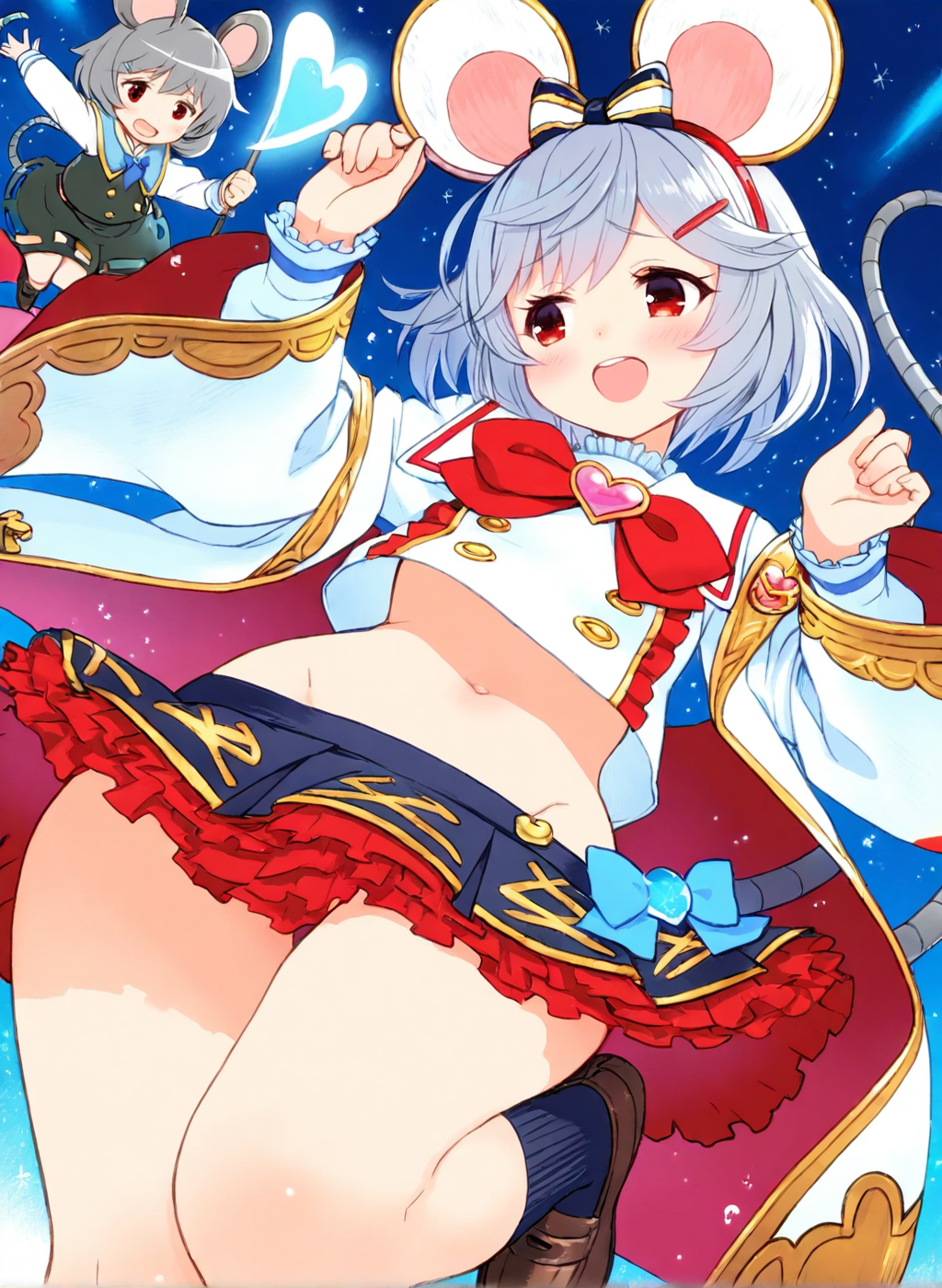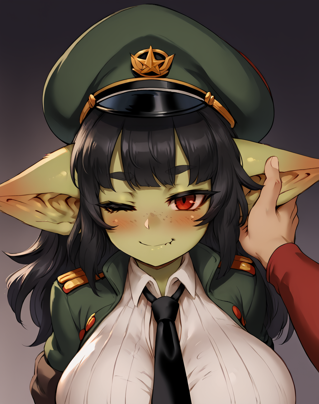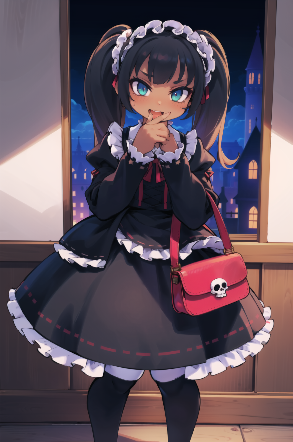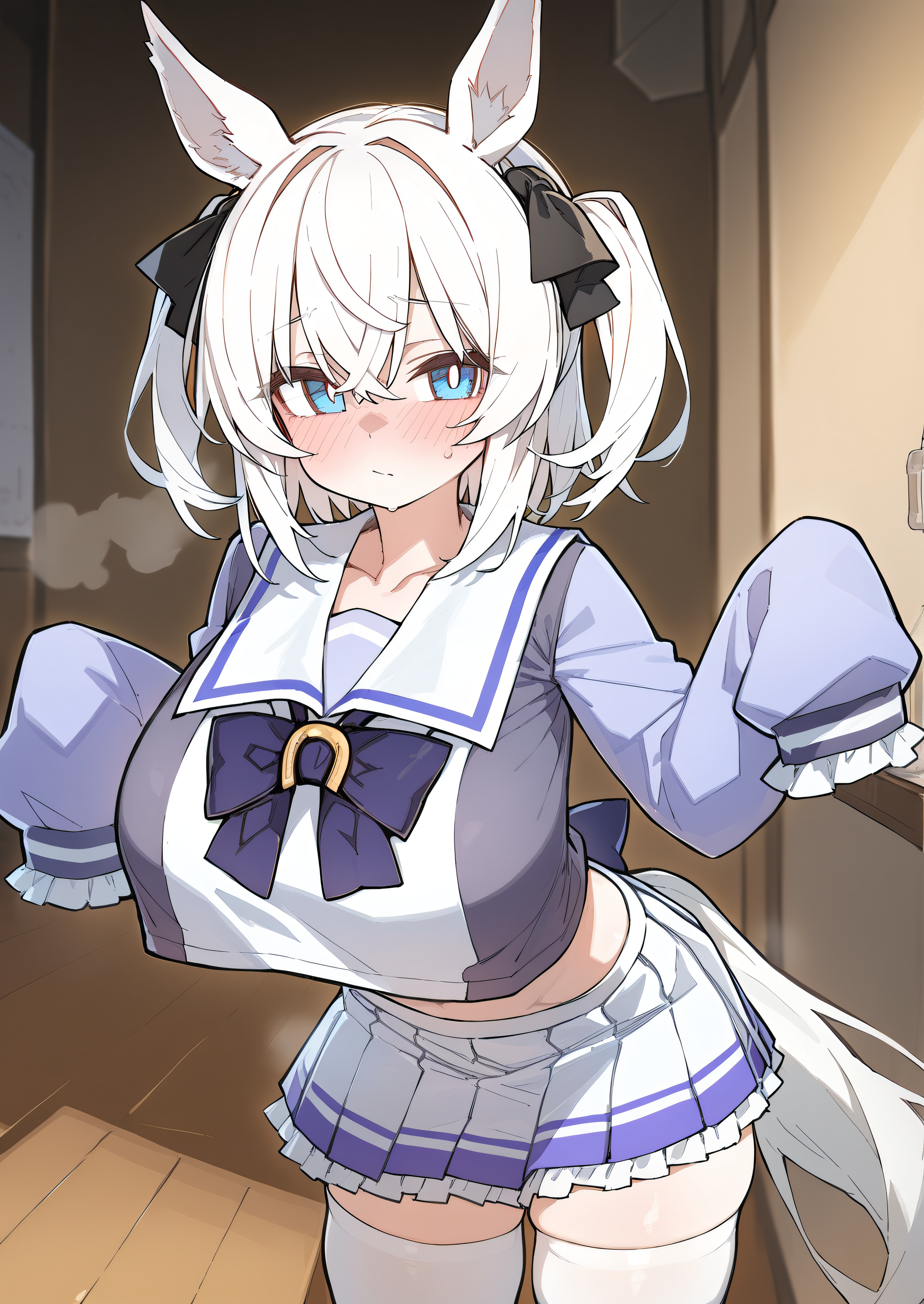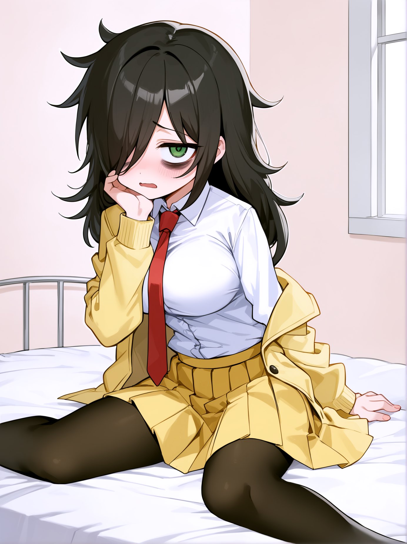 Negative prompt: verybadimagenegative_v1.3, (badhandv4), EasyNegativeV2, extra fingers, missing fingers, naval, exposed nipples, (nsfw), fat belly, midriff, ((purple eyes, blue eyes, red skirt, brown skirt)), headphones, muffin top, nails, hair ribbon, (shirt tucked in:1.3), bridal gauntlets, black wristband, black legwear, black thighhighs, large breasts, gloves, leotard,