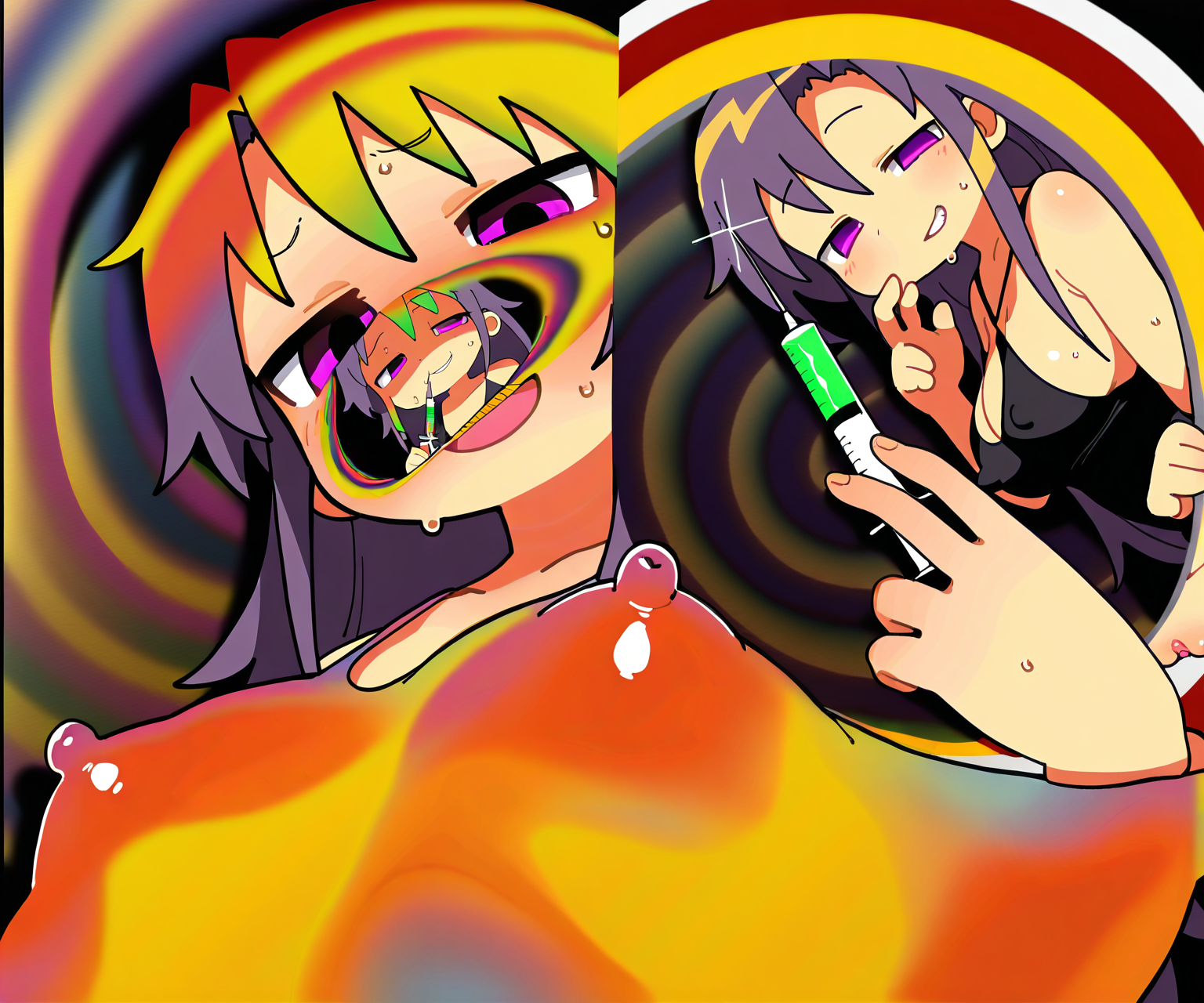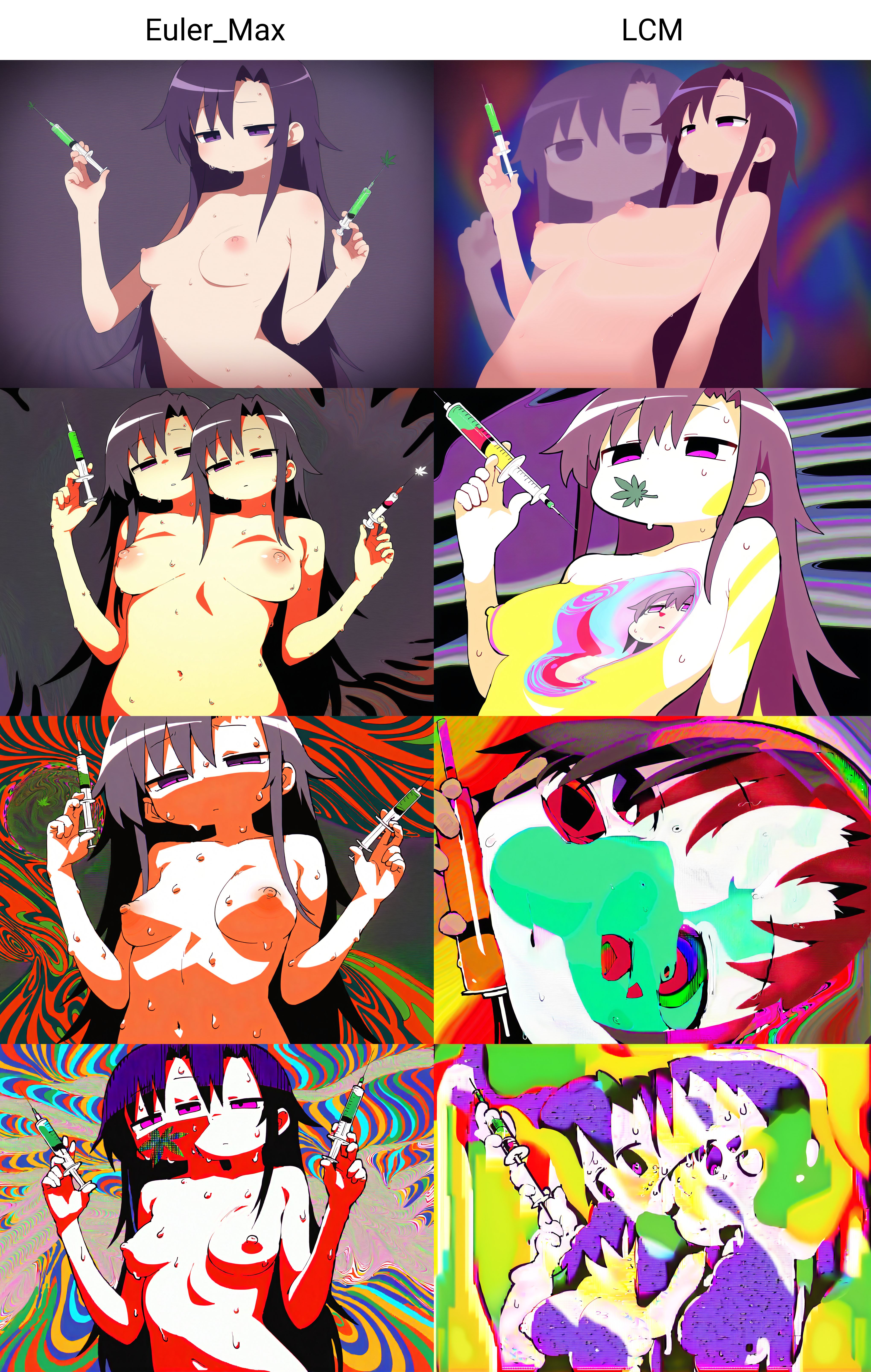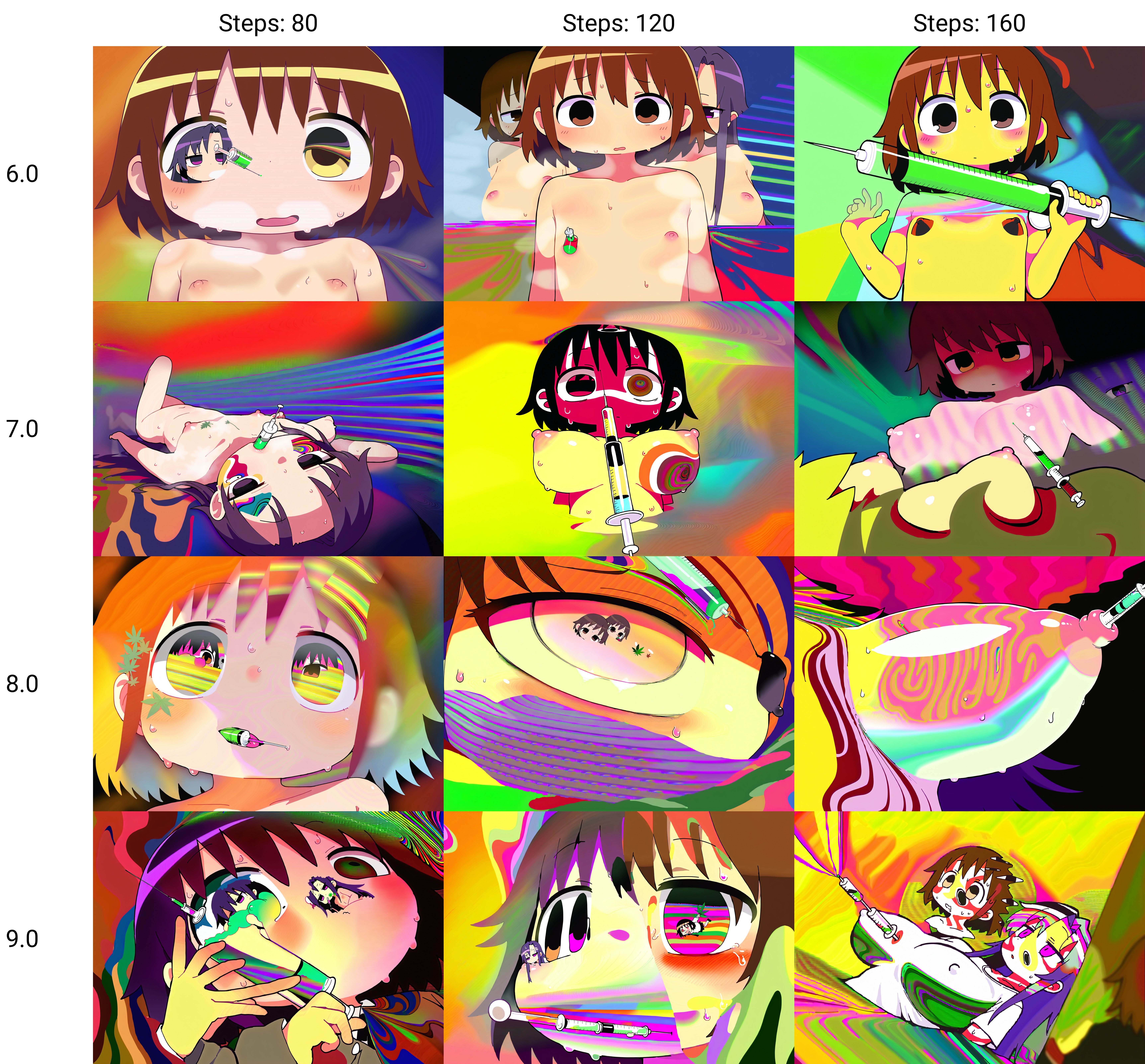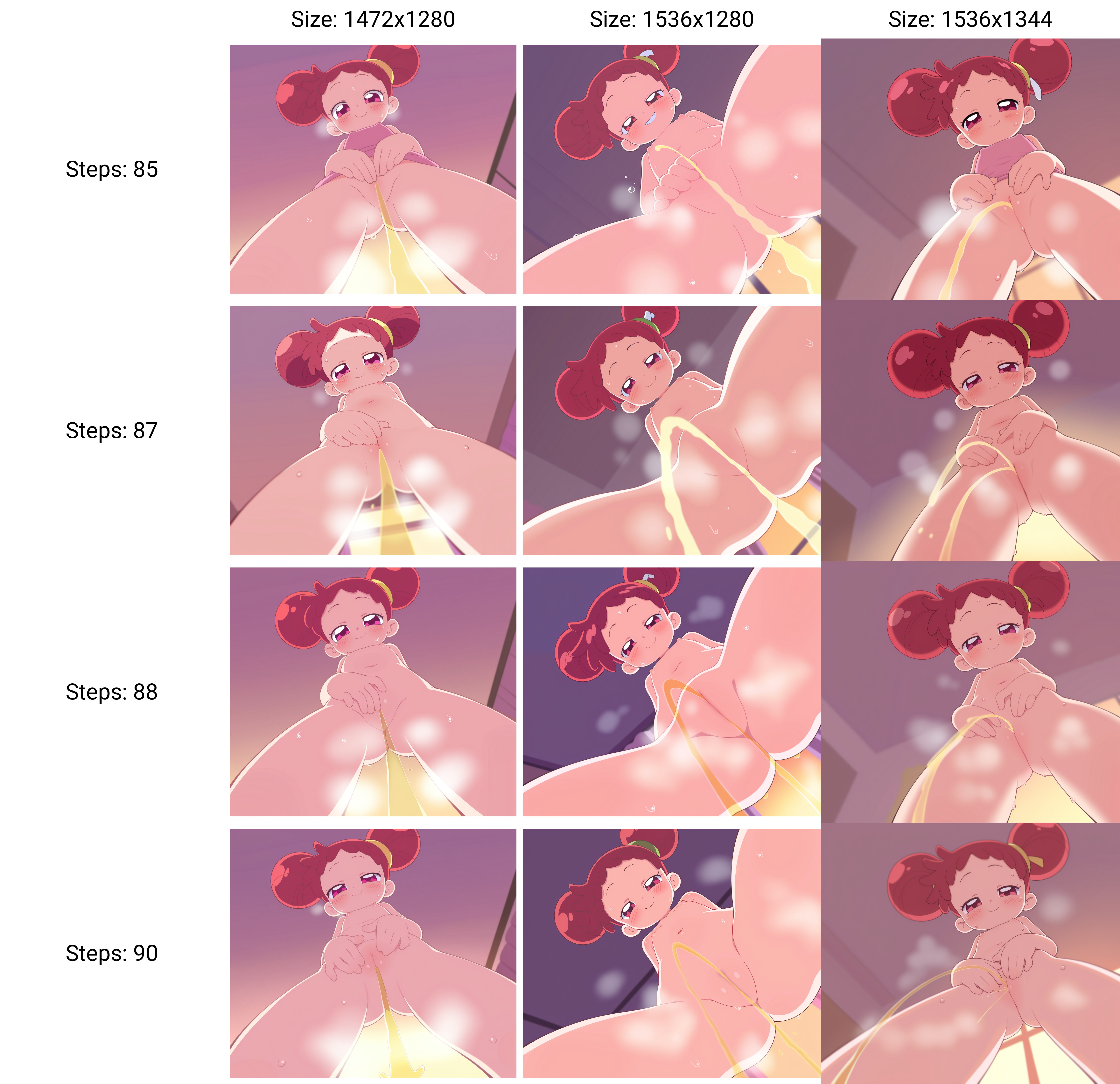 The main style loras I used were Urushihara Satoshi, Inkerton-kun and Mogudan. All draw curvy girls but Urushihara draws realistic proportions. Urushihara and Inkerton both draw shiny skin and similar hair. So they get higher weight to incorporate the unique artstyle. Mogudan draws huge asses so that was added at a low weight to not influence the style too much but to give the ass a nice shape. It took some trial and error but got the right balance in styles loras to get a huge ass and thighs but kept the gluten fold. The VAE: vae-ft-mse-840000-ema-pruned_fp16.pt is made for 90s/80s art. I think it was based off how Satoshi Urushihara's art. It's very saturated like Moistmix but that's better for a realistic anime style rather that 90s poster official art.