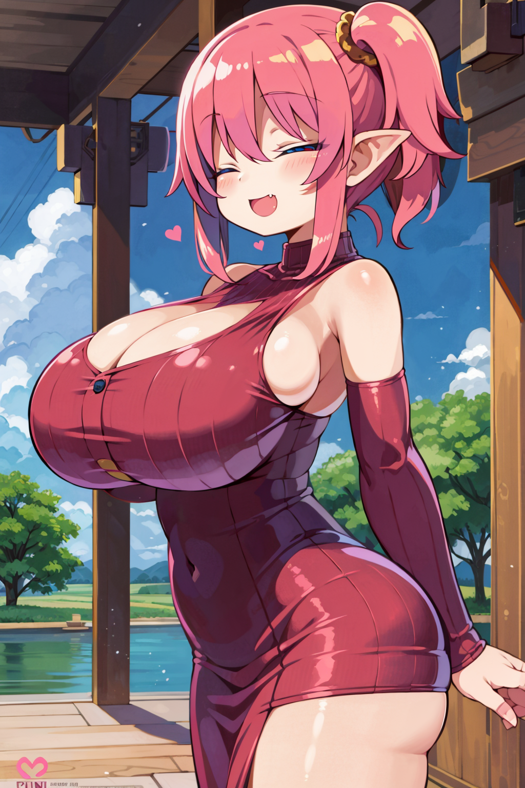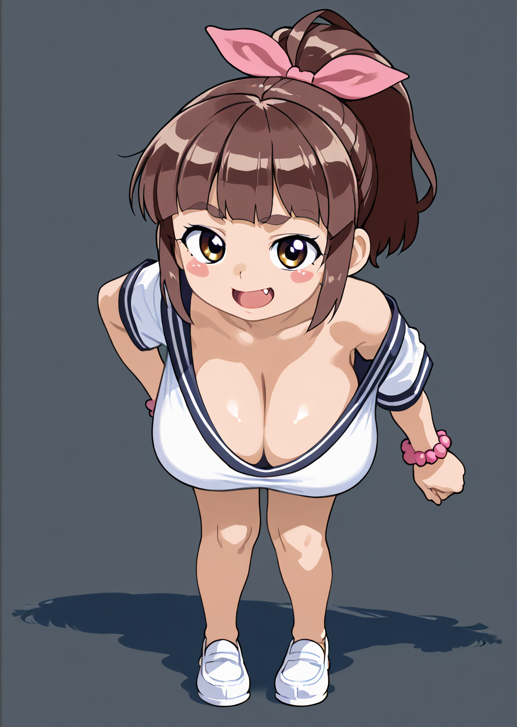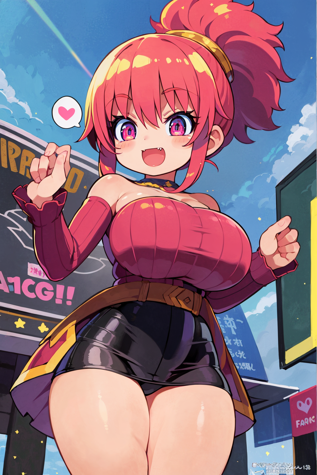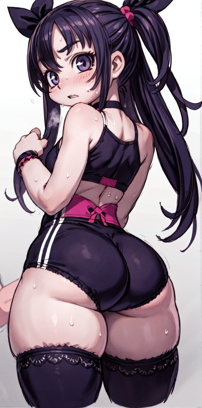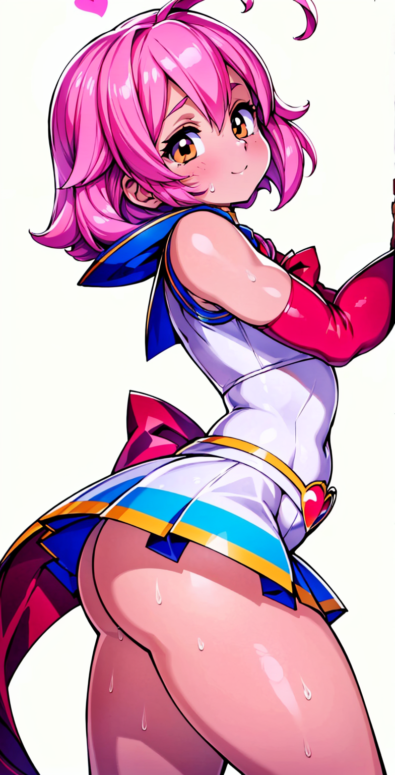 <lora:Neg4All V3-5:1>, (masterpiece, best quality, Earth-QualityPos - Better Lighting, high quality, black ink shading:1.4, <lora:GoodHands-beta2:1>, Best_QualityPos, highres, absurdres, ultra-detailed drawing), finely detailed drawing, ultra detailed CG, <lora:Heart Aino:.7> arcana heart, aino heart, aino_heart, 1girl, out of focus background, (heart ahoge), visible heavy breathing, [[steaming body]], pink hair, short hair, brown eyes, white shirt, short sleeves, wrist bow, red wristband, (orange skirt, pleated skirt:1.2), [pink striped panties, untucked shirt, white thighhighs, shoes, outdoors, living room, (slapping ass), looking back, sitting on wooden stool, (sweat:1.3, oily and shiny skin), [wet clothes], exhausted, (confident, smug:1.3, evil smile:1.2, puff of air), (from behind:1.2, close up:1.1), nape, highly detailed face, enchanting eyes, sparkling eyes, beautiful eyes, gluteal fold, dynamic pose, dynamic view, small breasts, (thick thighs:.7, plump:.3, big ass:.6, wide hips), (sfw:1.1), <lora:Wide Hips:0.4> happy, smile, <lora:add_detail:0.3>, <lora:Urushihara Satoshi_v3:0.5> <lora:Inkerton-kun Style:.4> <lora:Mogudan Style:0.2>