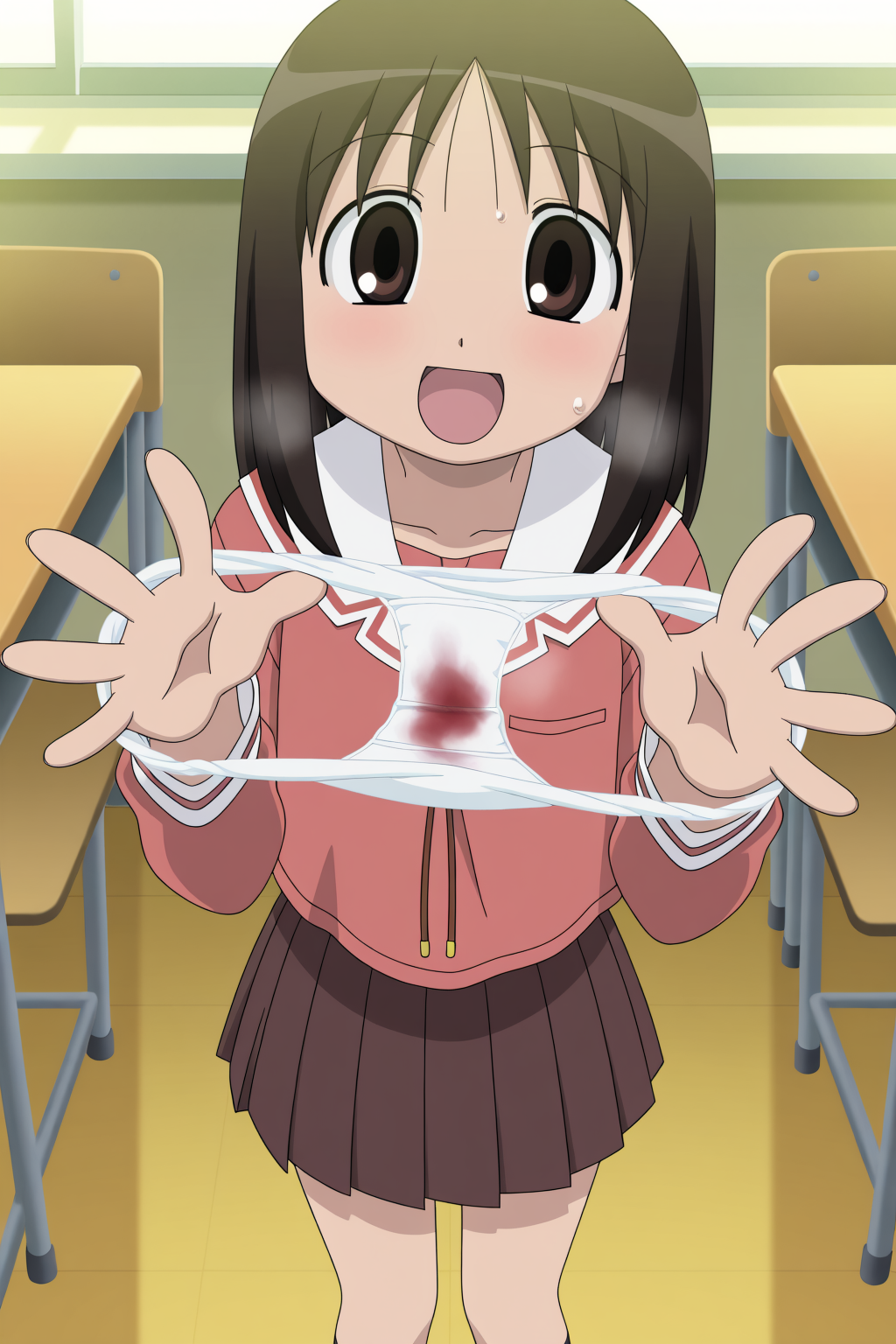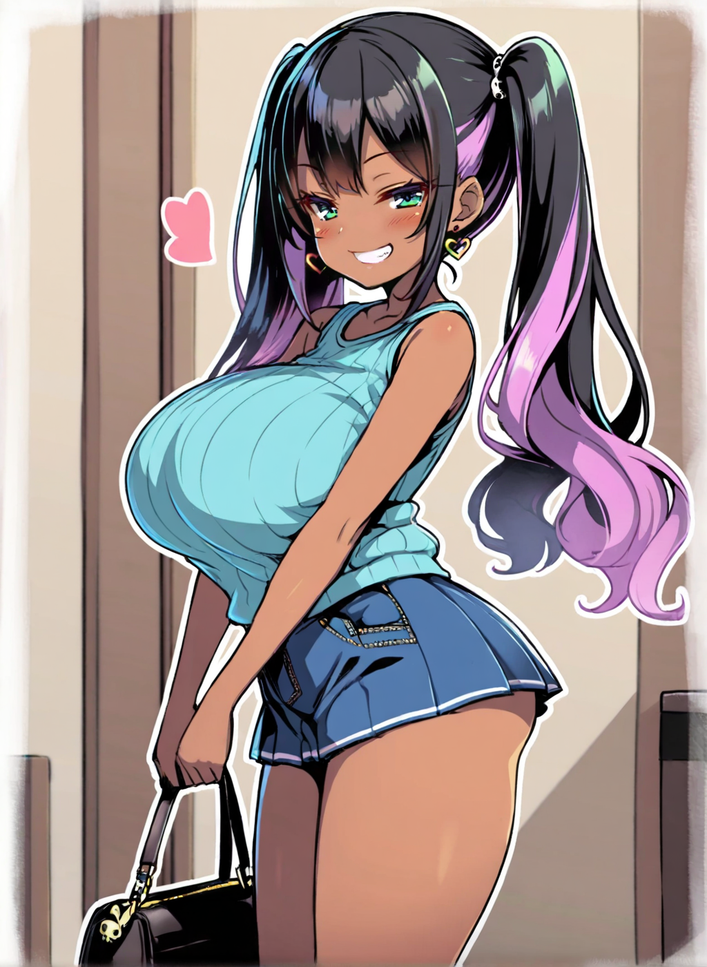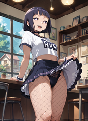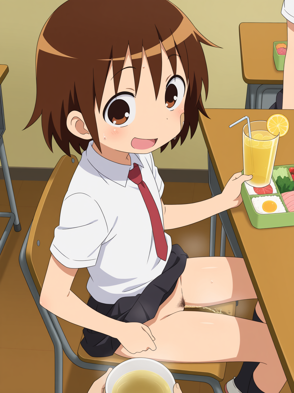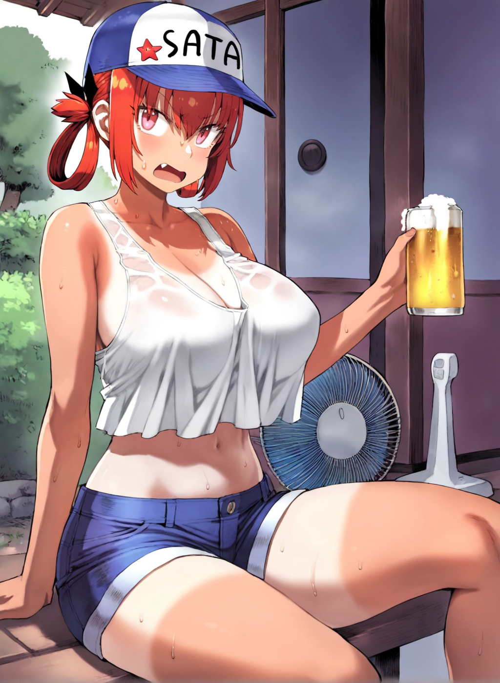 <lora:Neg4All V3-5:1>, (masterpiece, best quality, Earth-QualityPos - Better Lighting, high quality, black ink shading:1.4, <lora:GoodHands-beta2:1>, Best_QualityPos, highres, absurdres, ultra-detailed drawing), finely detailed drawing, ultra detailed CG, <lora:Heart Aino:.7> arcana heart, aino heart, aino_heart, 1girl, out of focus background, (heart ahoge), visible heavy breathing, [[steaming body]], pink hair, short hair, brown eyes, white shirt, short sleeves, wrist bow, red wristband, (orange skirt, pleated skirt:1.2), [pink striped panties, untucked shirt, white thighhighs, shoes, outdoors, living room, (slapping ass), looking back, sitting on wooden stool, (sweat:1.3, oily and shiny skin), [wet clothes], exhausted, (confident, smug:1.3, evil smile:1.2, puff of air), (from behind:1.2, close up:1.1), nape, highly detailed face, enchanting eyes, sparkling eyes, beautiful eyes, gluteal fold, dynamic pose, dynamic view, small breasts, (thick thighs:.7, plump:.3, big ass:.6, wide hips), (sfw:1.1), <lora:Wide Hips:0.4> happy, smile, <lora:add_detail:0.3>, <lora:Urushihara Satoshi_v3:0.5> <lora:Inkerton-kun Style:.4> <lora:Mogudan Style:0.2>