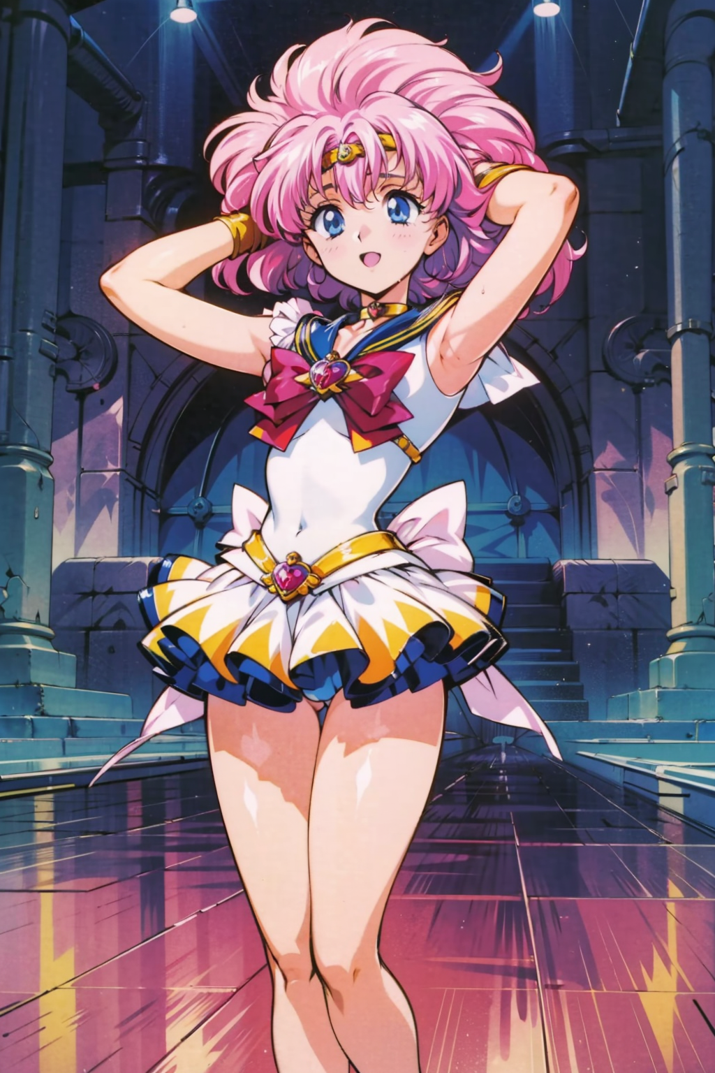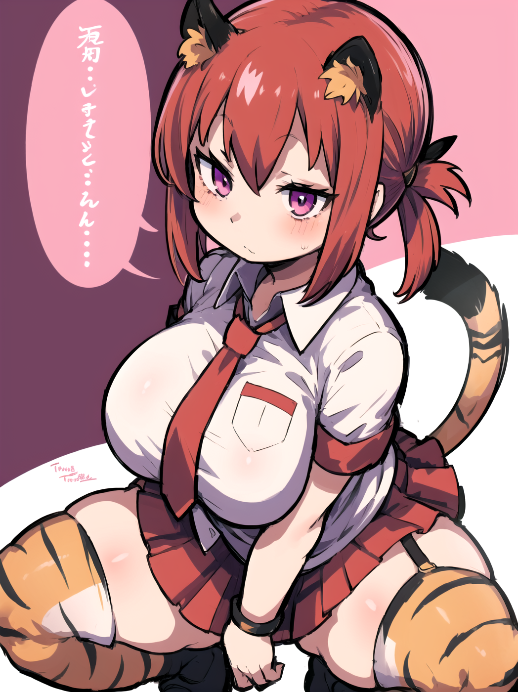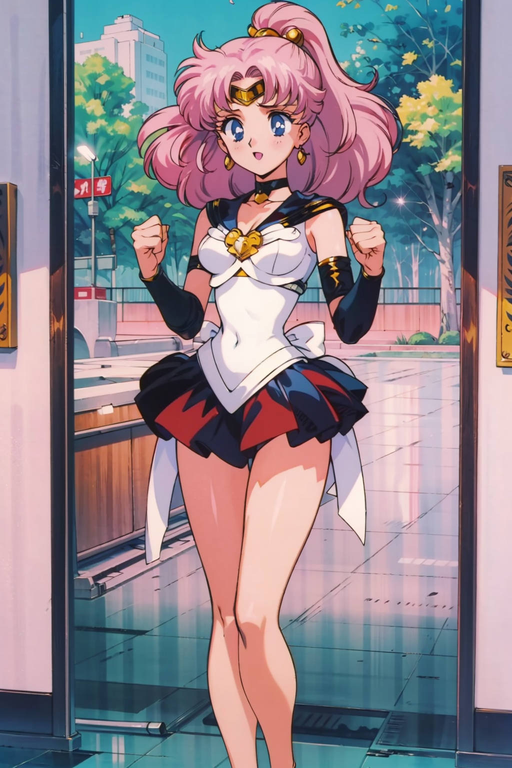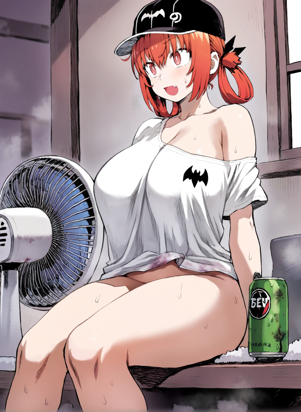 <lora:Neg4All V3-5:1>, (masterpiece, best quality, Earth-QualityPos - Better Lighting, high quality, black ink shading:1.4, <lora:GoodHands-beta2:1>, Best_QualityPos, highres, absurdres, ultra-detailed drawing), finely detailed drawing, ultra detailed CG, <lora:Heart Aino:.7> arcana heart, aino heart, aino_heart, 1girl, out of focus background, (heart ahoge), visible heavy breathing, [[steaming body]], pink hair, short hair, brown eyes, white shirt, short sleeves, wrist bow, red wristband, (orange skirt, pleated skirt:1.2), [pink striped panties, untucked shirt, white thighhighs, shoes, outdoors, living room, (slapping ass), looking back, sitting on wooden stool, (sweat:1.3, oily and shiny skin), [wet clothes], exhausted, (confident, smug:1.3, evil smile:1.2, puff of air), (from behind:1.2, close up:1.1), nape, highly detailed face, enchanting eyes, sparkling eyes, beautiful eyes, gluteal fold, dynamic pose, dynamic view, small breasts, (thick thighs:.7, plump:.3, big ass:.6, wide hips), (sfw:1.1), <lora:Wide Hips:0.4> happy, smile, <lora:add_detail:0.3>, <lora:Urushihara Satoshi_v3:0.5> <lora:Inkerton-kun Style:.4> <lora:Mogudan Style:0.2>