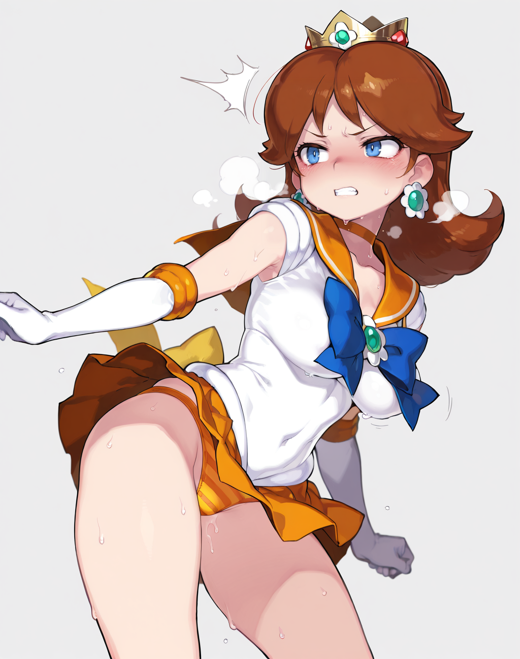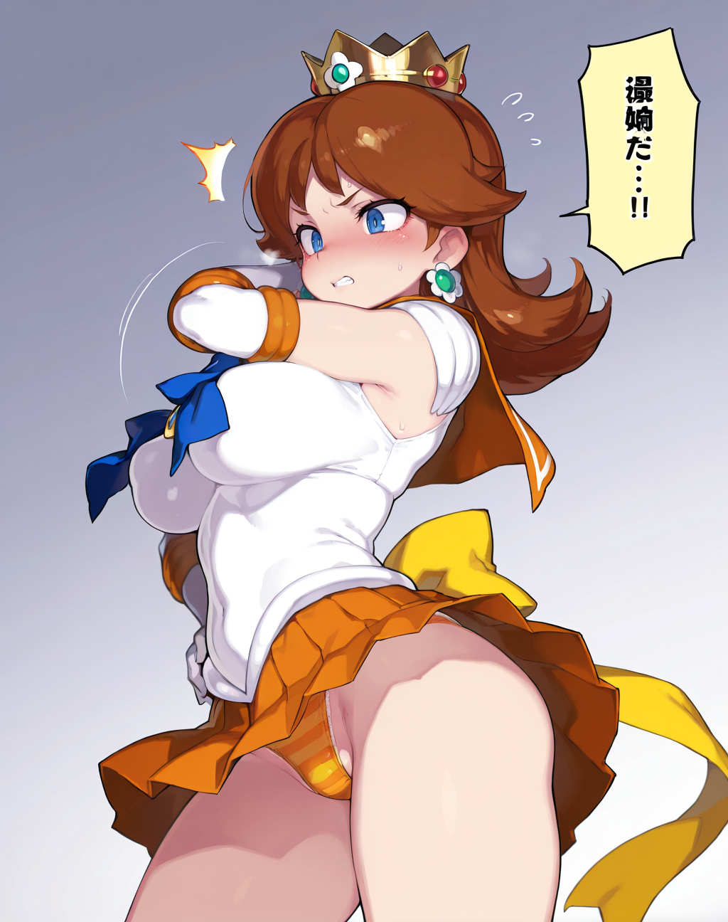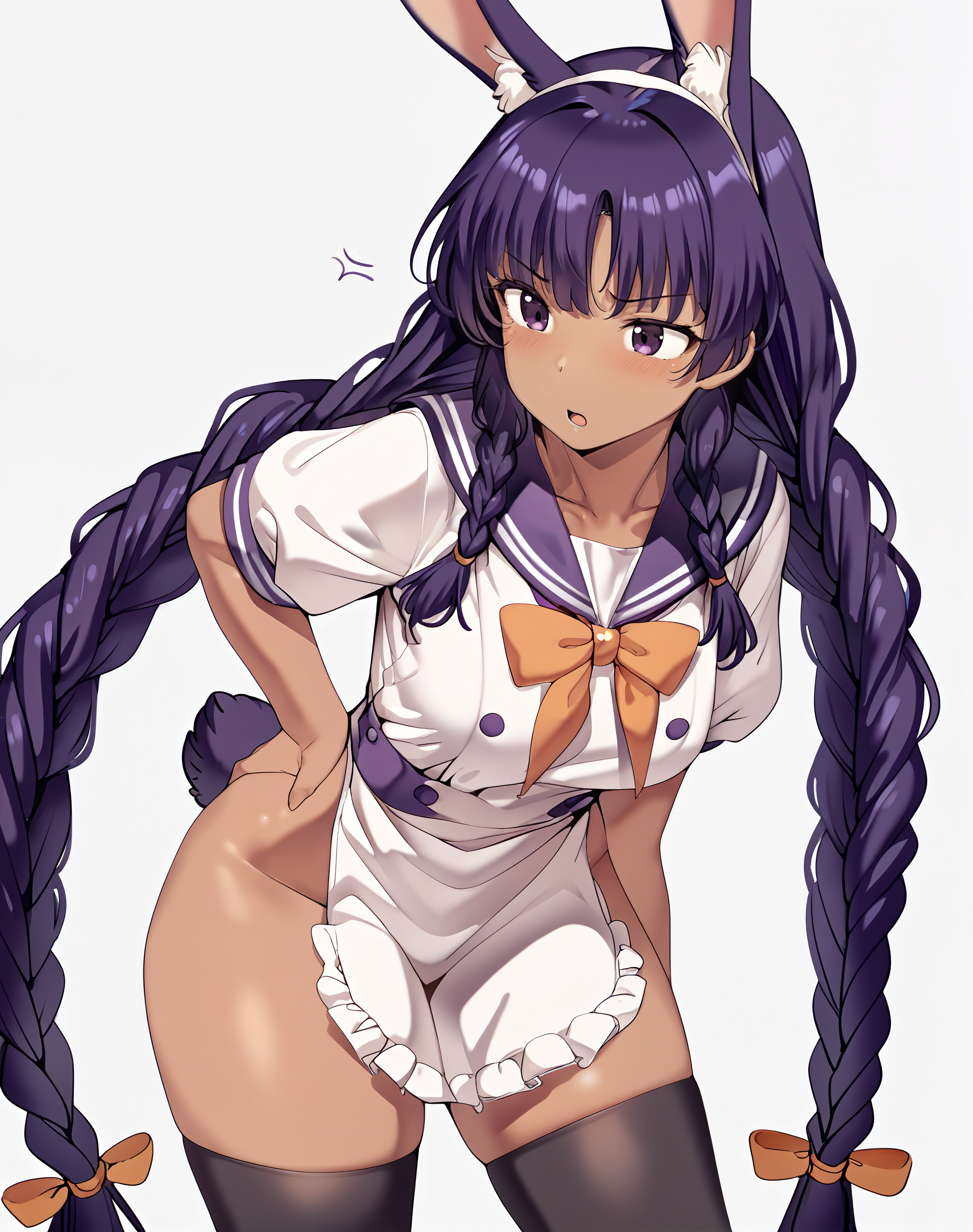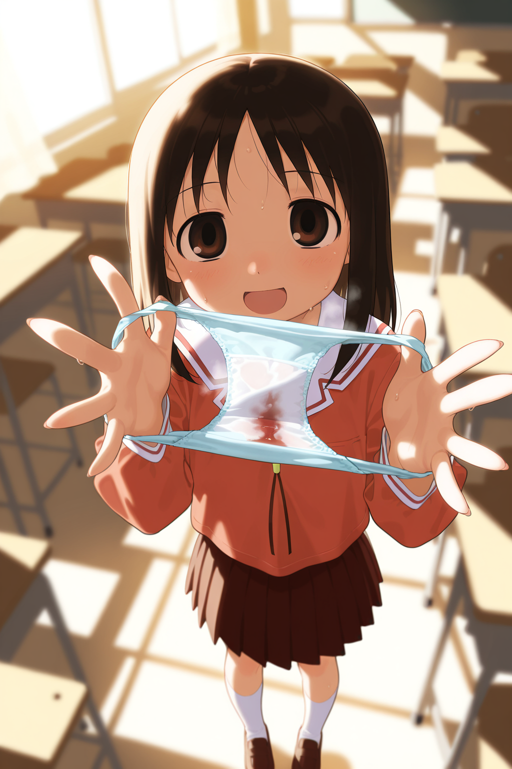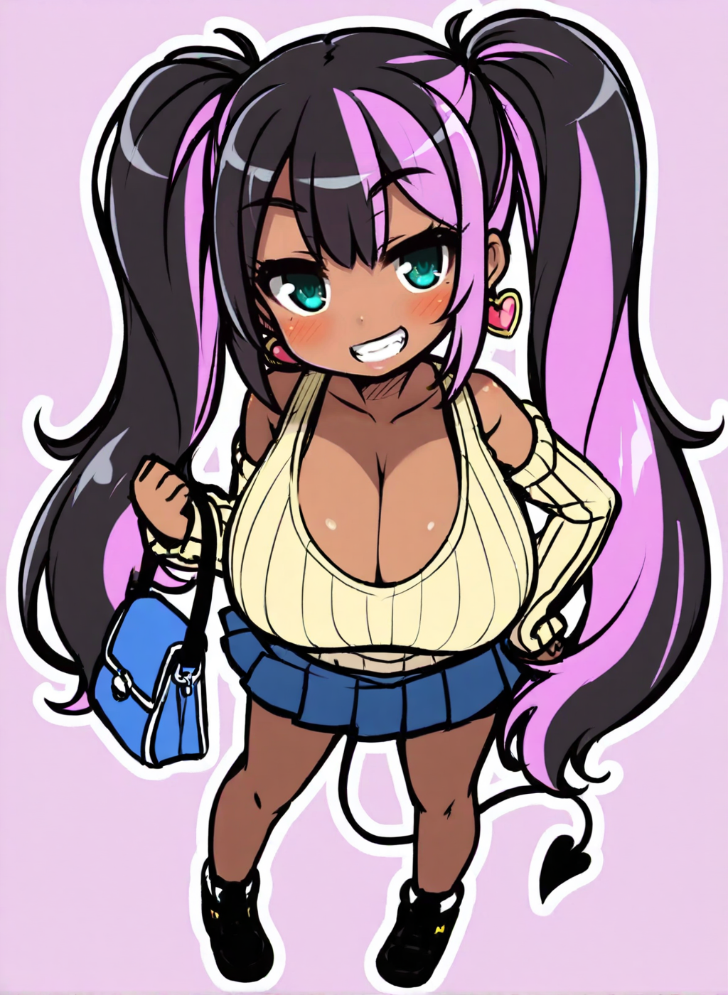<lora:Neg4All V3-5:1>, (masterpiece, best quality, Earth-QualityPos - Better Lighting, high quality, black ink shading:1.4, <lora:GoodHands-beta2:1>, Best_QualityPos, highres, absurdres, ultra-detailed drawing), finely detailed drawing, ultra detailed CG, <lora:Heart Aino:.7> arcana heart, aino heart, aino_heart, 1girl, out of focus background, (heart ahoge), visible heavy breathing, [[steaming body]], pink hair, short hair, brown eyes, white shirt, short sleeves, wrist bow, red wristband, (orange skirt, pleated skirt:1.2), [pink striped panties, untucked shirt, white thighhighs, shoes, outdoors, living room, (slapping ass), looking back, sitting on wooden stool, (sweat:1.3, oily and shiny skin), [wet clothes], exhausted, (confident, smug:1.3, evil smile:1.2, puff of air), (from behind:1.2, close up:1.1), nape, highly detailed face, enchanting eyes, sparkling eyes, beautiful eyes, gluteal fold, dynamic pose, dynamic view, small breasts, (thick thighs:.7, plump:.3, big ass:.6, wide hips), (sfw:1.1), <lora:Wide Hips:0.4> happy, smile, <lora:add_detail:0.3>, <lora:Urushihara Satoshi_v3:0.5> <lora:Inkerton-kun Style:.4> <lora:Mogudan Style:0.2>