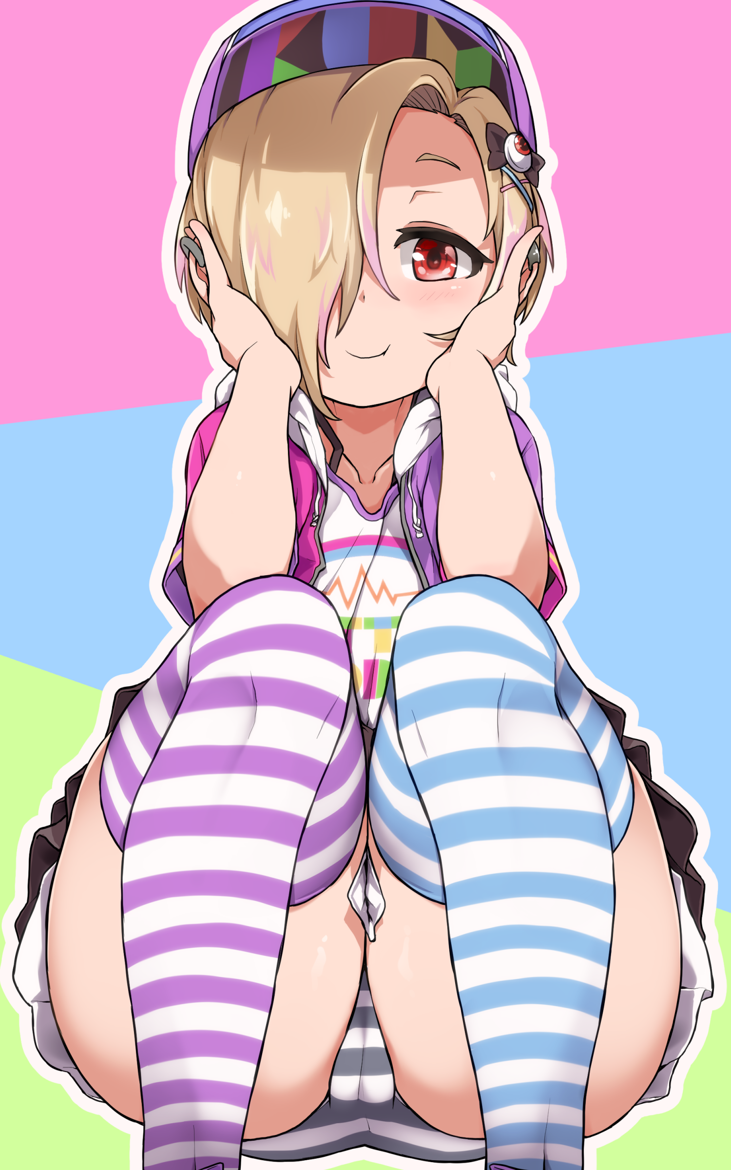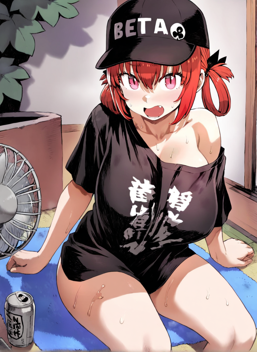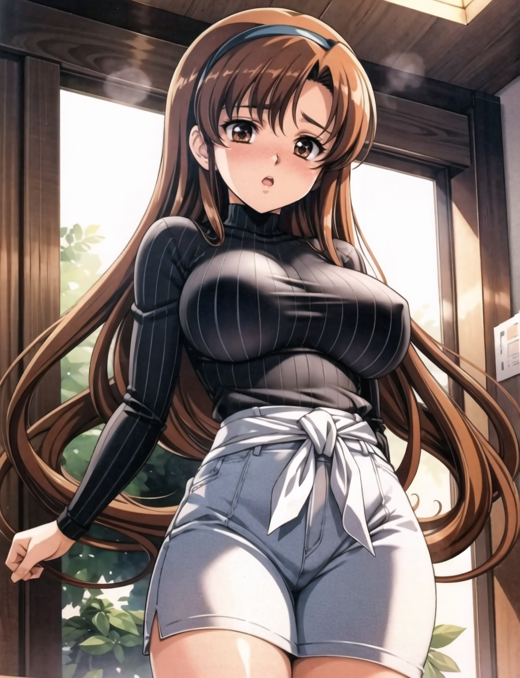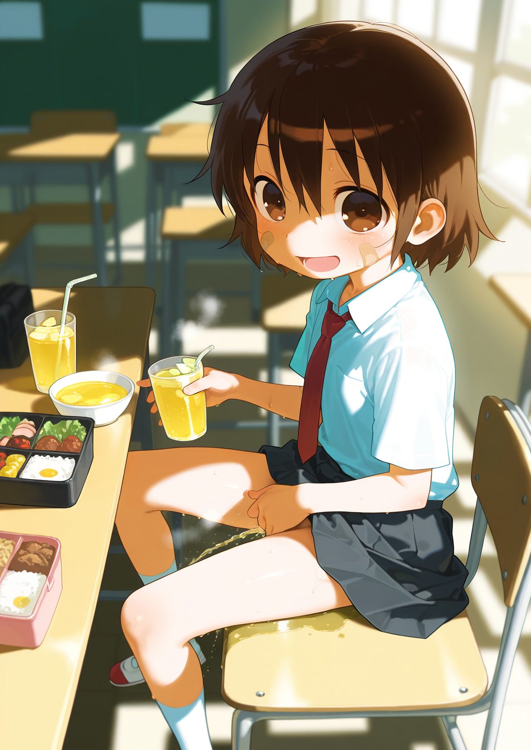 <lora:Neg4All V3-5:1>, (masterpiece, best quality, Earth-QualityPos - Better Lighting, high quality, black ink shading:1.4, <lora:GoodHands-beta2:1>, Best_QualityPos, highres, absurdres, ultra-detailed drawing), finely detailed drawing, ultra detailed CG, <lora:Heart Aino:.7> arcana heart, aino heart, aino_heart, 1girl, out of focus background, (heart ahoge), visible heavy breathing, [[steaming body]], pink hair, short hair, brown eyes, white shirt, short sleeves, wrist bow, red wristband, (orange skirt, pleated skirt:1.2), [pink striped panties, untucked shirt, white thighhighs, shoes, outdoors, living room, (slapping ass), looking back, sitting on wooden stool, (sweat:1.3, oily and shiny skin), [wet clothes], exhausted, (confident, smug:1.3, evil smile:1.2, puff of air), (from behind:1.2, close up:1.1), nape, highly detailed face, enchanting eyes, sparkling eyes, beautiful eyes, gluteal fold, dynamic pose, dynamic view, small breasts, (thick thighs:.7, plump:.3, big ass:.6, wide hips), (sfw:1.1), <lora:Wide Hips:0.4> happy, smile, <lora:add_detail:0.3>, <lora:Urushihara Satoshi_v3:0.5> <lora:Inkerton-kun Style:.4> <lora:Mogudan Style:0.2>