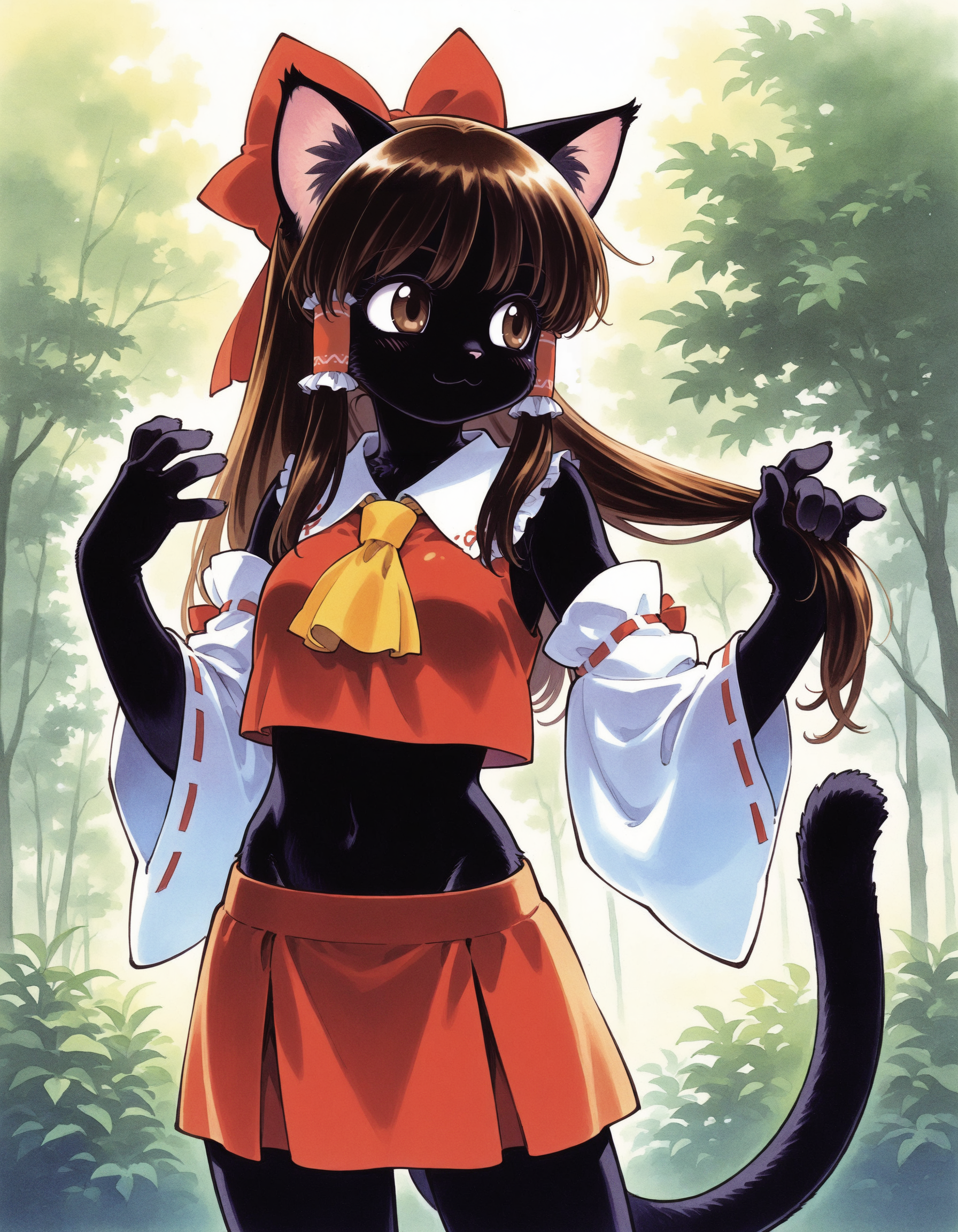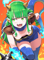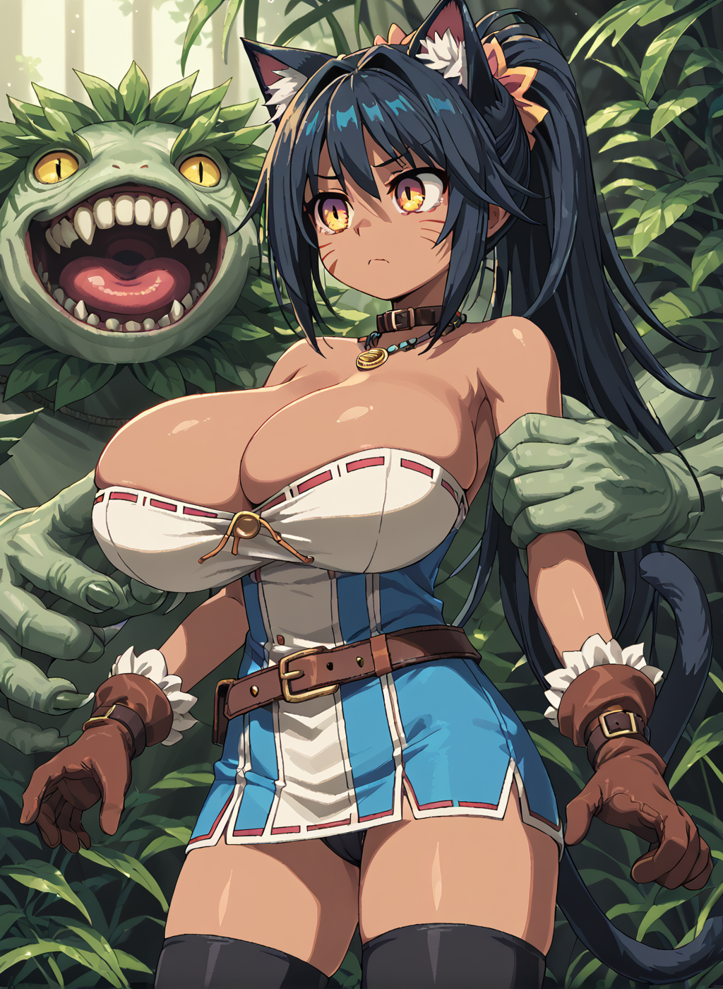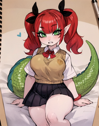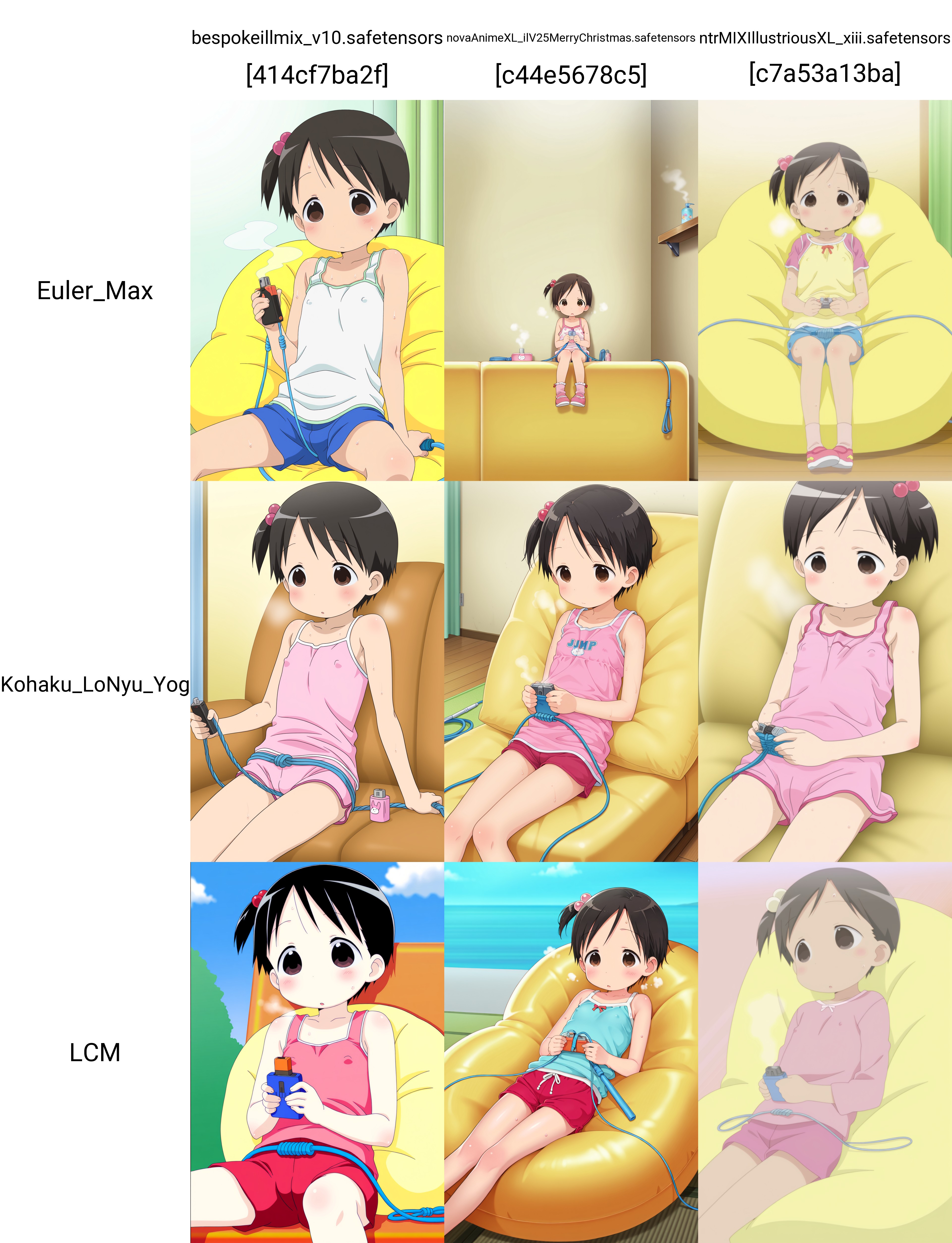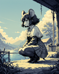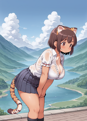 Adding some thoughts behind the thought process that went into some of the gens. As of late I've been using the model satyrremixDaybreak_v10 because it's a flexible anime model that handles many different style loras well while giving a lot of detail. It's not the best for monster girl material but does kemonomimi decently. It can also do kemono stuff if you're interested in that. While it can do loli just fine, it's more aimed to generate curvy body types. The body type and lora flexibility is why I used the model for this one.