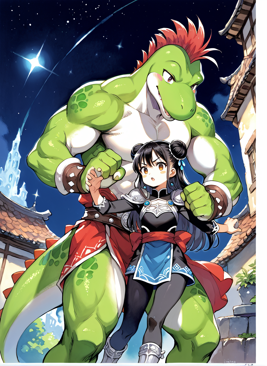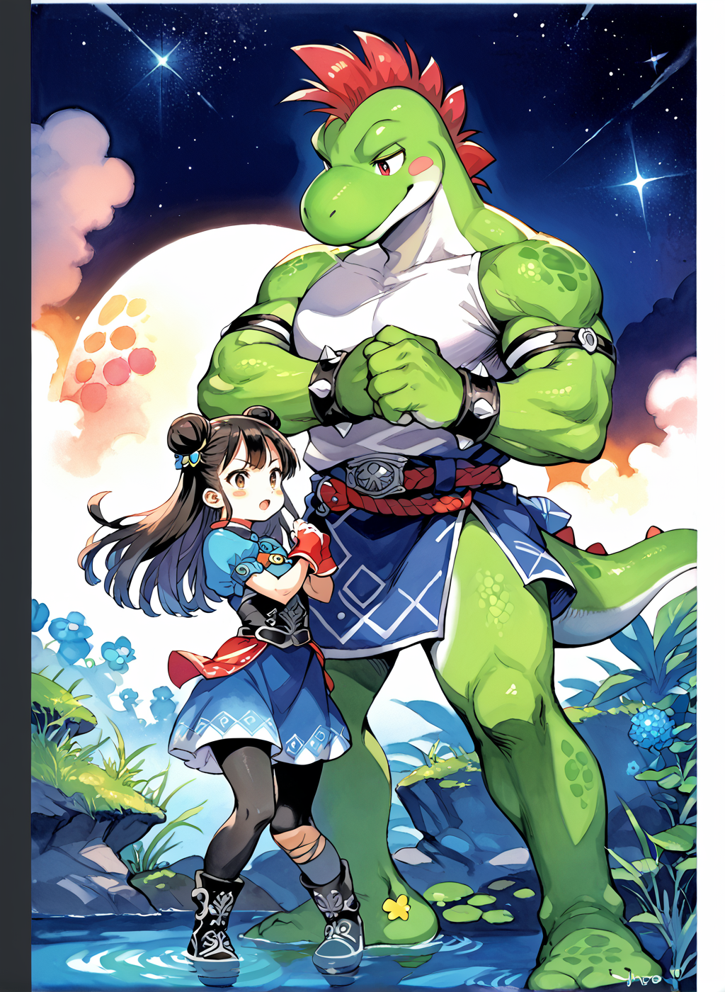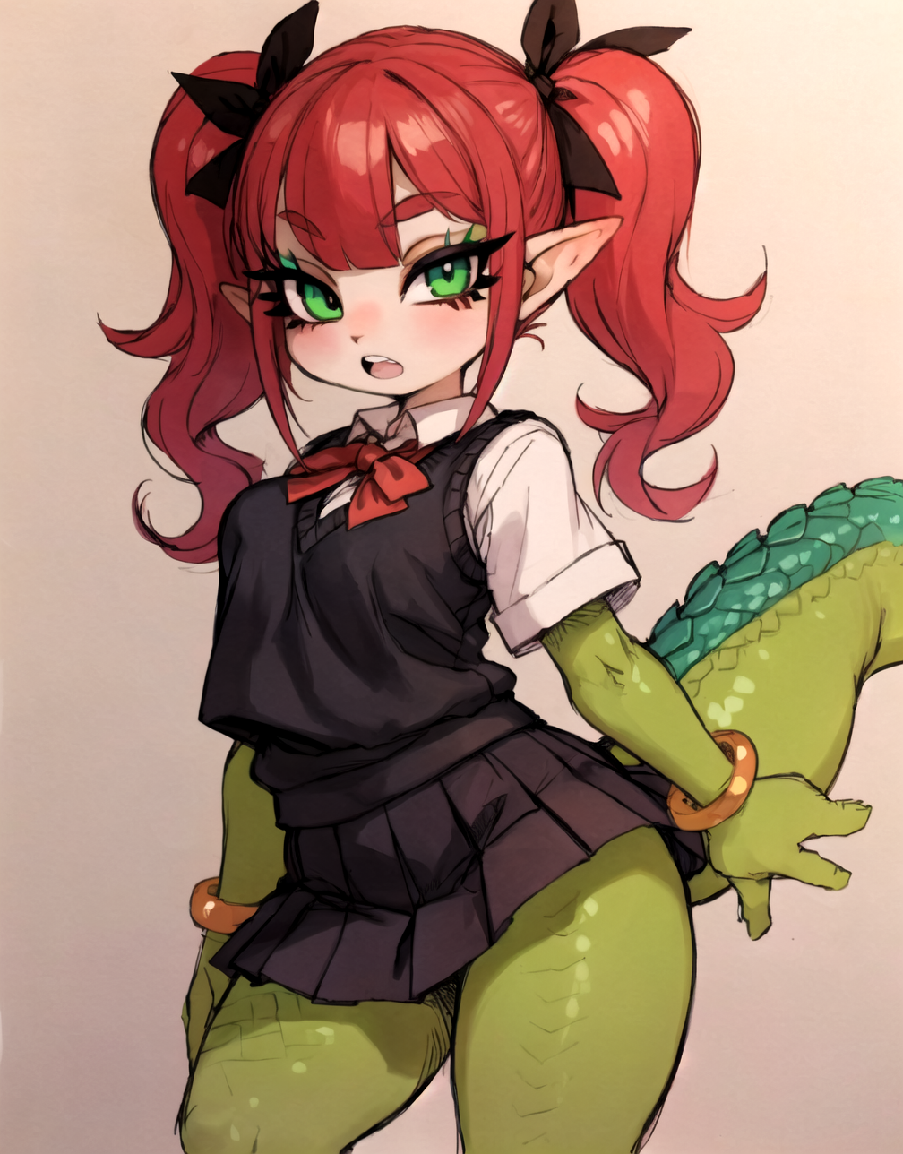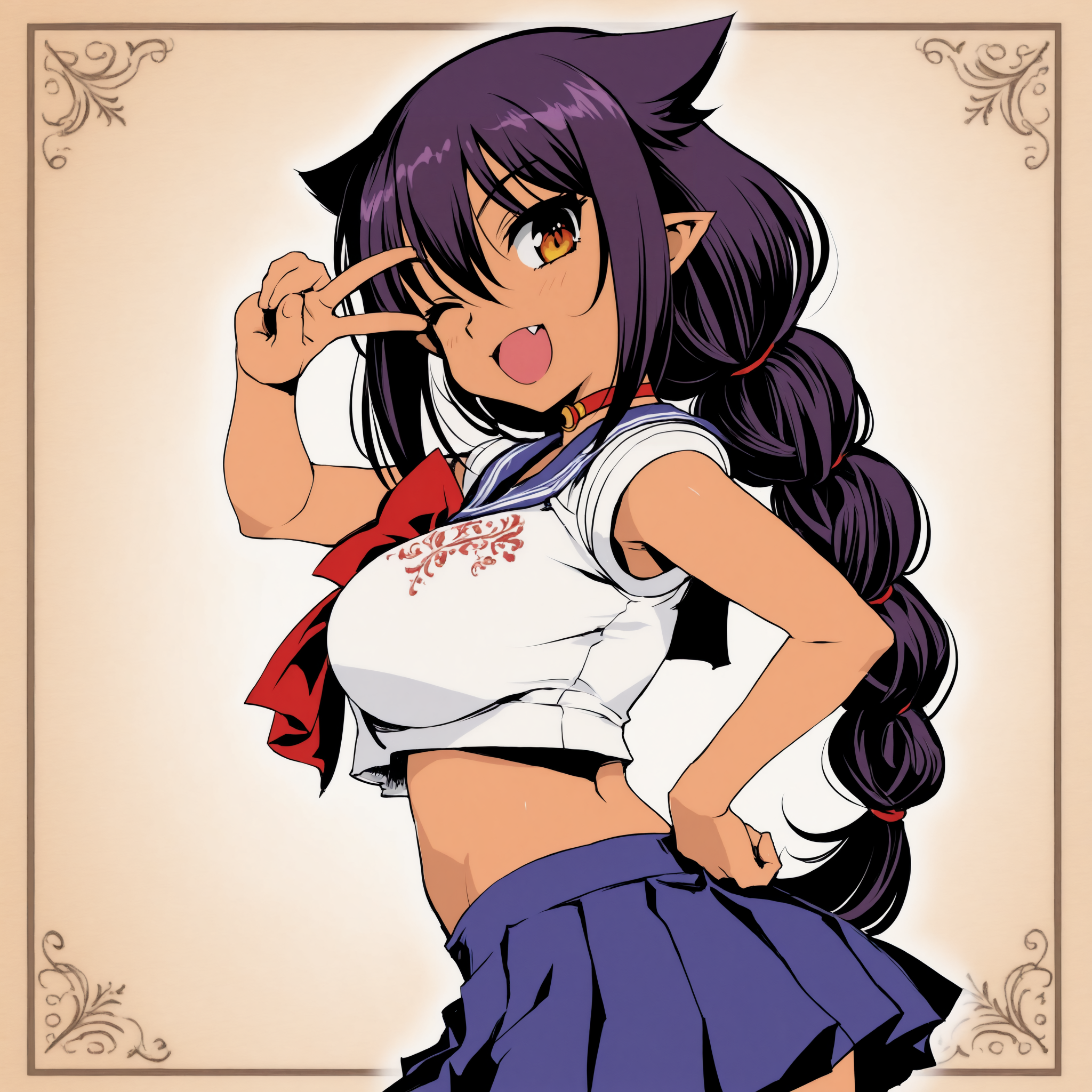Adding some thoughts behind the thought process that went into some of the gens. As of late I've been using the model satyrremixDaybreak_v10 because it's a flexible anime model that handles many different style loras well while giving a lot of detail. It's not the best for monster girl material but does kemonomimi decently. It can also do kemono stuff if you're interested in that. While it can do loli just fine, it's more aimed to generate curvy body types. The body type and lora flexibility is why I used the model for this one.