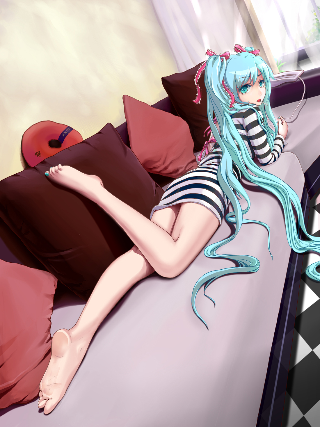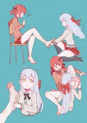 Also, I prefer bare, but legwear like that is not too bad. I like it. I'm not big on socks, but I can like the artists who draw them almost transparent like tsubasa tsubasa or よむ (Yomu). Still, over that I'd prefer something like what the protagonist of Dekiru neko was always wearing at home, those socks. Bare best of course.