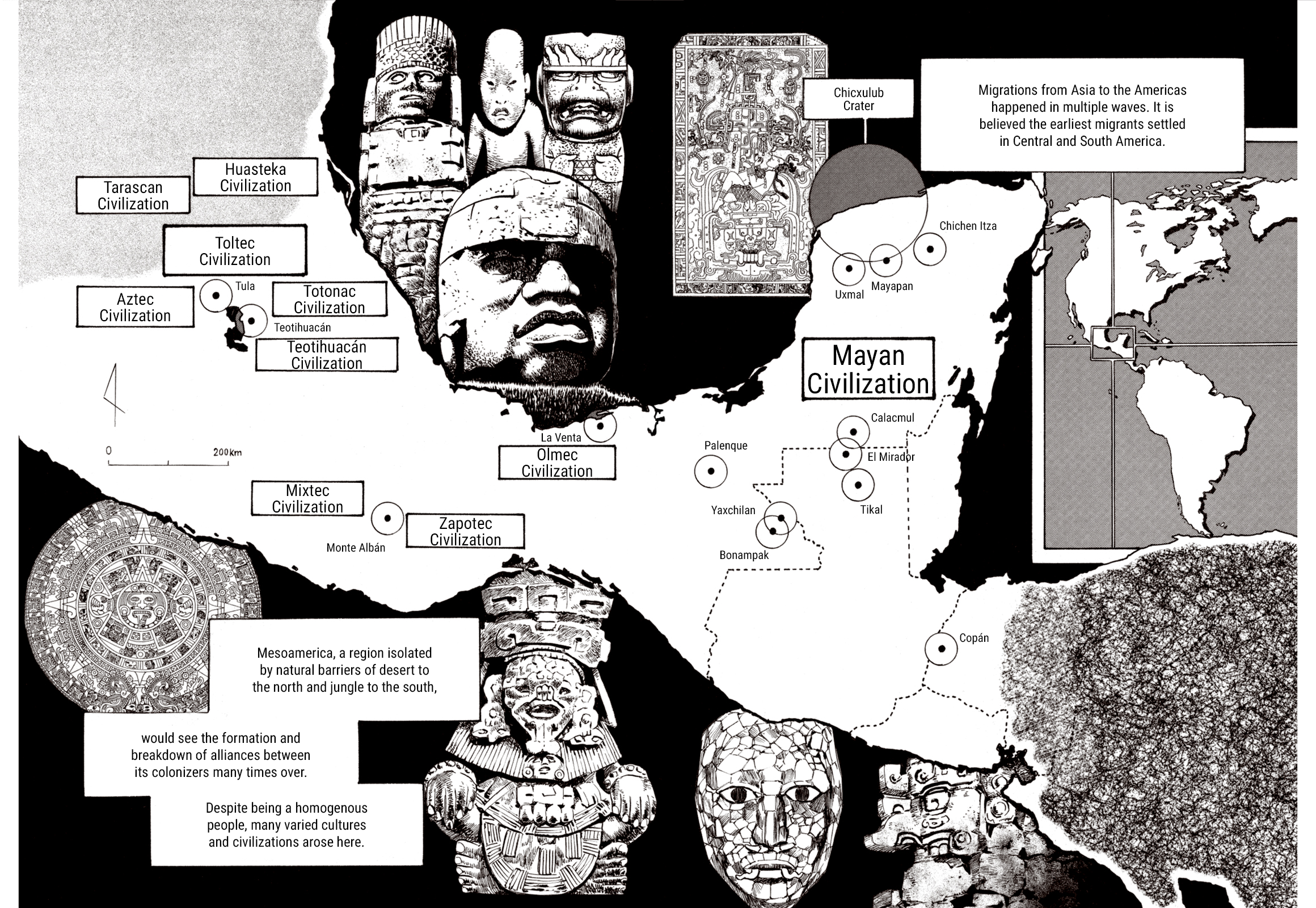 Almost forgot, to elaborate more on the research mentioned at the start of this here, I’d thought I might try to find what the sources of the imagery in the background for the map of Mexico, Guatemala, and Honduras in chapter 66. The manga doesn't specify about them, but I figured they couldn't all be Mayan from the page context. From top left to bottom right on there: