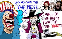 The One Piece and things surrounding it are frequently motivators for storylines, like the Alabasta arc from 20 years ago, or the Whole Cake arc from the past few years.