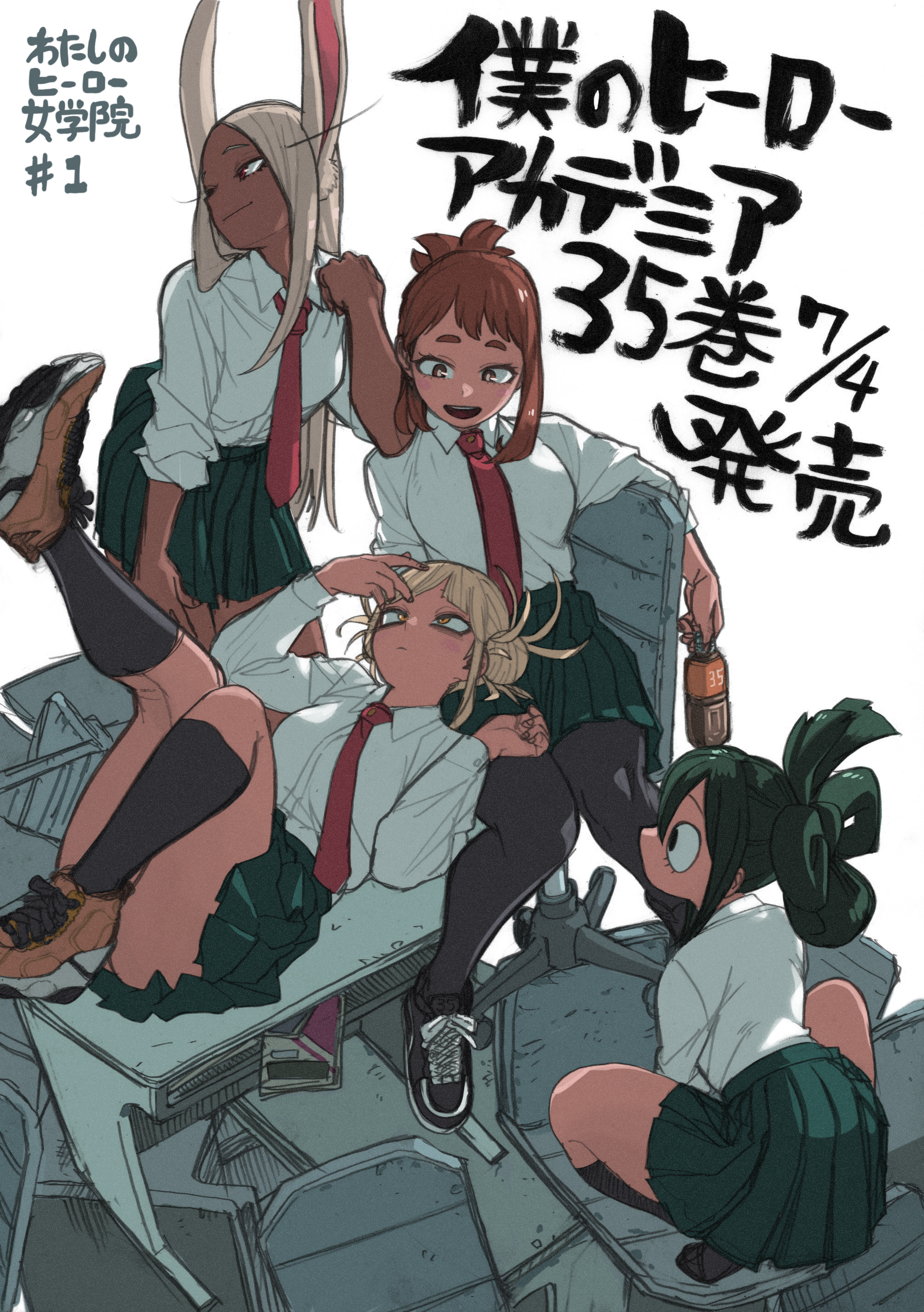 Everyone work normal jobs, which is stupid. Think of how helpful superpowers would be in terms of production, manufacturing, and logistics. Overhaul is the best example for this. Other examples would be Uraraka's quirk for transporting things (send satellites to space without wasting rocket fuel), Kurogiri's obvious application of his quirk for instantaneous logistical transport, etc.
