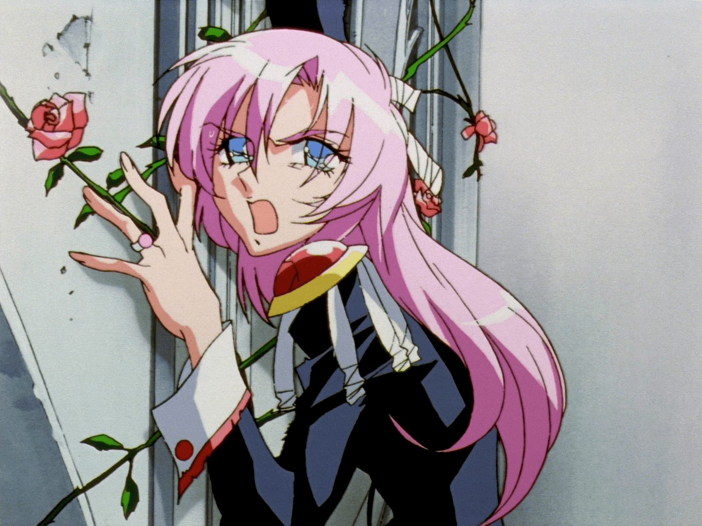 One extremely important trick is to manually delete repeated animation frames (anime isn't typically animated at the full video framerate) because GIF handles repeated but very slightly different frames about as poorly as completely different frames. Related to this trick, you can manually delete what does not visually change between frames using an image editor such as GIMP. In the 1st image, you can see me working on an image I edited heavily to remove the repeated animation frames, as well as what does not change between frames. The 2nd image is the resulting GIF.
