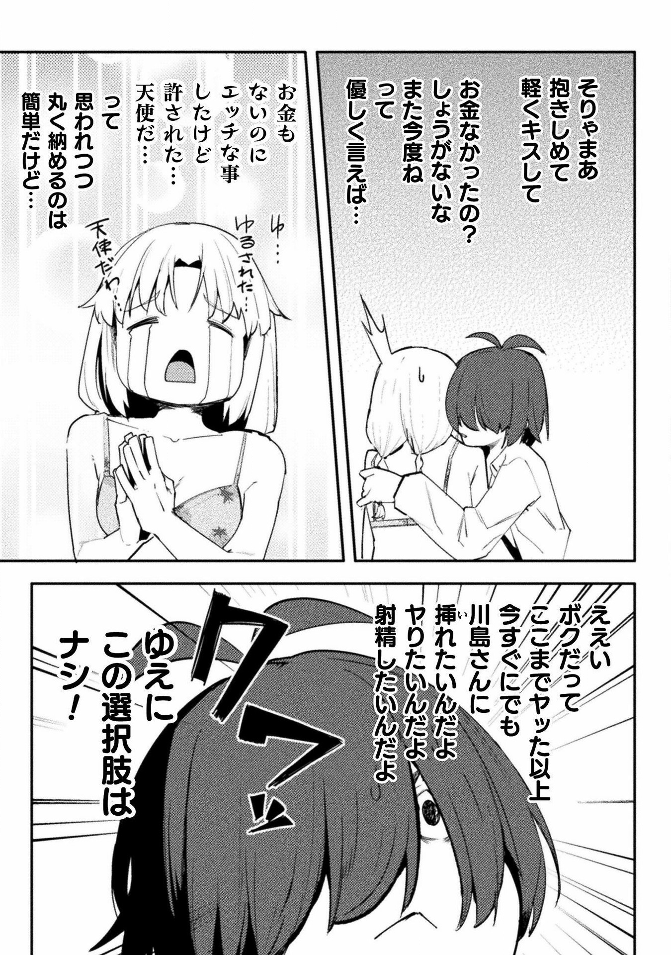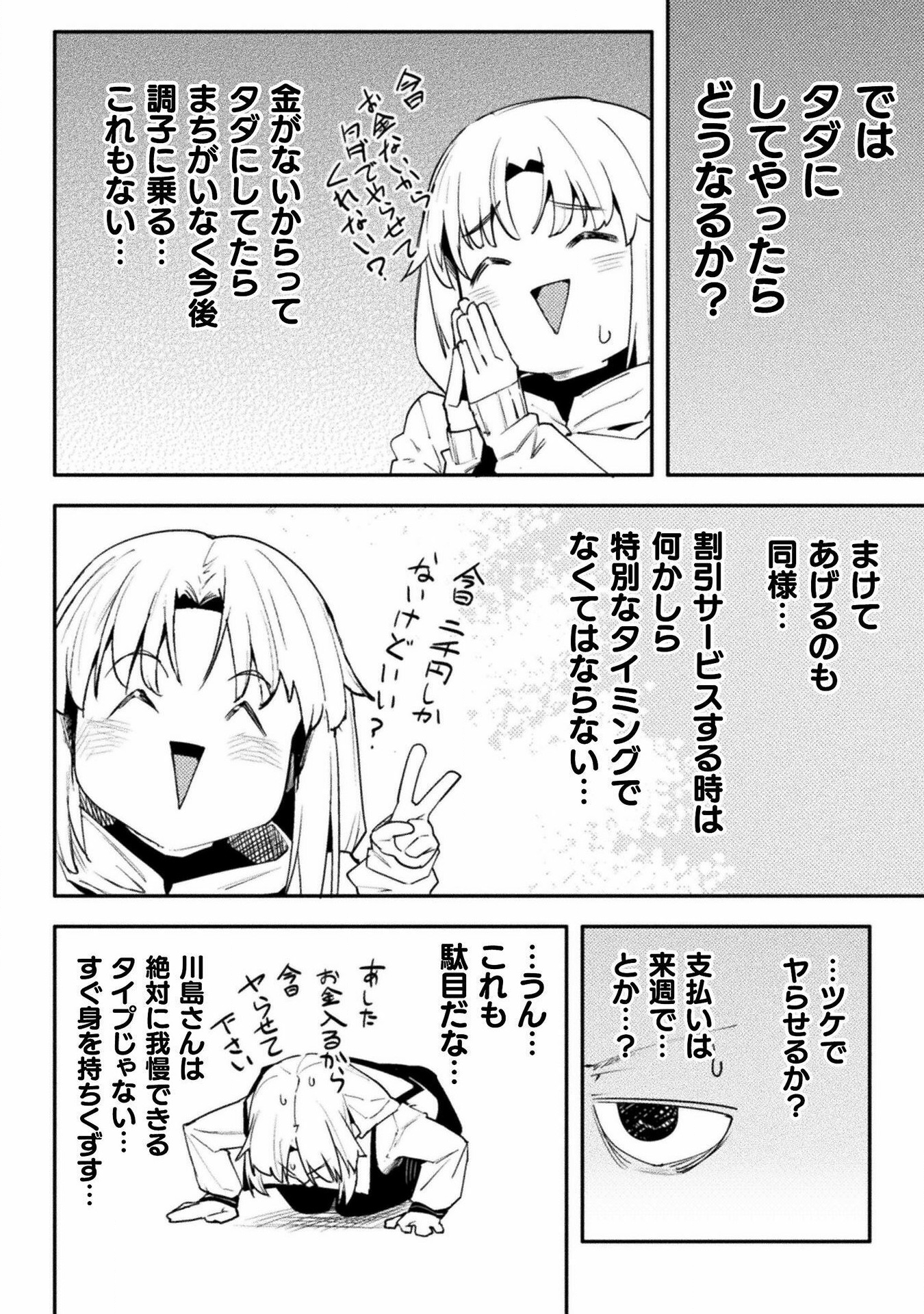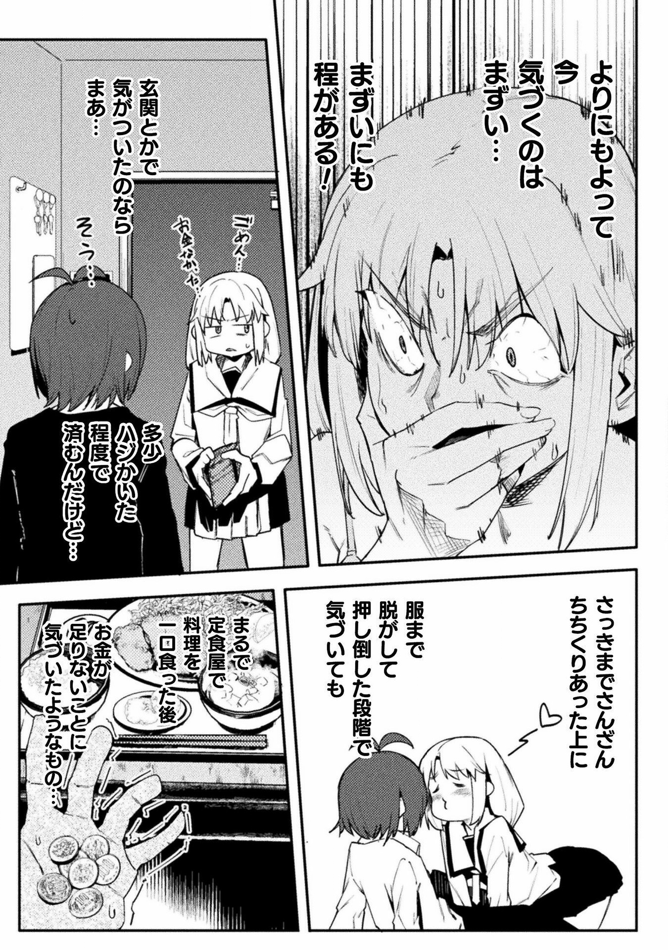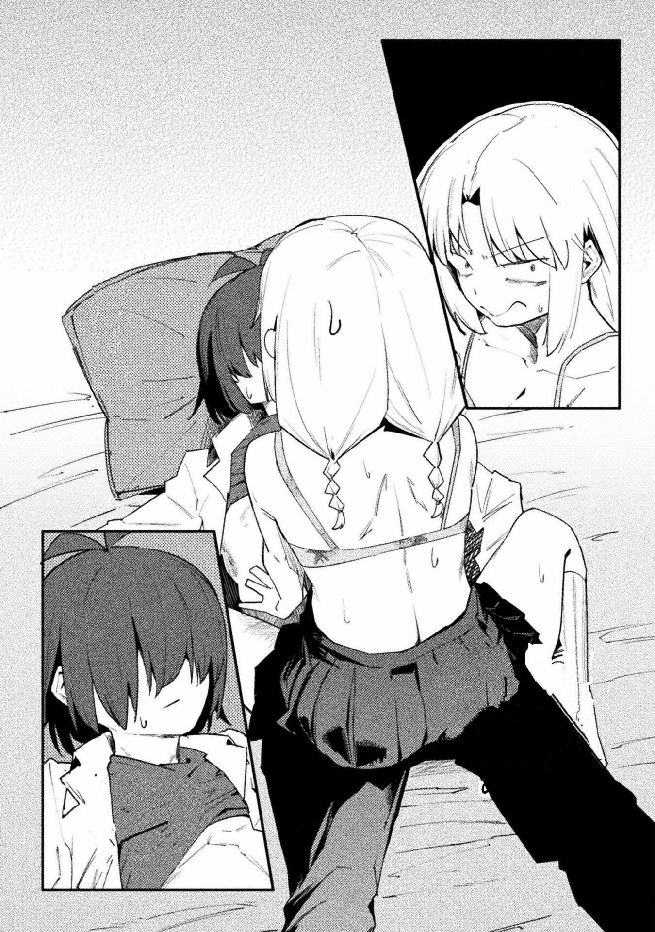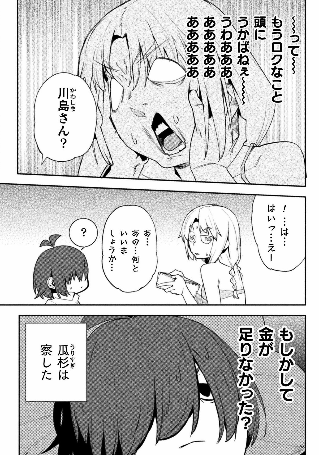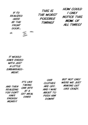 Again, I'll work with you later on getting some of that looking better. For now though, give fully redrawing the fingers in the third panel of 004 a try, as they just sort of vanish as it is now, and fix up someone of the areas where the stroke of the raw text is still present (such as around Kawashima's sock on 0011). Also, see if you can figure out anything as to why your edited pages are coming out darker than the raw pages up there are? Try opening both versions of 0003 I've included here in your browser as tabs, and then toggle back and forth between them. You should be able to see a difference in the shades in doing so, especially with the last panel. It's important the shades come out right, both for preservation of art detail and so I can mask various things back in if need be.