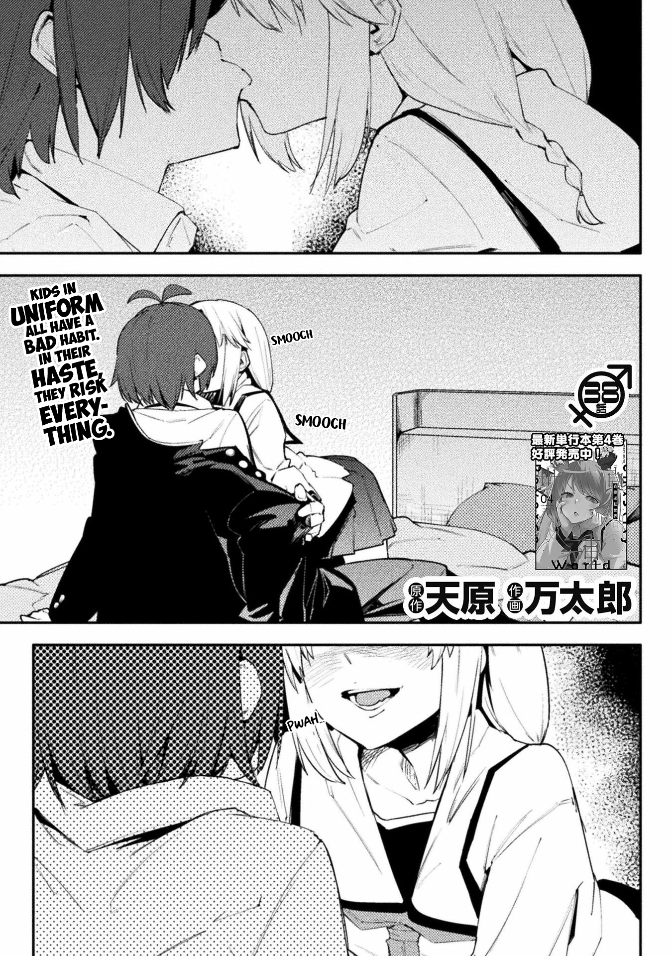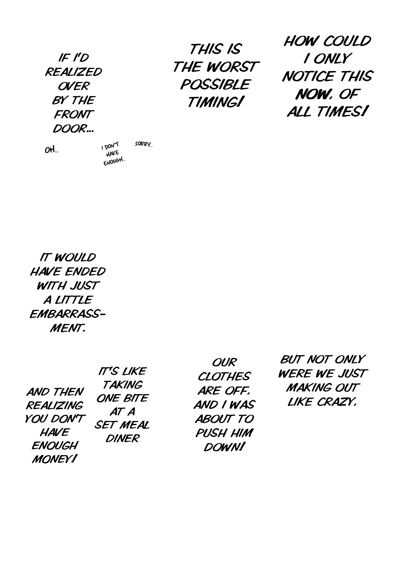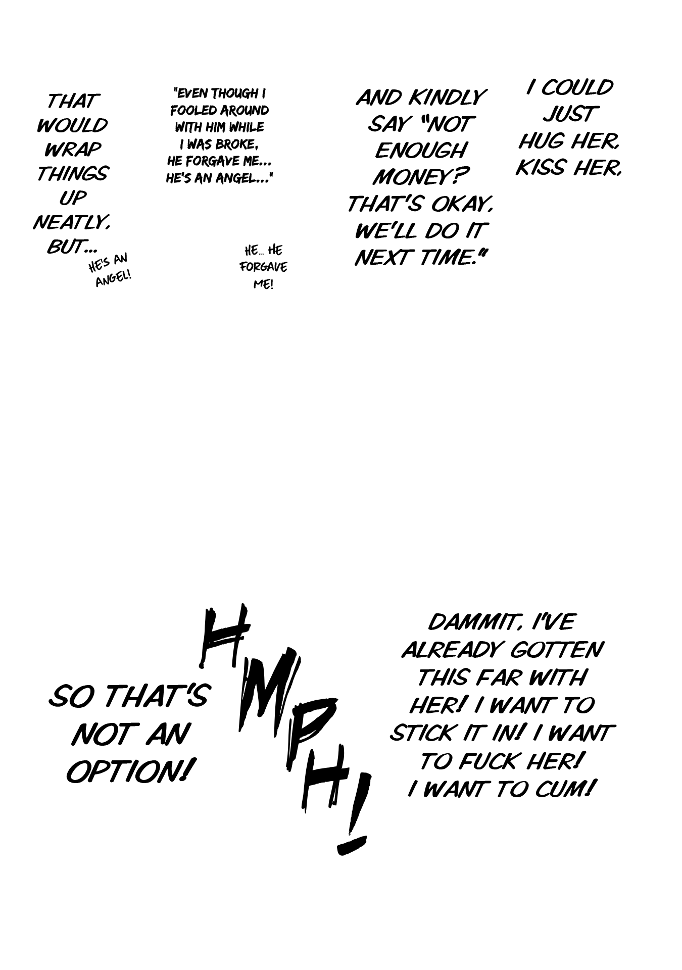 The overlays are meant for being able to edit around; to know which parts can be obscured with the English text and thus save on time and energy. For example, that circular formula/graph on the right side of the first panel for 0004: rather than a vertical line making up an edge, the edge of the circle should remain round and flow beneath the text layer. I'm not much of a redrawer myself, but I do know that it's about anticipating what's under the raw text for a cohesive feeling edit, and using the English text to know where you can fudge it and not have to put in as much effort, since those pixels won't be seen on the final pages.