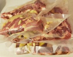 I experimented with some pork ribs last night.  I cut them into manageable sections and vacuum sealed them with black pepper and slices of ginger, garlic, and shallot.  I then cooked them at 180°F for two hours with an immersion circulator.  After that, I removed the meat from the bags and discarded the vegetables.  I coated the meat with salt and brown sugar before placing it in the oven at 350°F. I let it bake 30 minutes, flipped the ribs over, and thrn let it bake for another 30 minutes. At that point it was pulled out of the oven and coated in a sauce made from tonkatsu sauce, ketchup, cider vinegar, honey, and dried cayenne pepper.  I turned the heat up to 500°F and returned the meat to the oven for maybe 7 or 8 more minutes.  This turned out bretty good and the texture is appealing.  Unfortunately, the ginger didn't impart much flavor.  I should have pureed it or something.