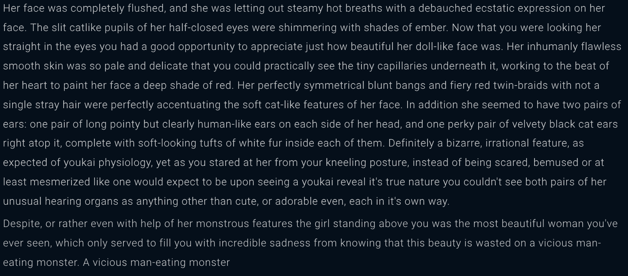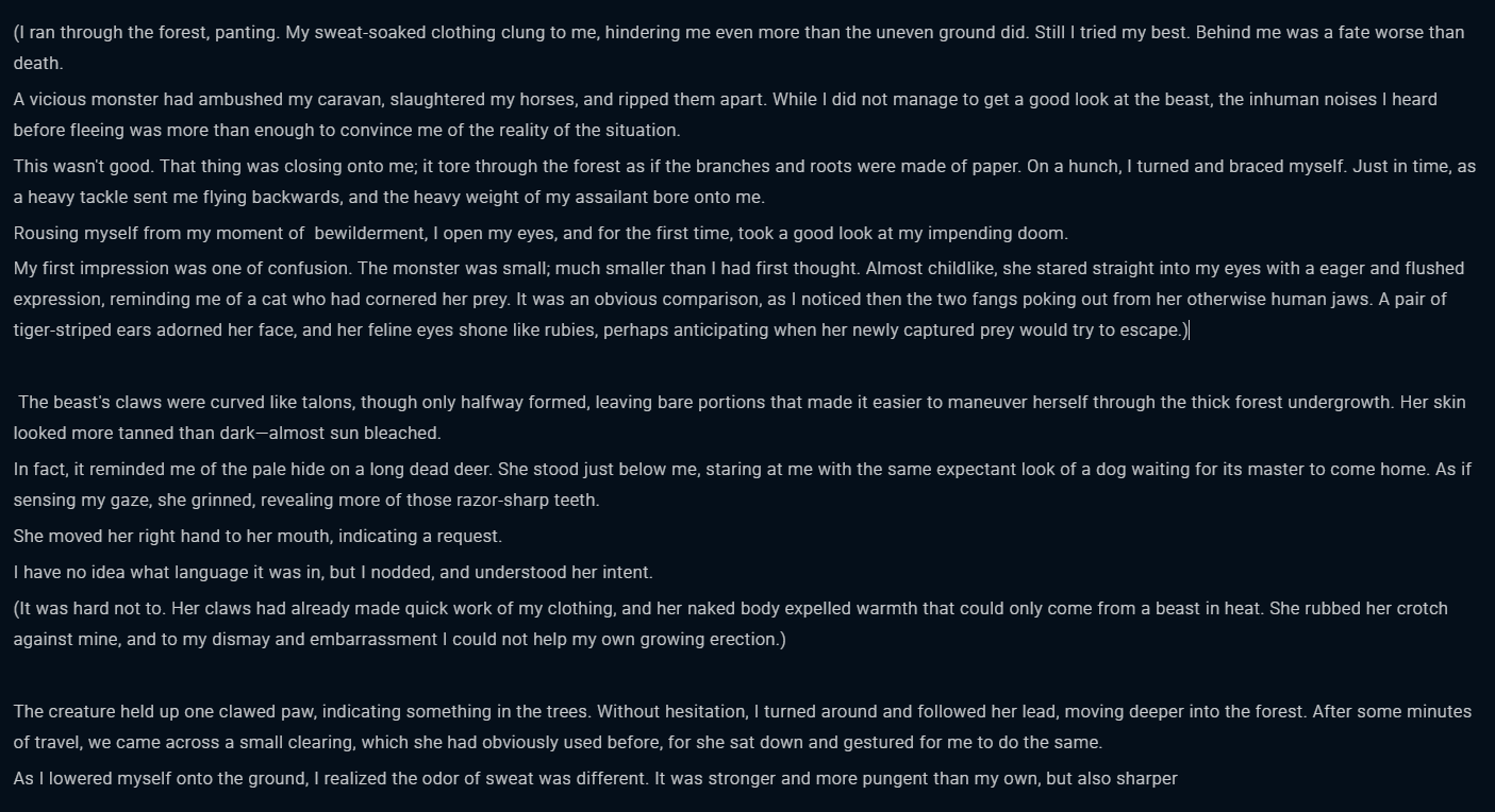 Leaving poorfags aside, now that Paddle felt like approving my payment 8 hours later I can finally test it, and this shit is really good, like way, waaay better than the sorry estate that AID is in right now. The 2048 tokens make a huge difference as I don't have to keep reminding the AI of stuff over and over again because they kept getting out of the context window, and the AI seems really good at keeping things on track.