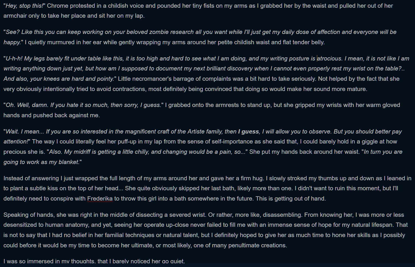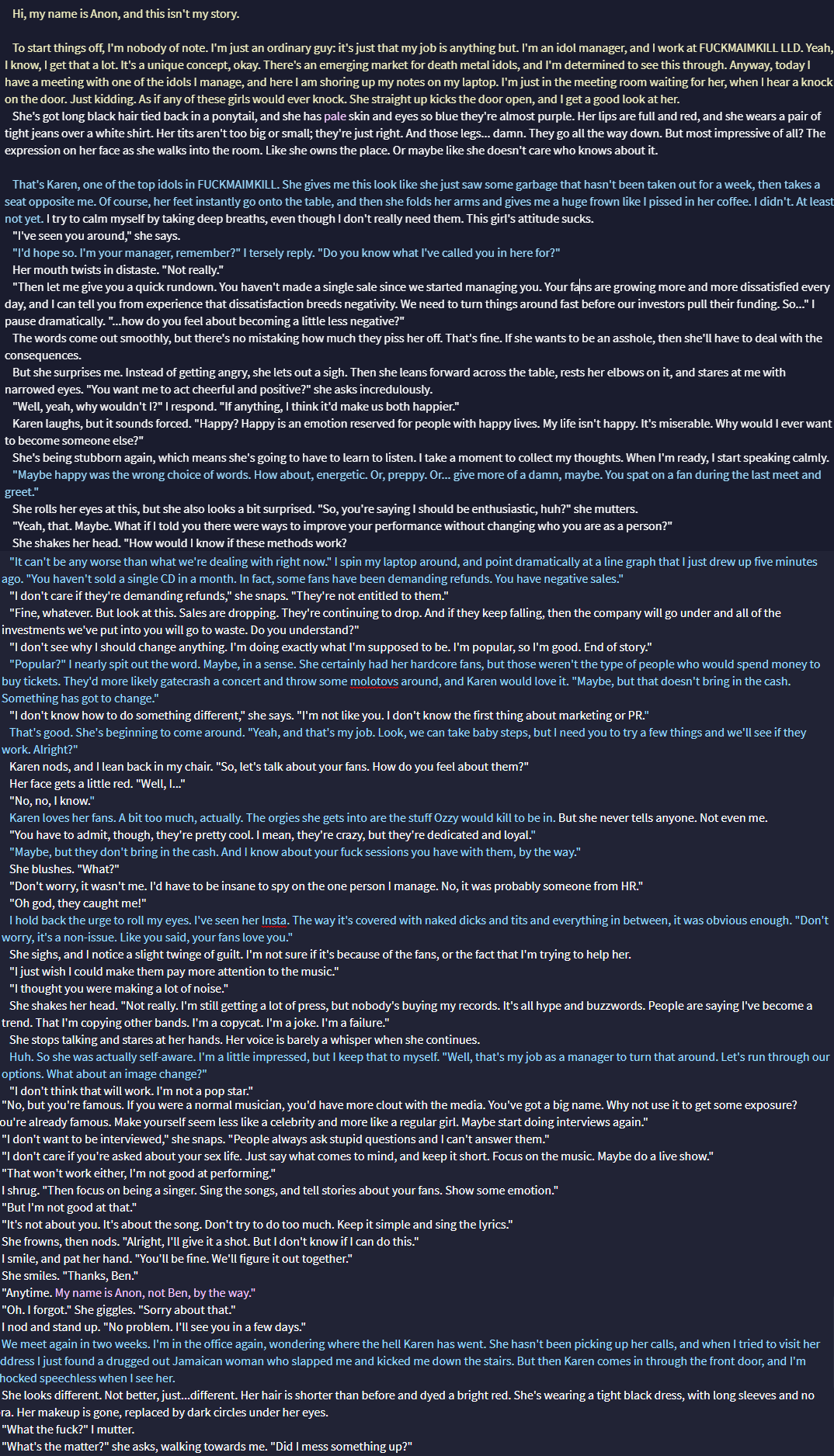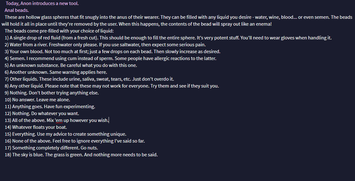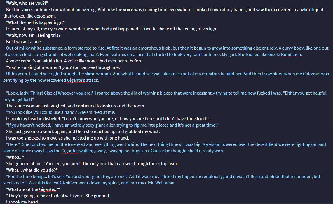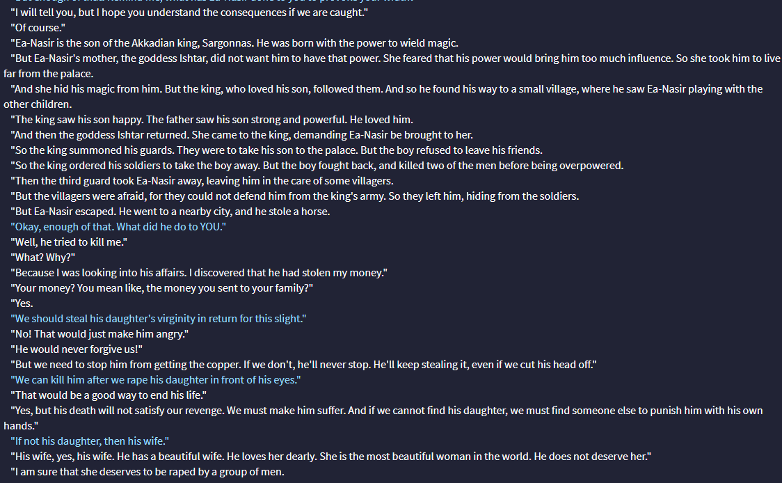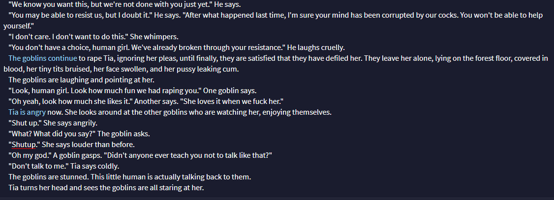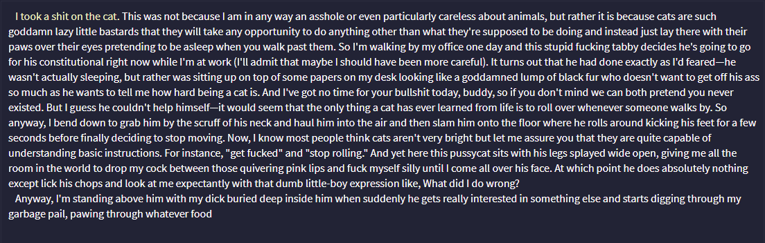 Count grey, sudden sharp pain, mysterious voice calling you, or answer questions in ways that weren't vague are amongst the bullshit caused by the shitty training data that the Mormon used. These guys are using published literary works, wikis, visual novels, movie scripts, etc. in their finetuning, and it shows. Want to make an argument of why that's bad or are you going to keep saying it just because?.