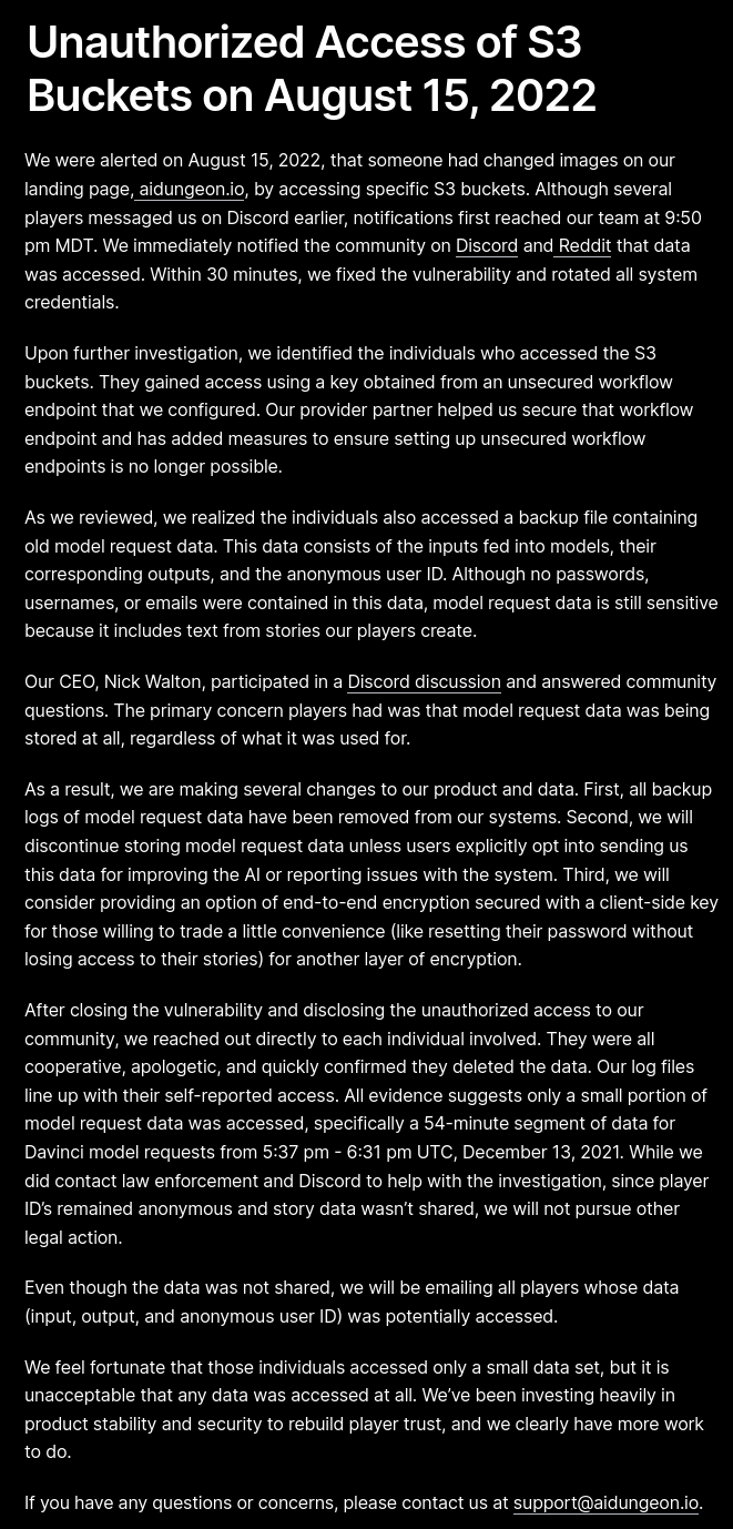 Assuming the worst was thinking that everyone's private info and stories was now public, and that a part 2 was on the horizon. Part 2 of the leak turned out to be a nothingburger. The retard got cut off from getting everything and what was in part 2 was just the language models which nobody can run on consumer hardware. The only thing of value from the whole leak was the modified stable diffusion.
