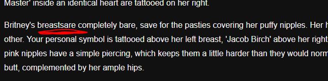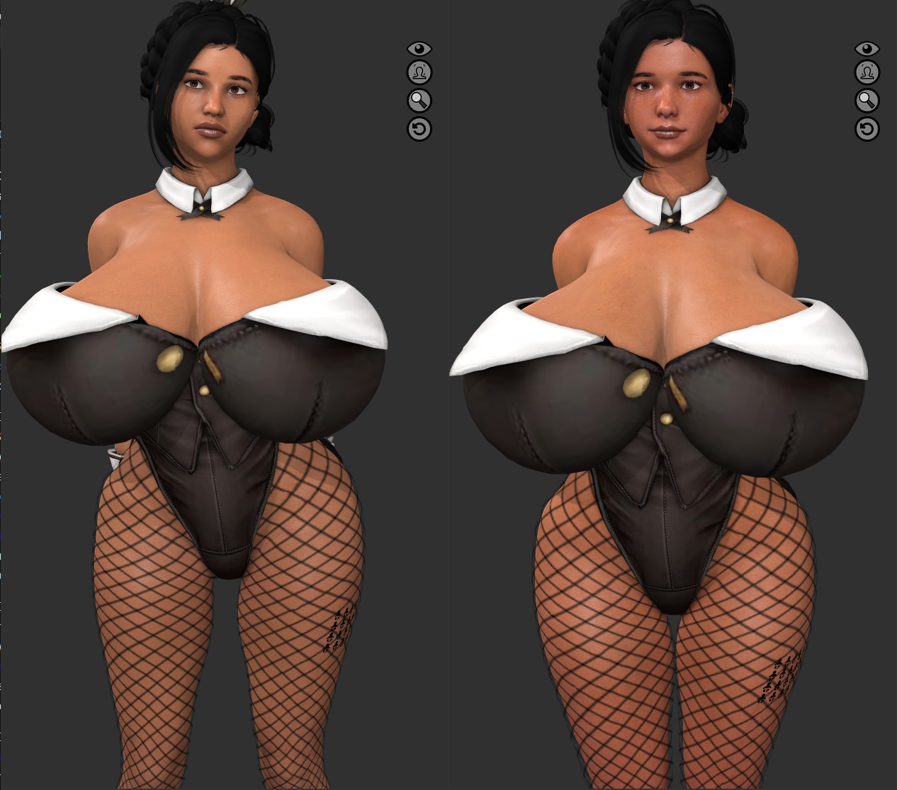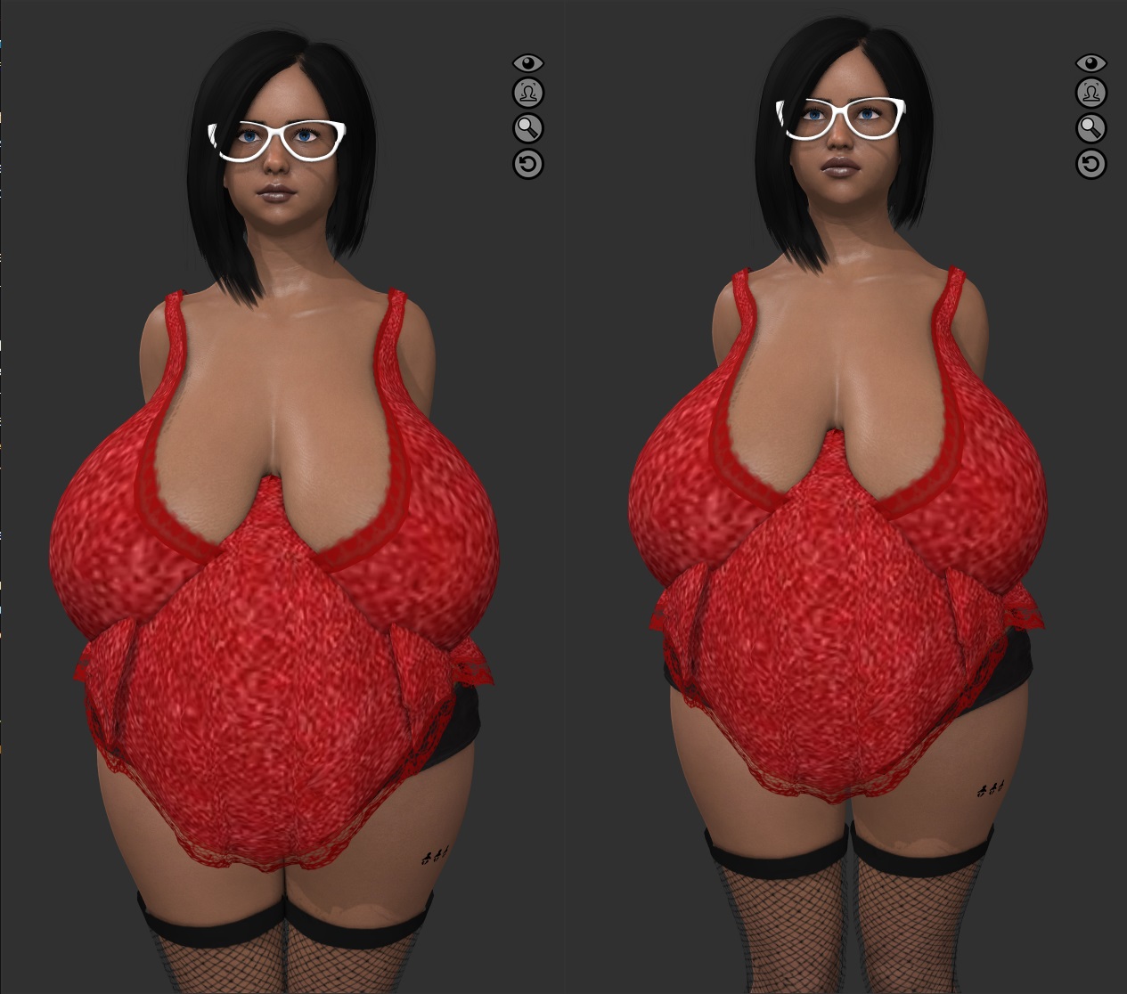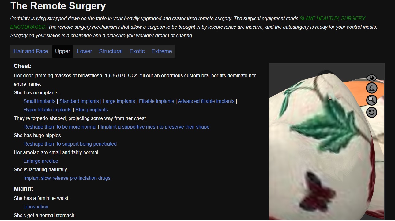 the baseline 0 weight, 2-3 butt, 0 hips, 0 shoulders, 0 waist, 0 belly, 400cc boobs slave is roughly a BWH of 34AA / 30 / 34