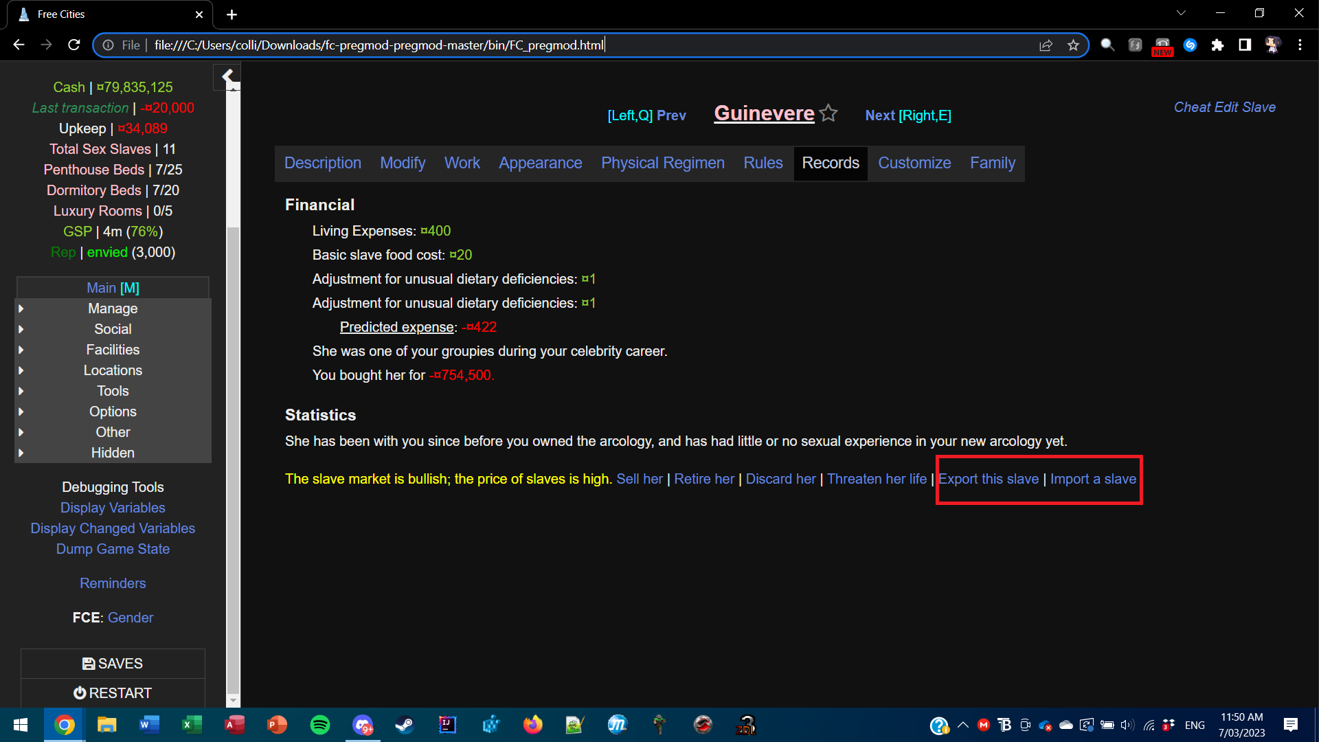 Assuming a baseline slave of 175 height, and converting from 8-heads-high to 7-heads-high while assuming the figure proportions are correct otherwise, e.g. how deep the chest is front-back and how wide chest is relative to shoulders and that I've done all math correctly