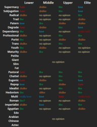 You're on your own for figuring out how weight, muscle, butt, waist, and belly affect things, or what "weight" even means because it excludes assets, muscle, and height