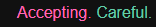 Weighting: When you enclose a part of the prompt in parenthesis, it becomes weighted, having more or less impact on the prompt. The default weight from just adding the parenthesis is 1.1. Adding : and a number to the end (like this:0.9) lets you set a specific weight. For the most part you won't need to use weights. In a long prompt they can help important tags from getting drowned out. Be very conservative with increased weights, 1.2 is a lot, 2 will likely turn the output into a total mess. A tag the model doesn't comprehend in the first place won't turn functional by increasing the weight. Where you might commonly fiddle with weights is artist mixes, mostly lowering the weights of artists you don't want having so much impact.