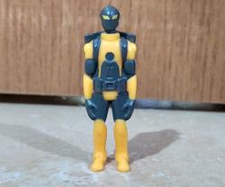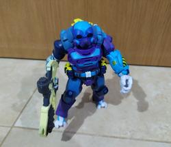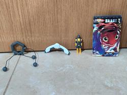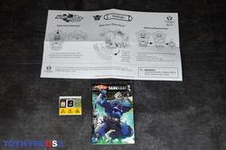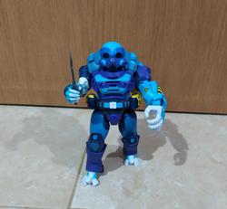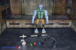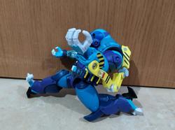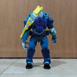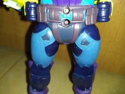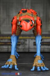 And if the big figure itself wasn't enough, he comes with nice amount of stuff. First there's comic the last time a toy came with comic book was during Toybiz days, fuck I hate hasbro, it's kinda small, but still well drawn and got enough meat for a plot. Then, there's the two weapons he can hold: a boomerang and a bola. They're nice looking weapons (personally I prefer the bola because it's strings playability) and he does hold them, but due to his hands position, it's not the most impressive/great looking, I still appreciate it and think it adds to the figure. Lastly, his mini "action figure", the superhero Iron Stomach which I like the least out of the accessories; at its size (bigger than a titanmaster), it could easily have 5 PoA instead of being a solid brick, plus his arms are too long.